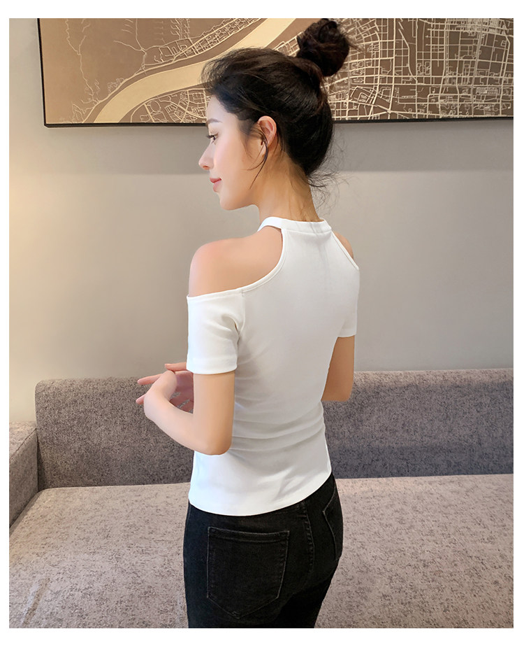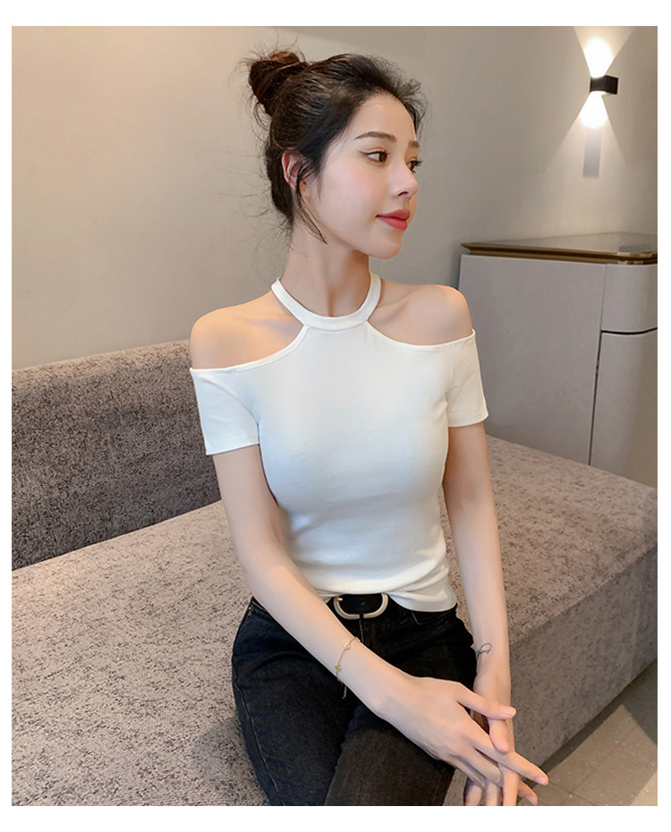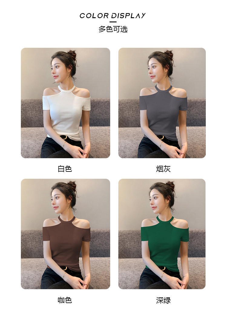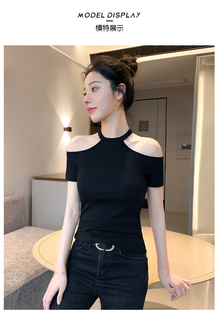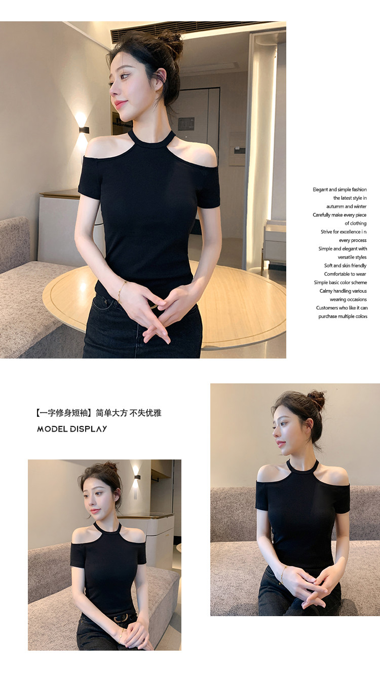 Black Halter Neck Off-Shoulder Top for Women, Summer Design, Slim-Fit Short-Sleeve T-Shirt, 2026 New Style, Off-Shoulder Neckline with a High-End Feel