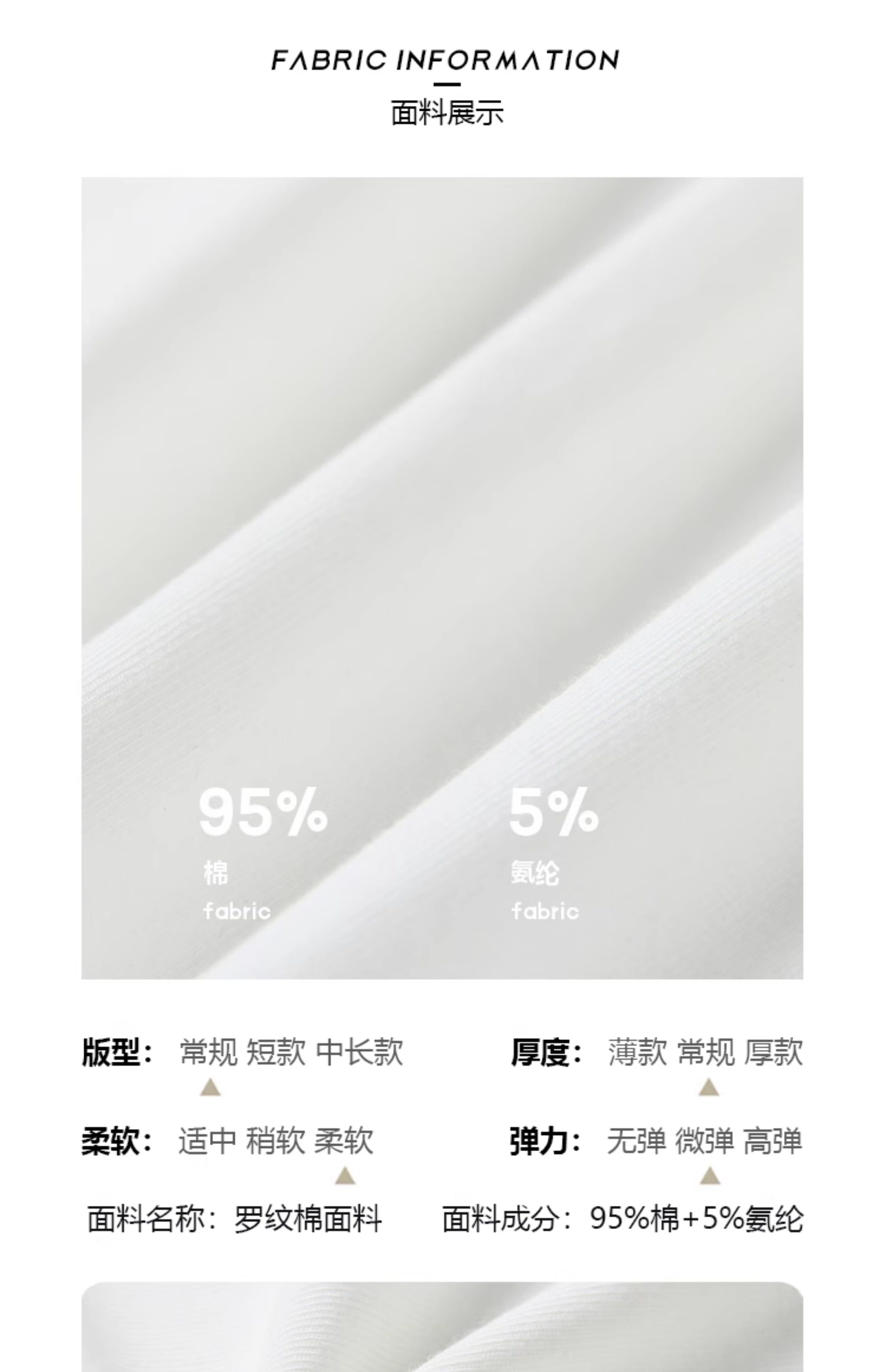 Material Composition 95% Cotton, 5% Polyurethane Elastic Fiber (Spandex)