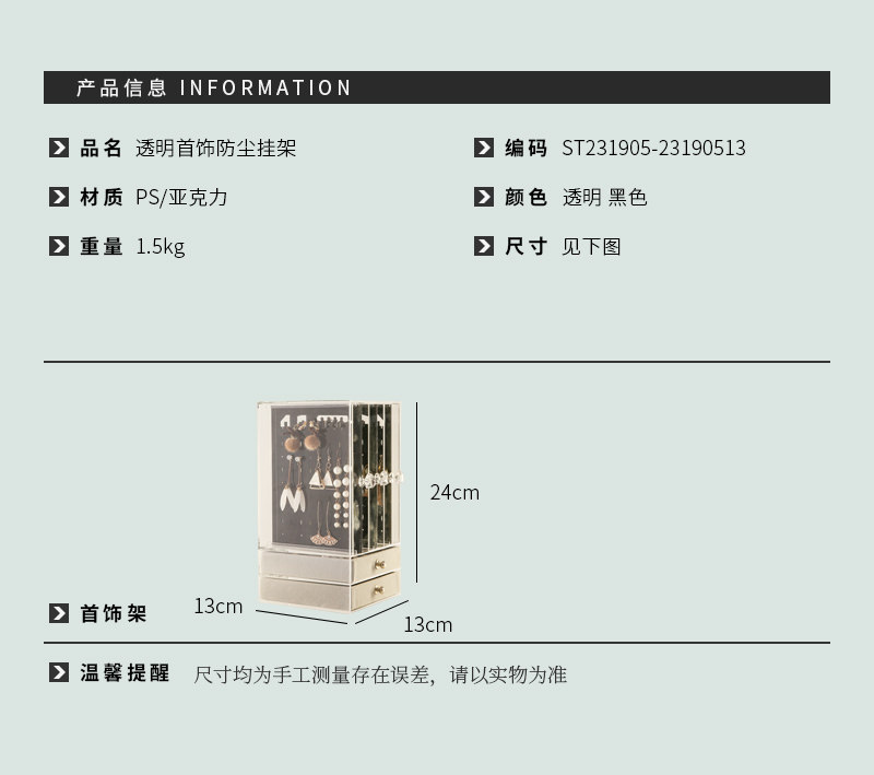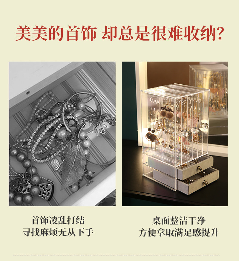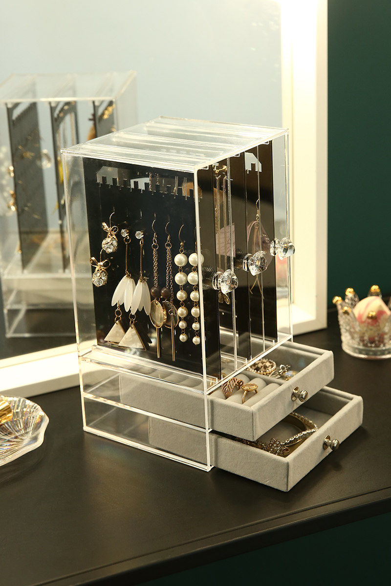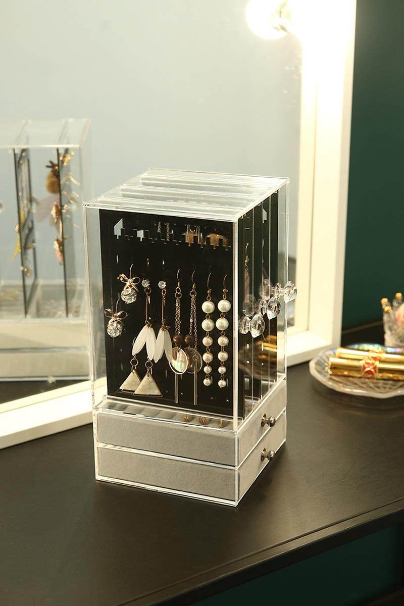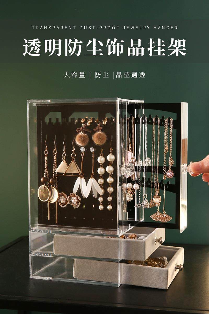 Acrylic Jewelry Storage Box, Earring and Necklace Display Stand, High-End Earrings, Ear Studs, Ring Cabinet, Transparent and Anti-Oxidation