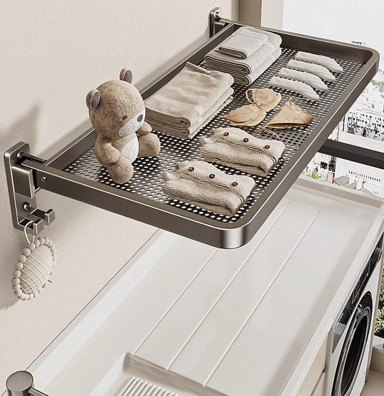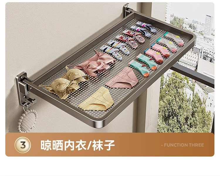 Zusammenklappbarer Wäscheständer, unsichtbarer Balkon-Schuh-Wäscheständer, Erkerfenster, Innenraum aus Aluminium, stanzfreie Socken zum Trocknen von Kleidung, Trocknungsartefakt