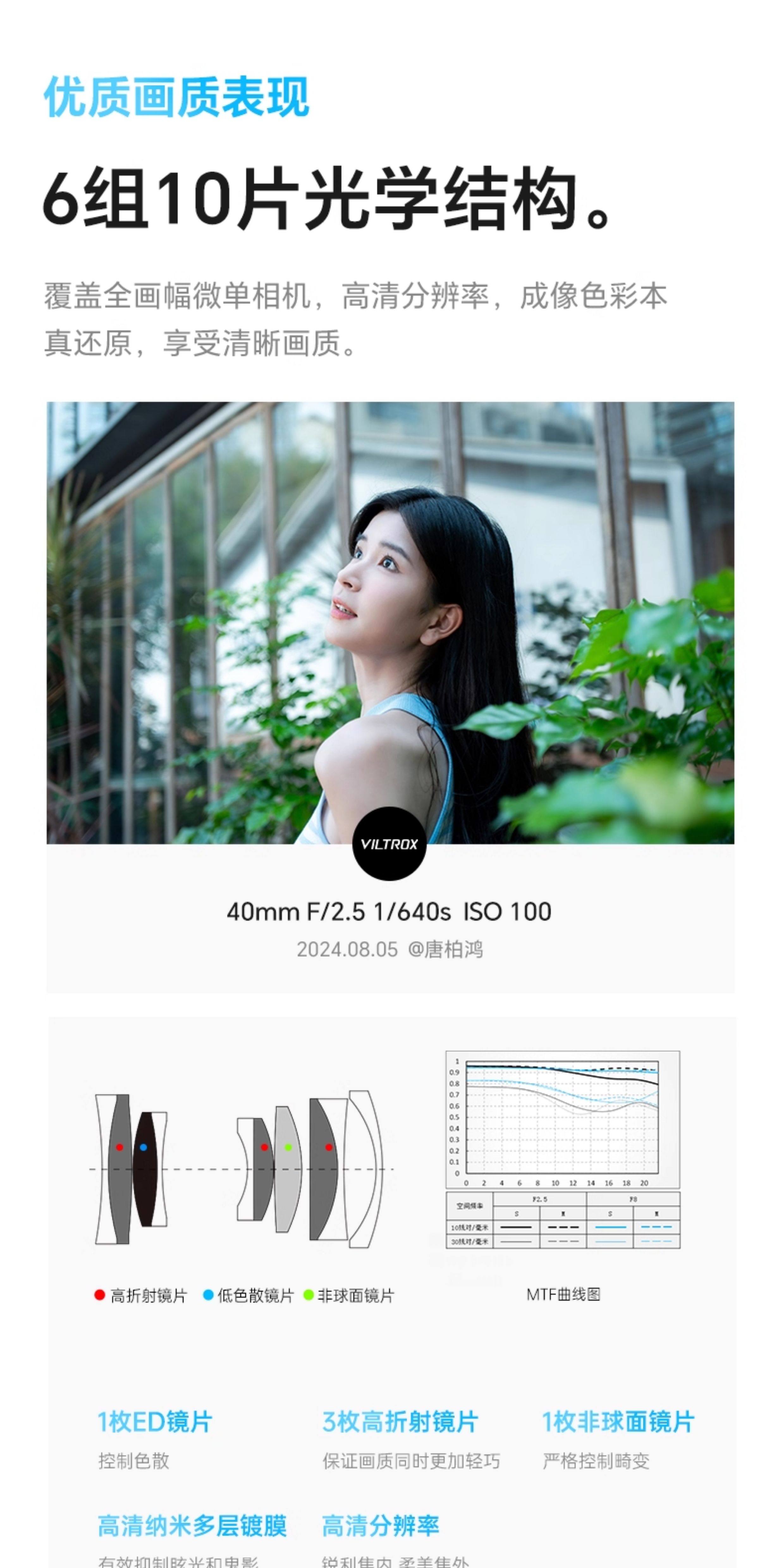 Объектив Viltrox 40mm F2.5 с фиксированным фокусным расстоянием для полнокадровых беззеркальных камер с креплением FE/Z, автофокус, большая апертура