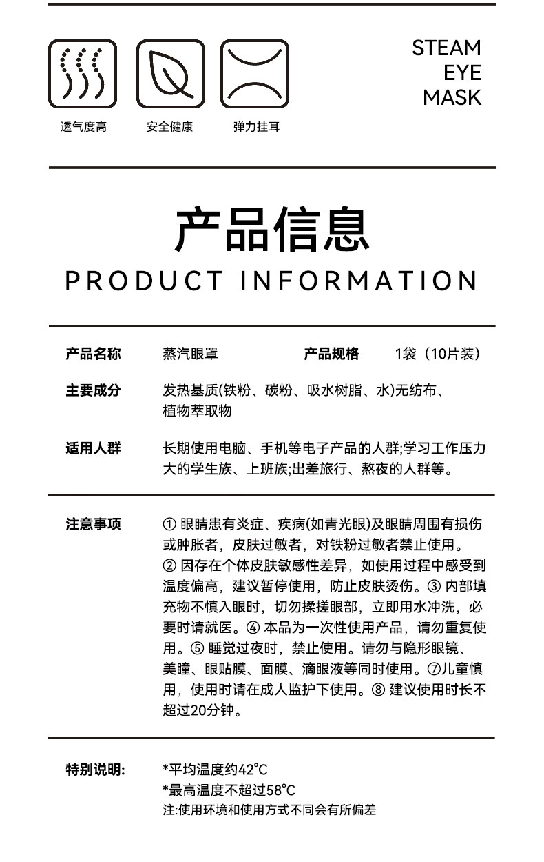 Steam Eye Mask to Relieve Eye Fatigue, Disposable Light-Blocking Sleep Eye Mask for Men and Women, Student Eye Protection Patch, Hot Compress Eye Patch