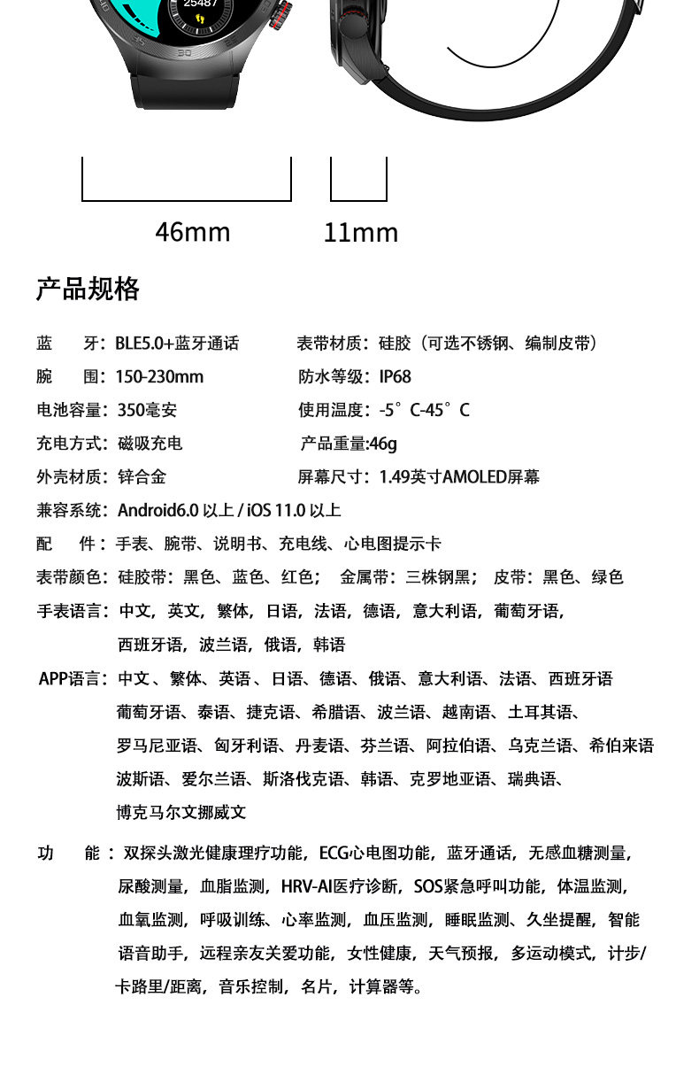 型号 心脑血管激光理疗三高健康手表