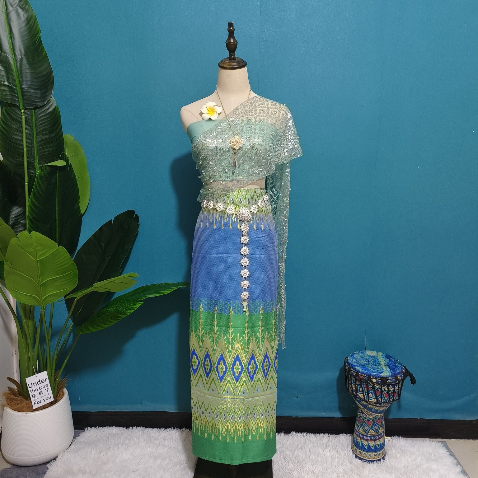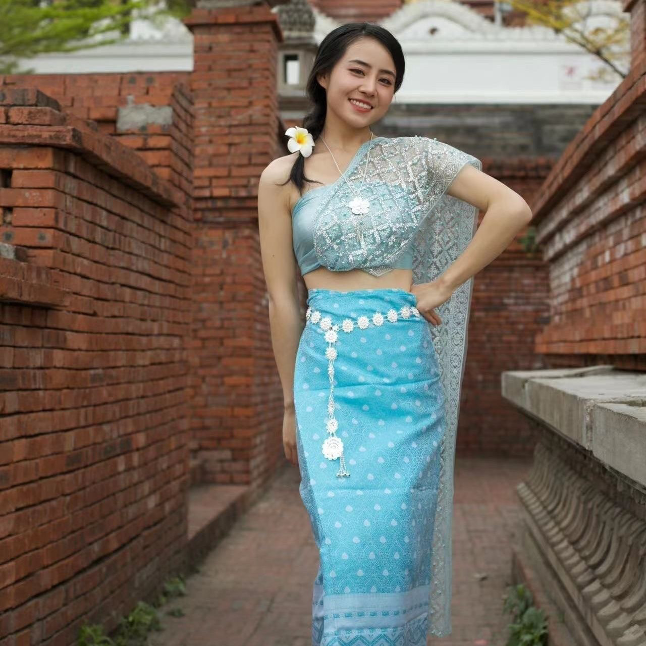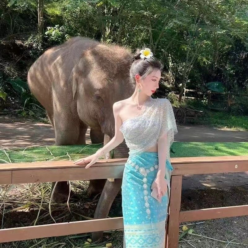 西双版纳泰国新款傣族服装女套装不掉粉披肩影楼民族风拍照艺考