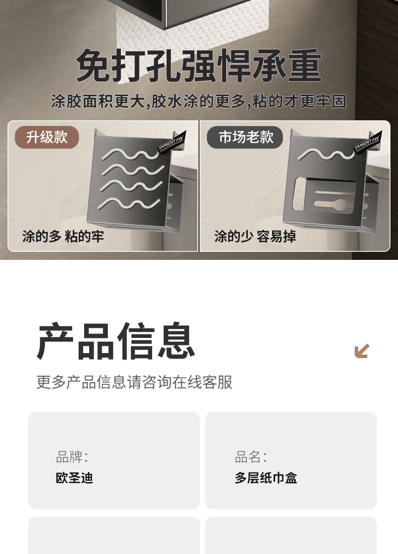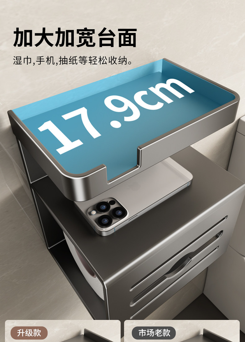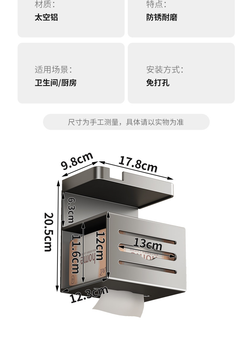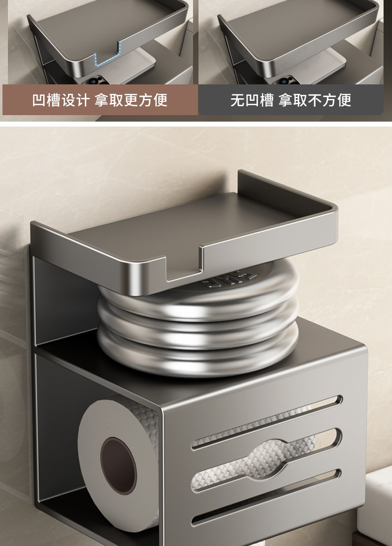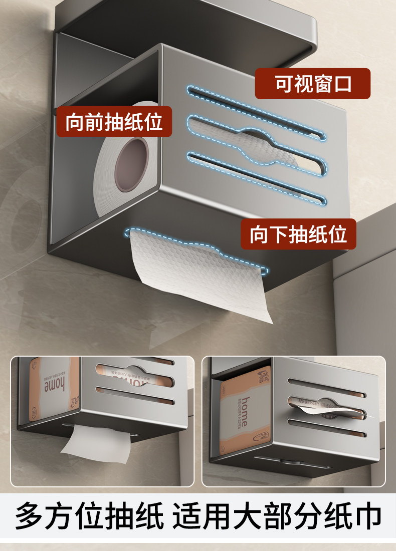 Badezimmer-Toilettenpapierbox, Toilettenpapierbox, Aufbewahrungsregal, stanzfreier Wand-Toilettenpapier-Platzierungsbox-Papierrollenhalter