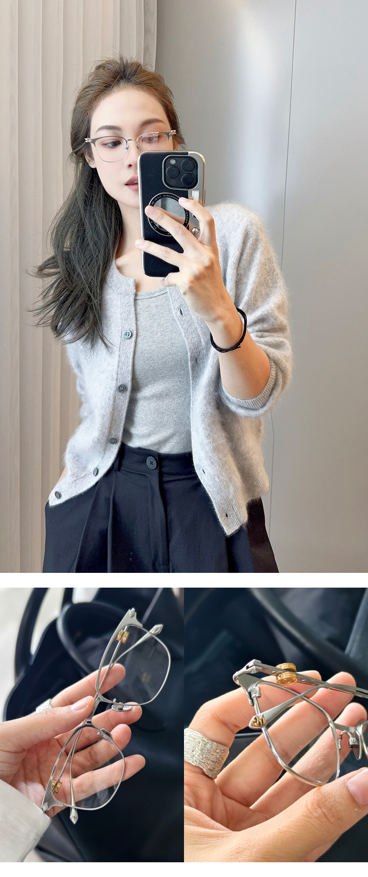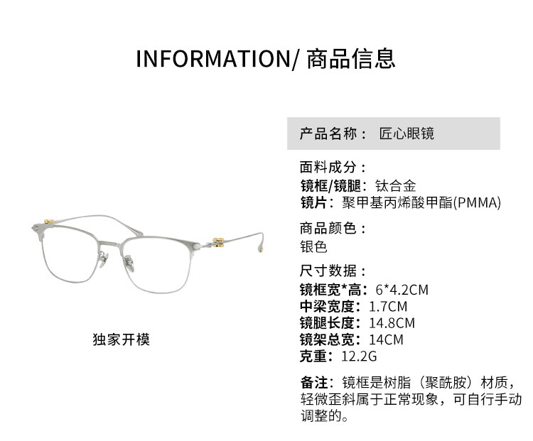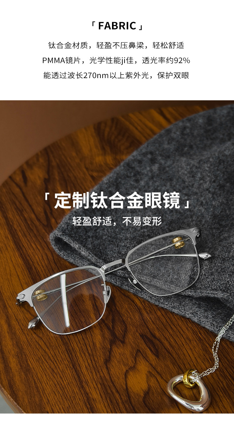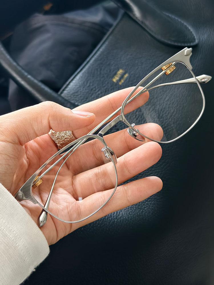 Meiyang[In Stock]Innovative Eyewear High-Tech Elite! Titanium Alloy Lightweight Silver Frame Versatile Glasses