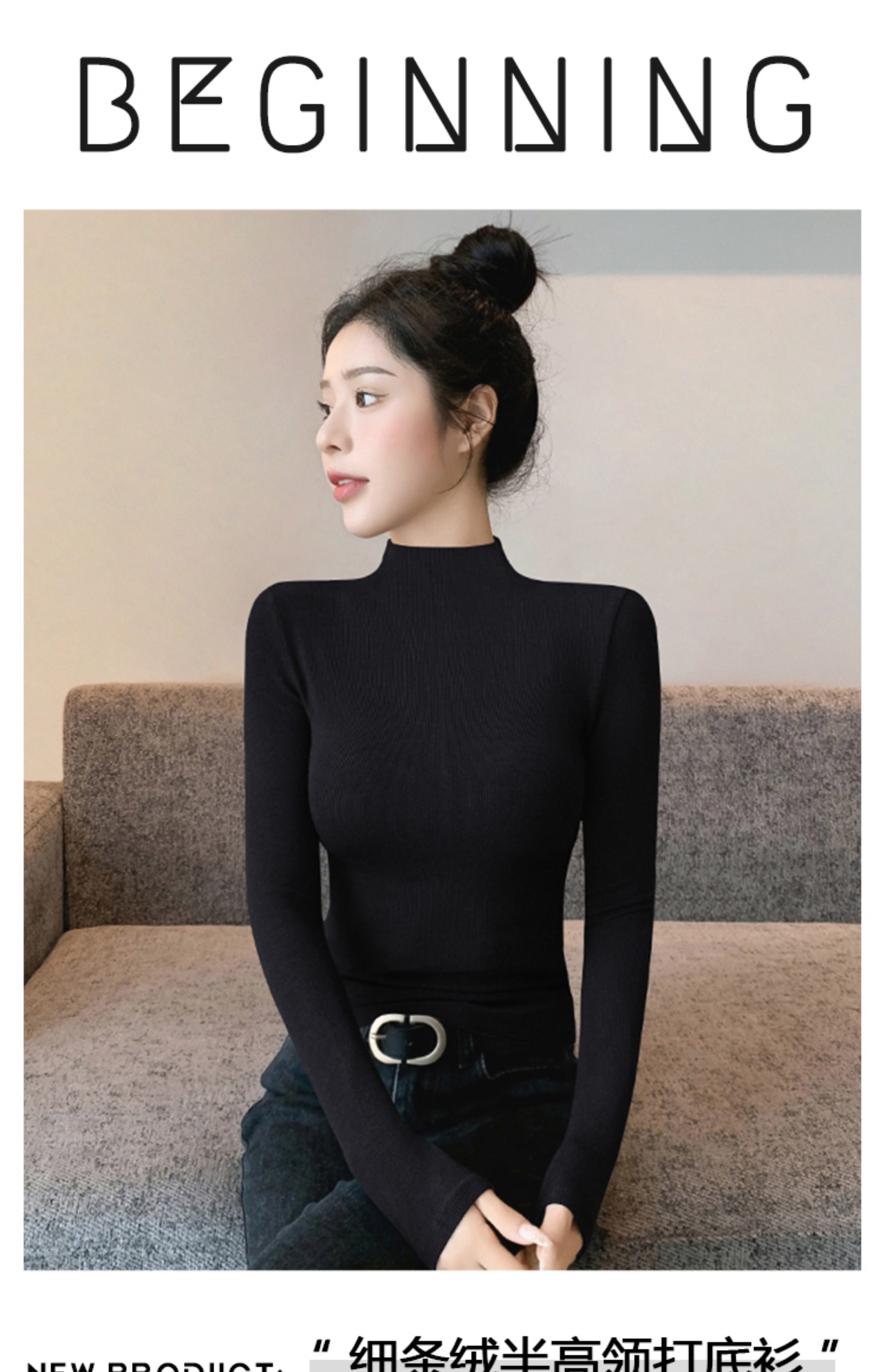Черная женская базовая кофта с воротником-стойкой, на флисовой подкладке, утепленная, новинка 2024 года, осенне-зимняя, с длинными рукавами, премиального качества, облегающего кроя.