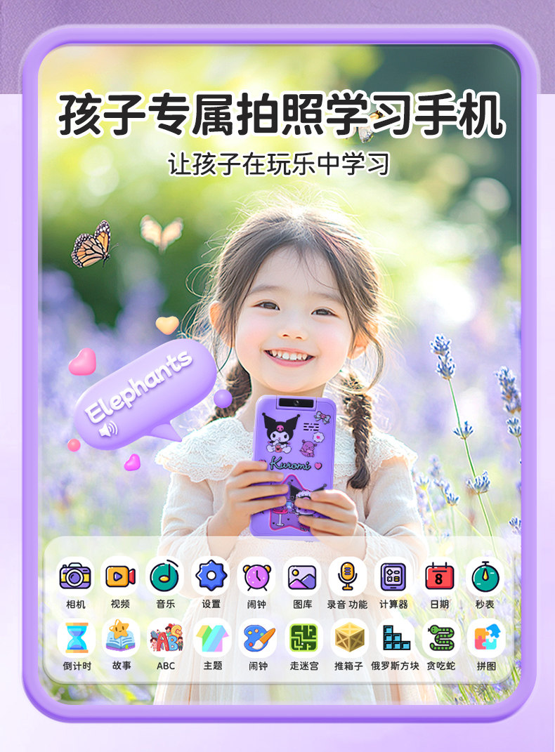 Детский имитационный телефон с камерой с сенсорным экраном, игрушка для мобильного телефона, детское образование, раннее образование для девочек старше 3 лет, перезаряжаемый