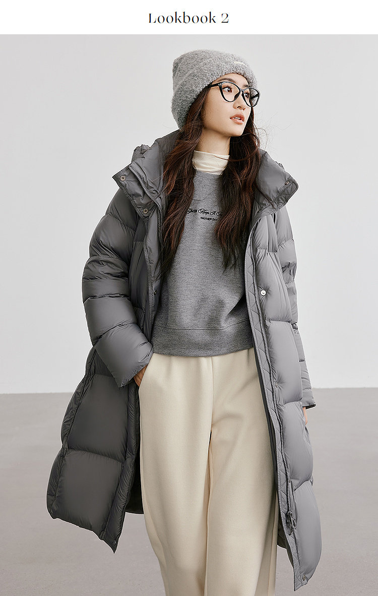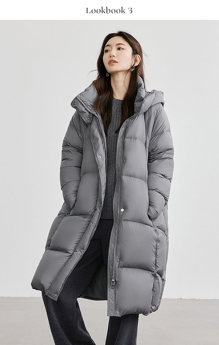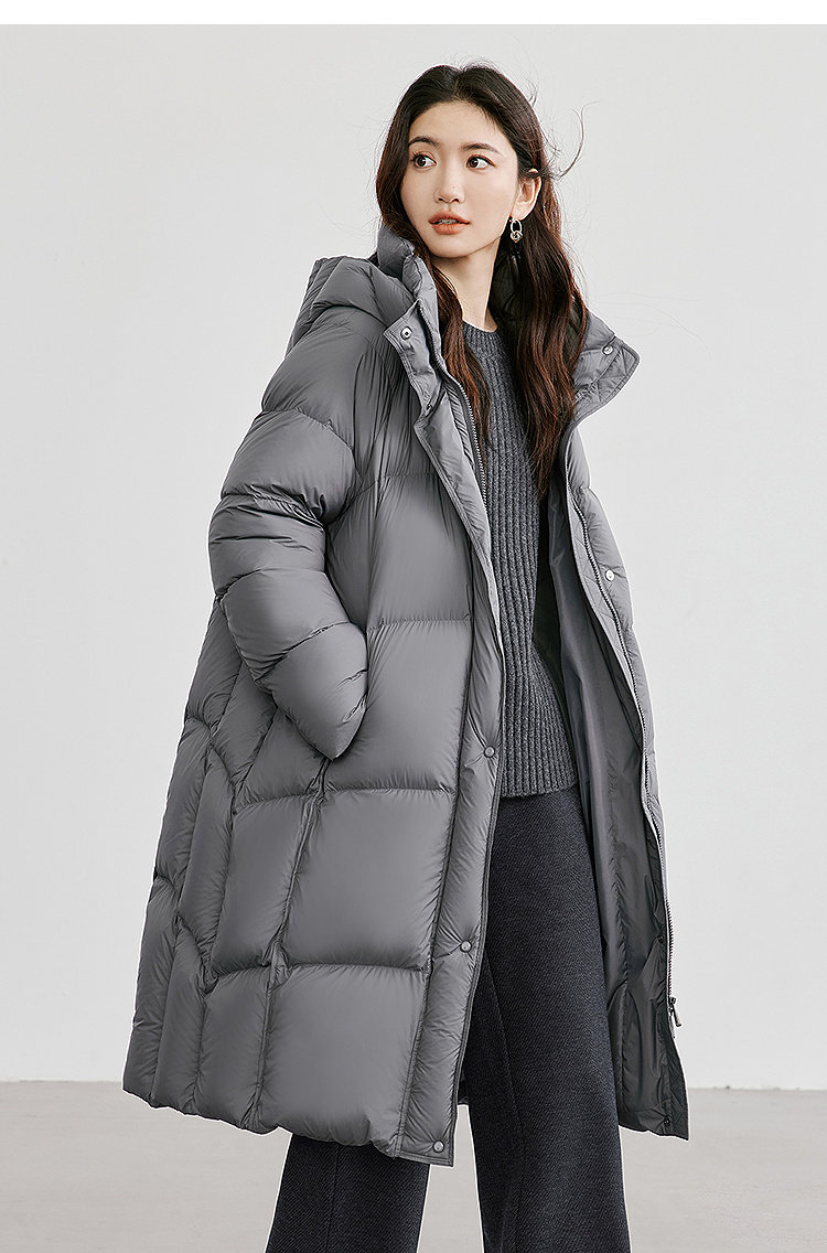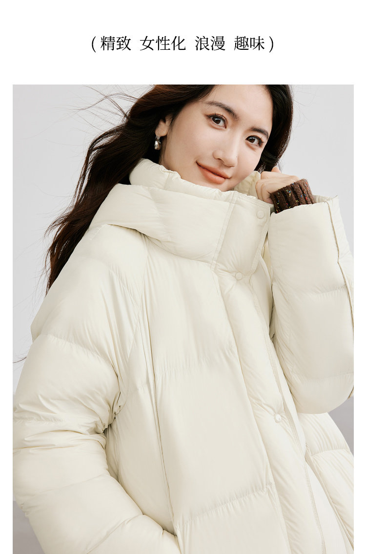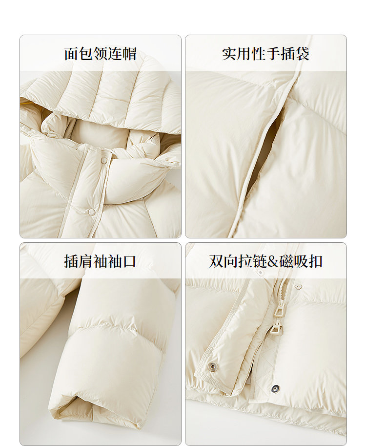 红袖【1000清洁度】90绒羽绒服冬季2024新款女装长款连帽面包外套