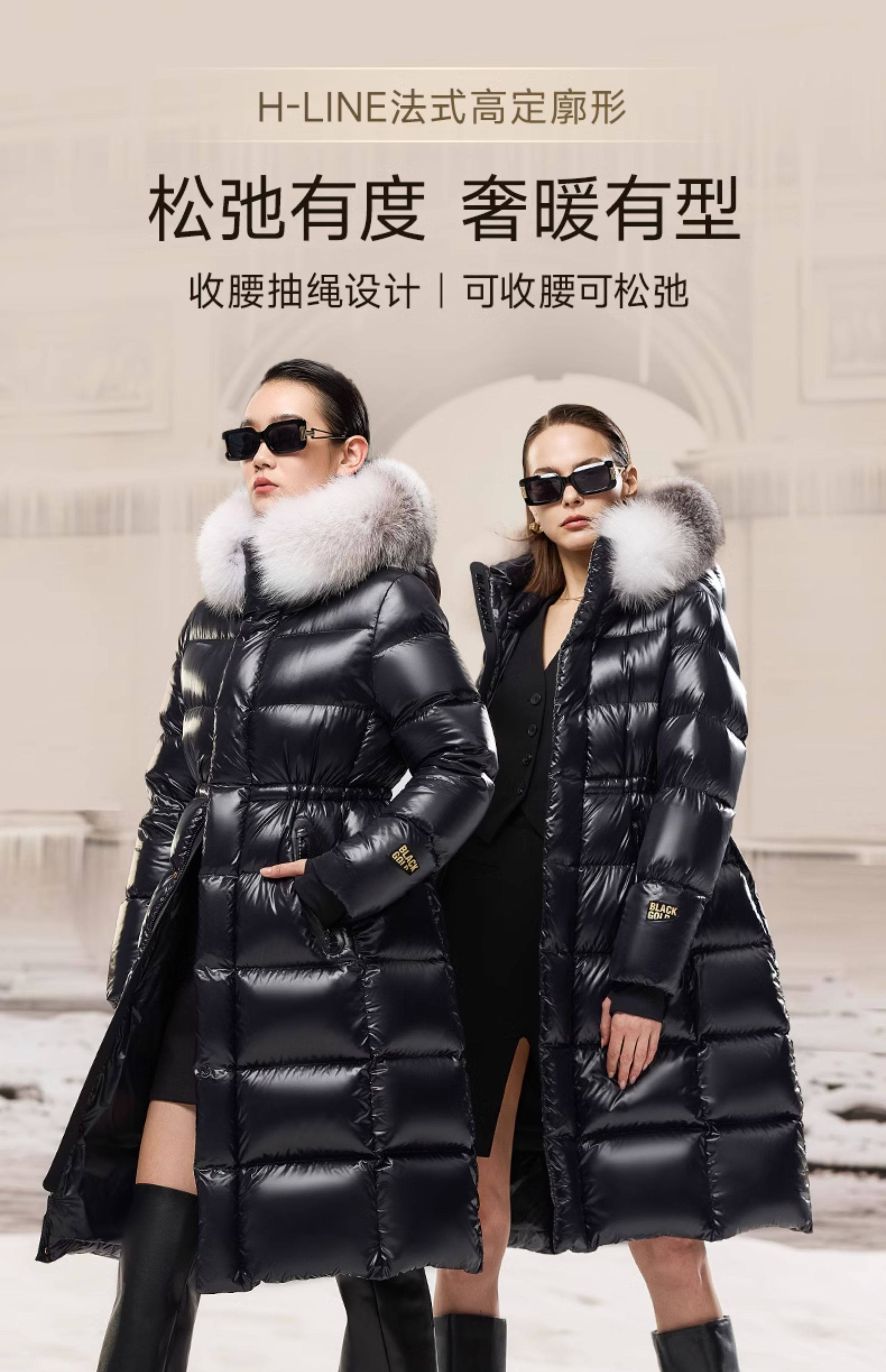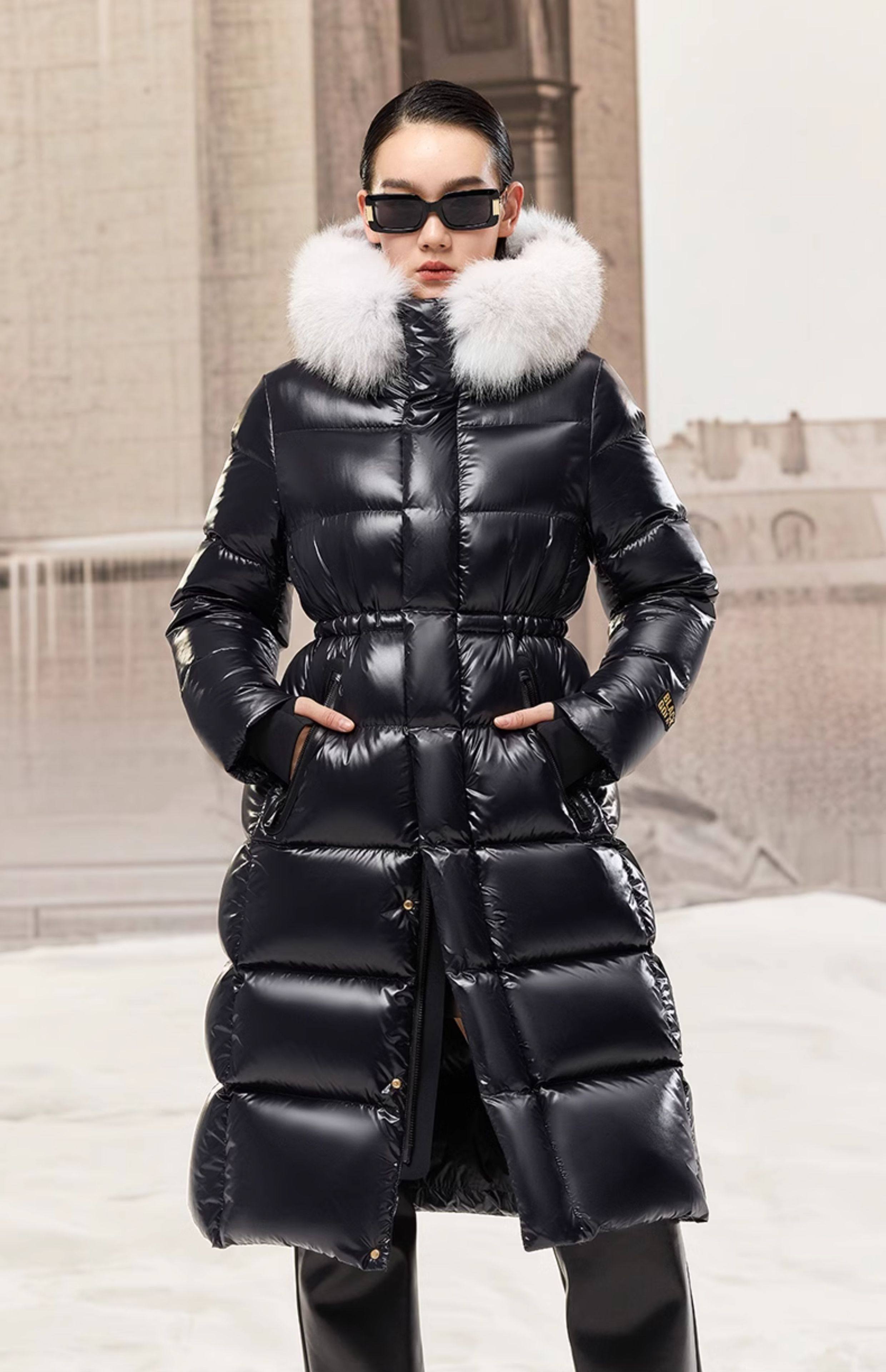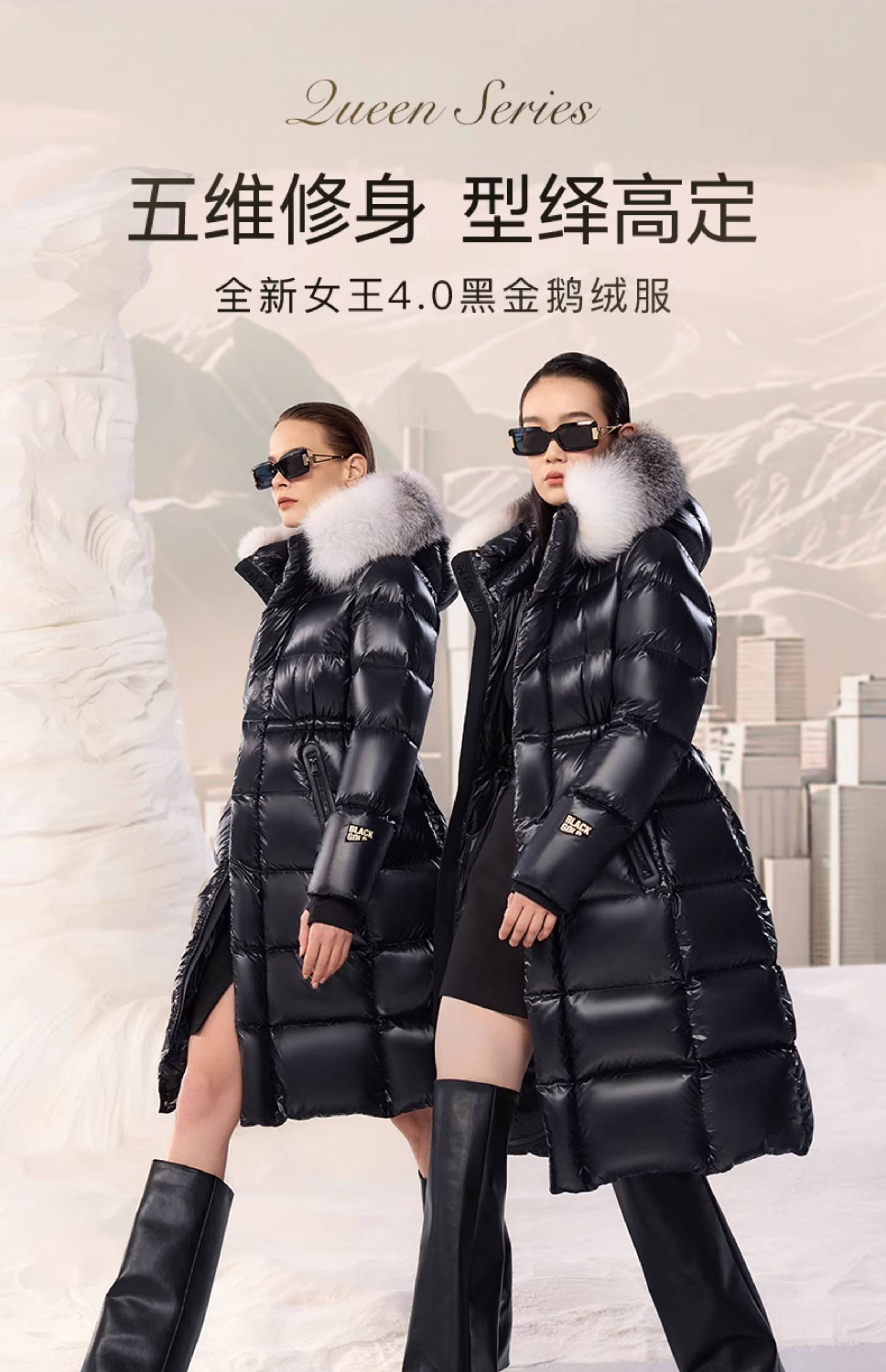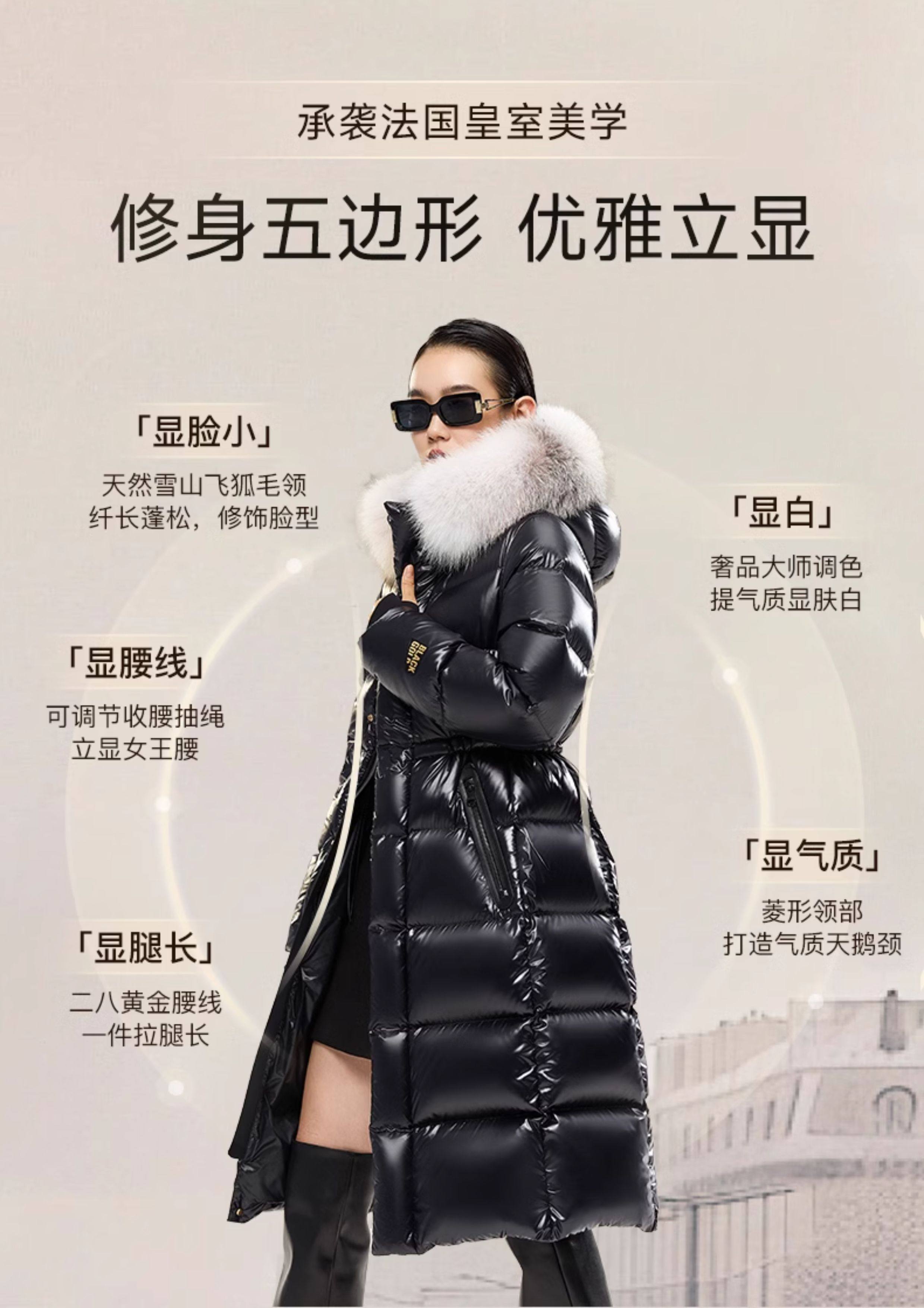 [Пуховик Gaofan Black Gold]Женский зимний пуховик Queen 4.0 с восьмикоманной структурой, утепленный, с поясом и меховым воротником.