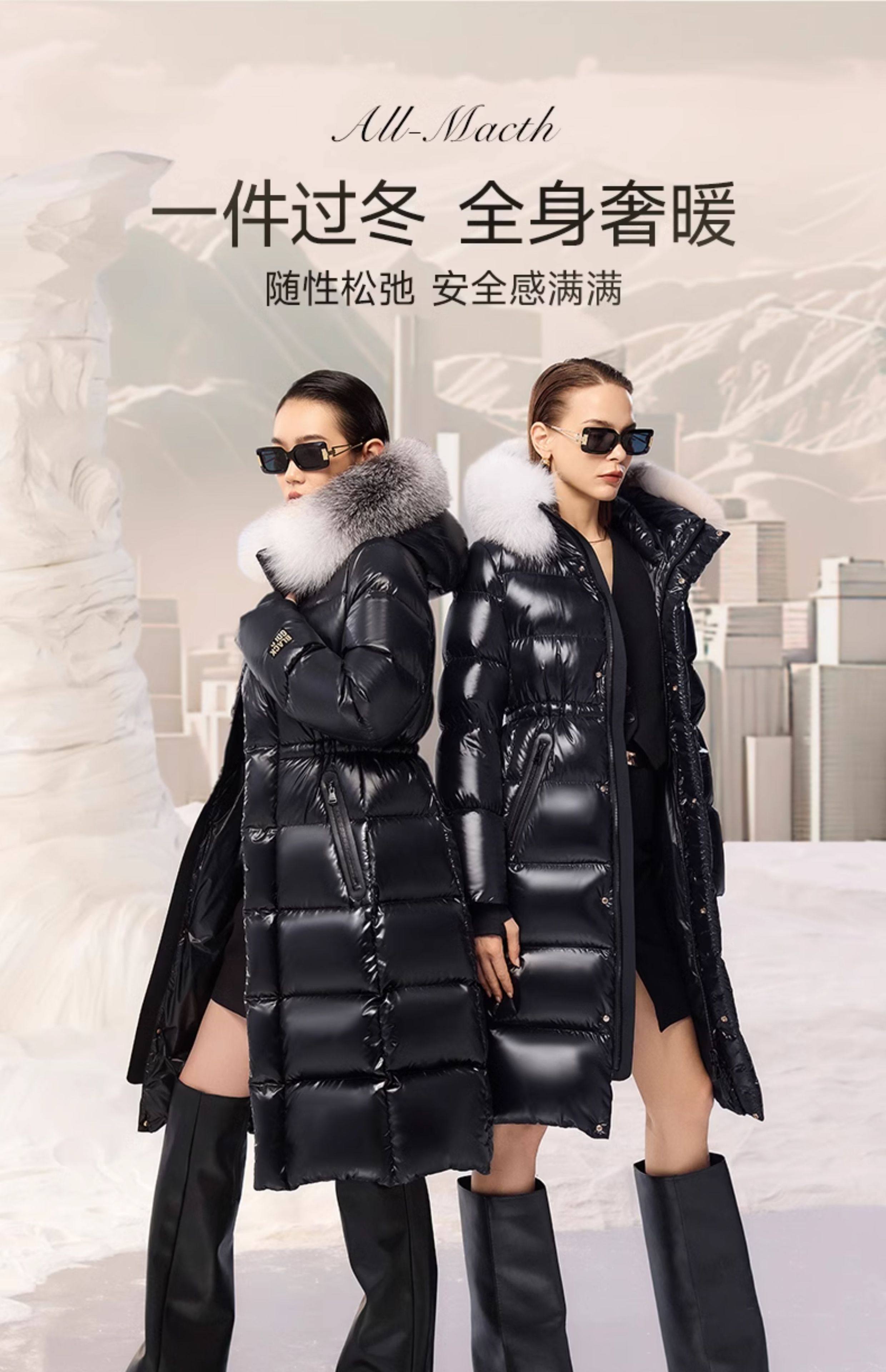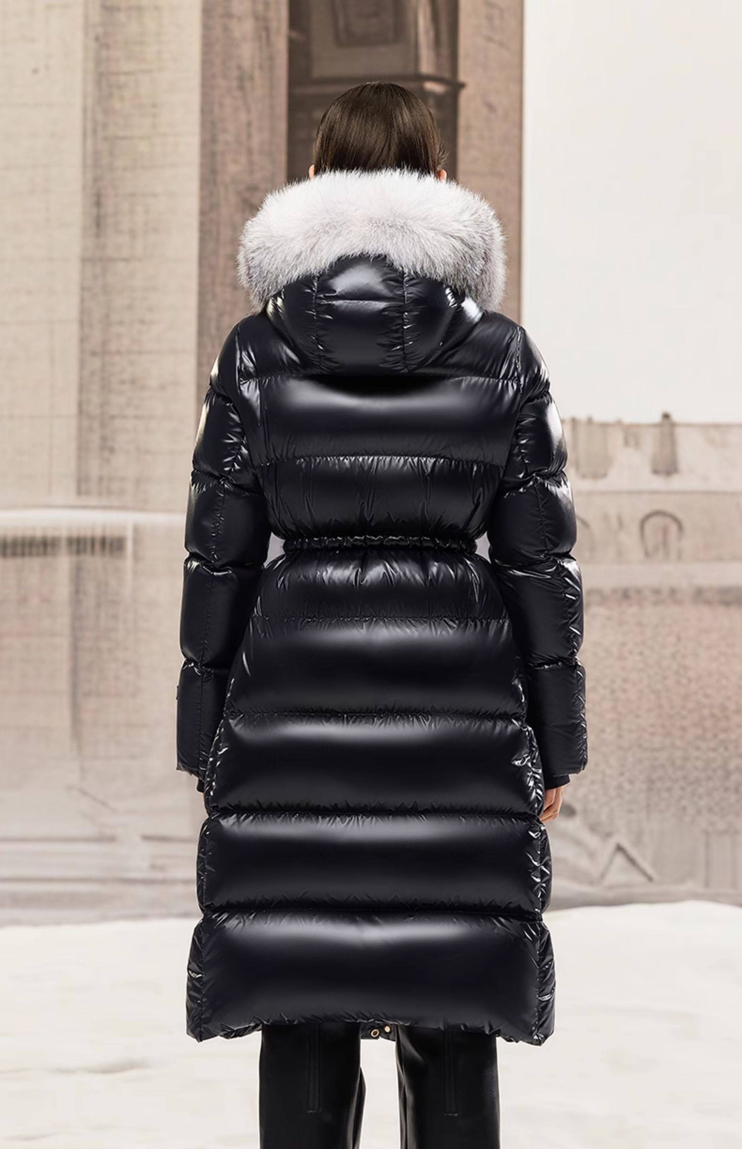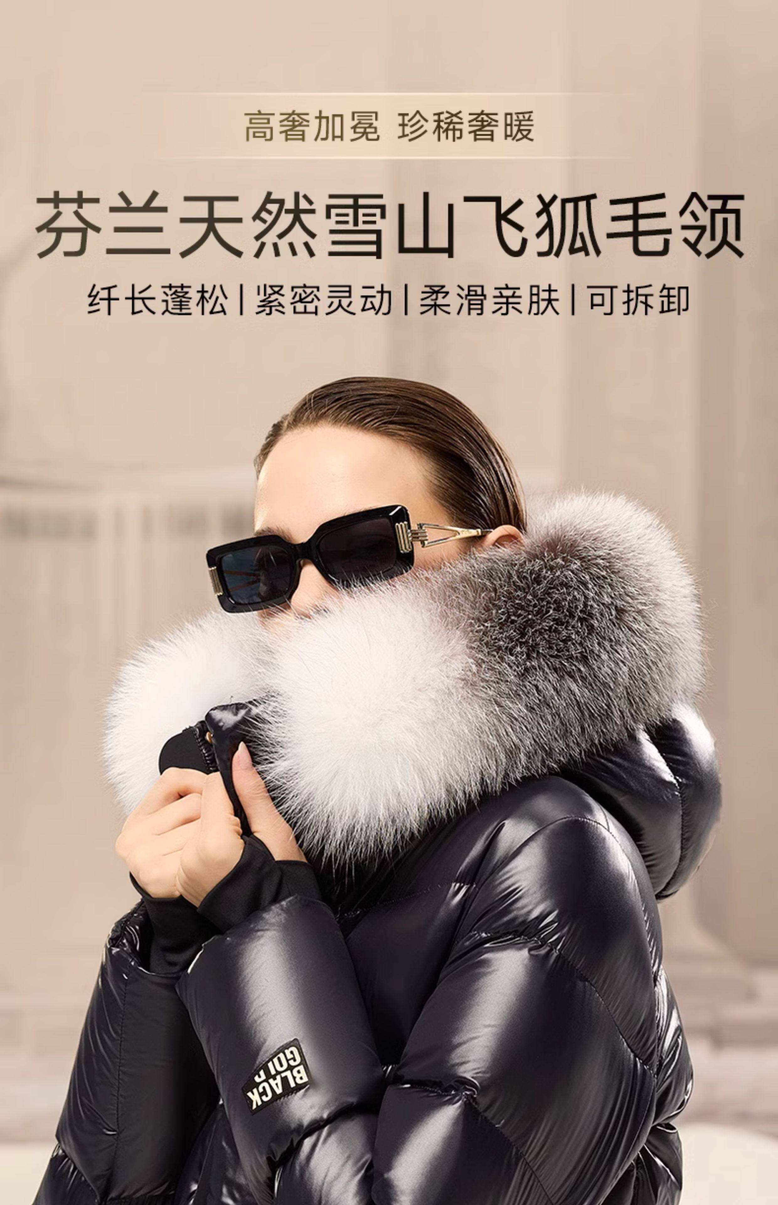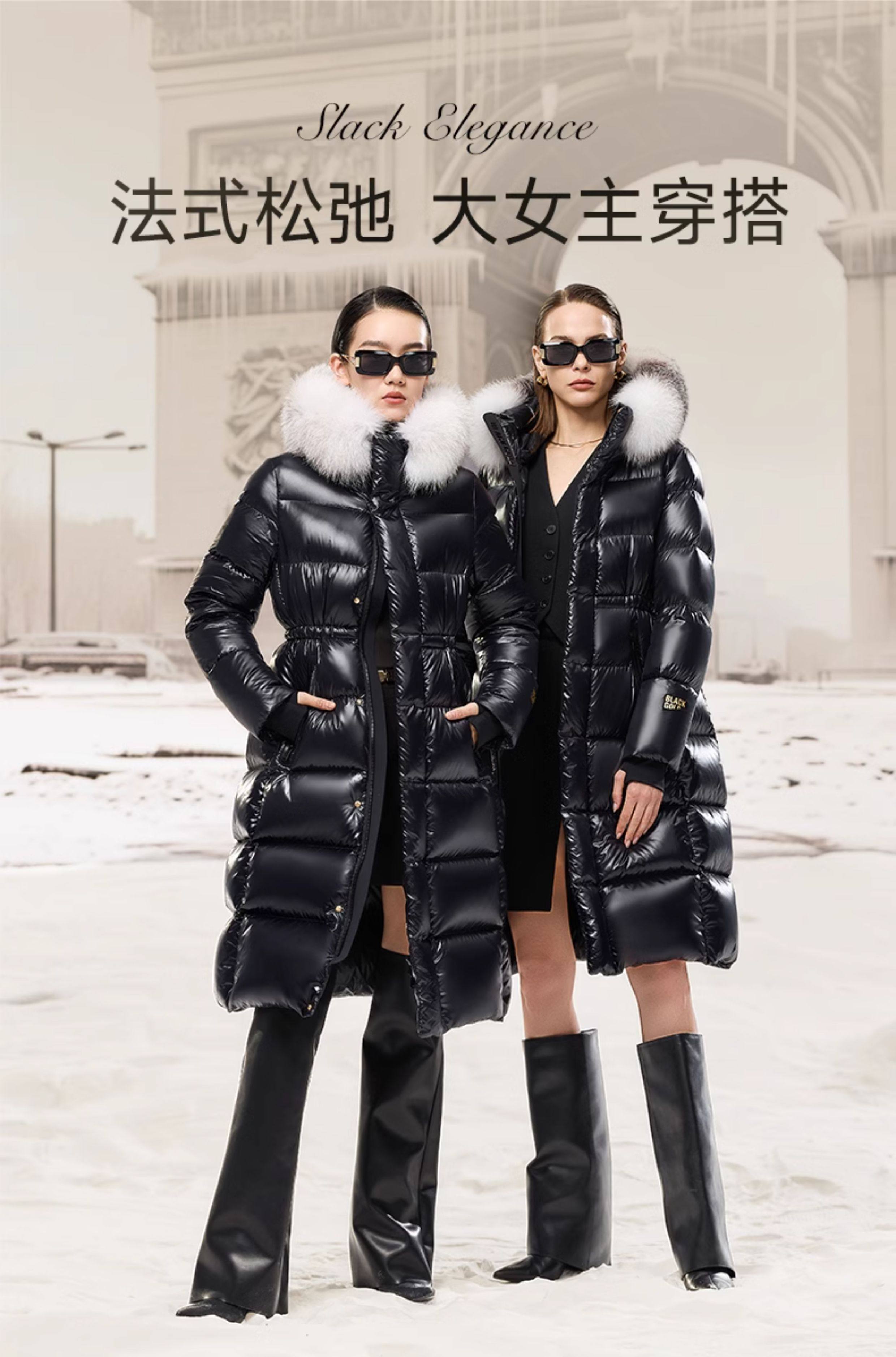 [Пуховик Gaofan Black Gold]Женский зимний пуховик Queen 4.0 с восьмикоманной структурой, утепленный, с поясом и меховым воротником.