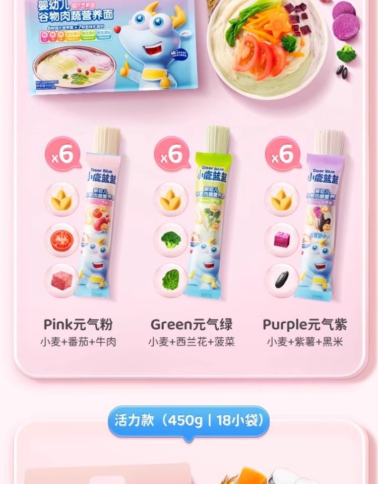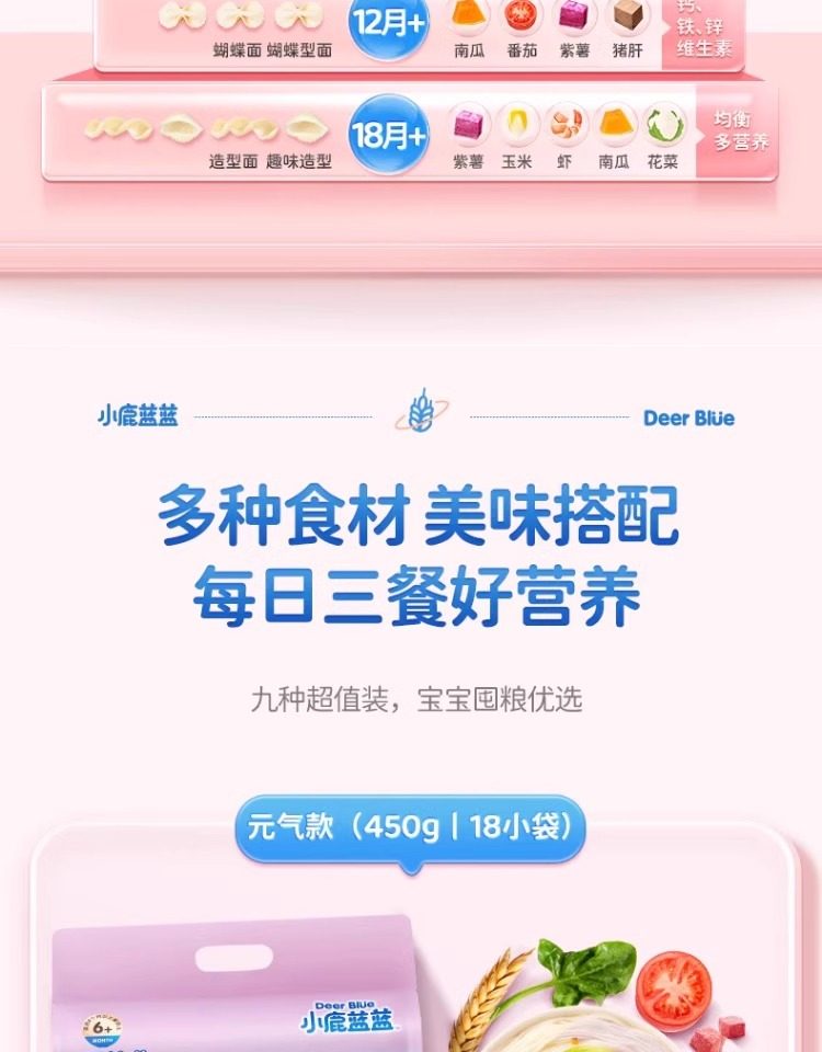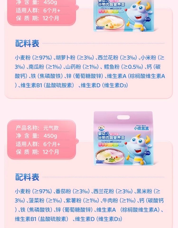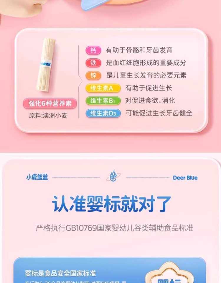 小鹿蓝蓝婴幼儿谷物肉蔬营养面条宝宝辅食无添加盐儿童健康主食