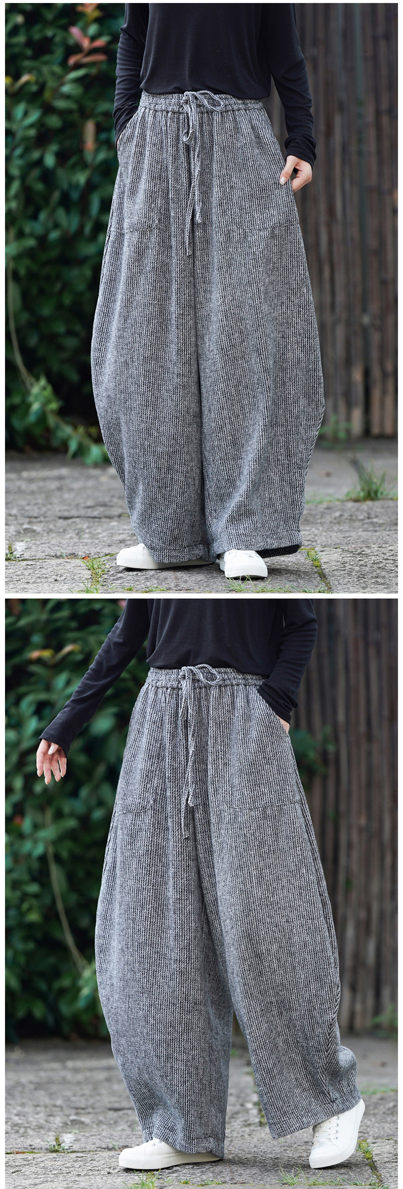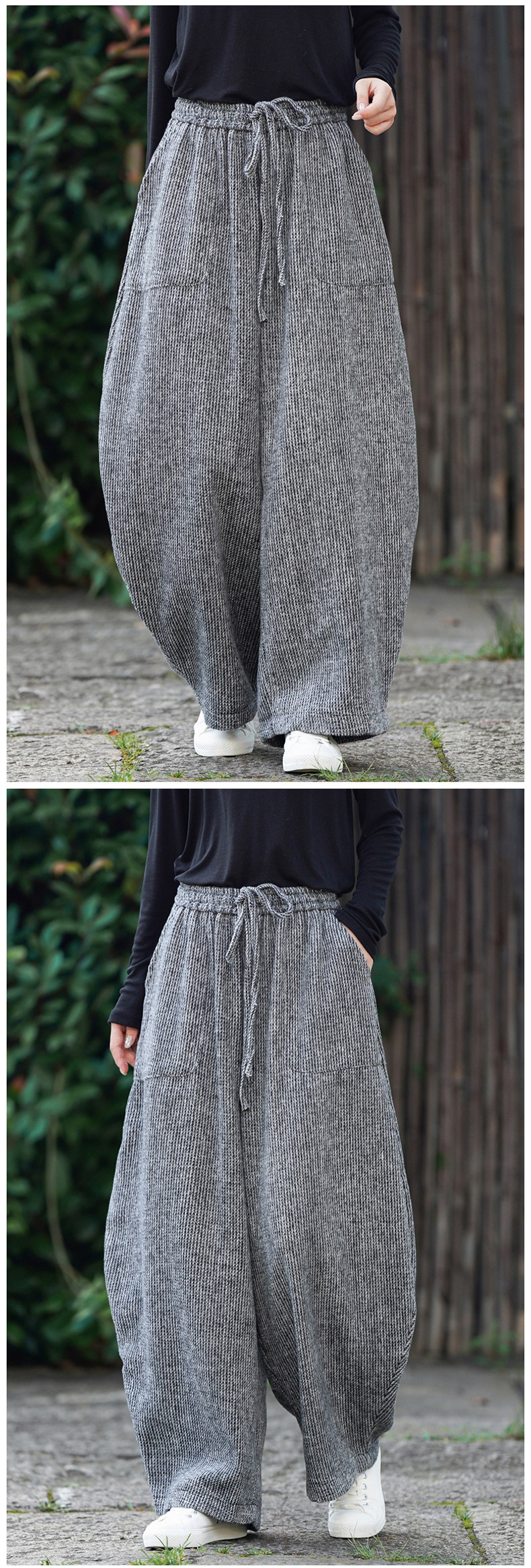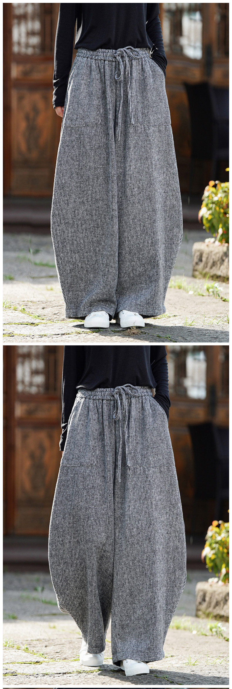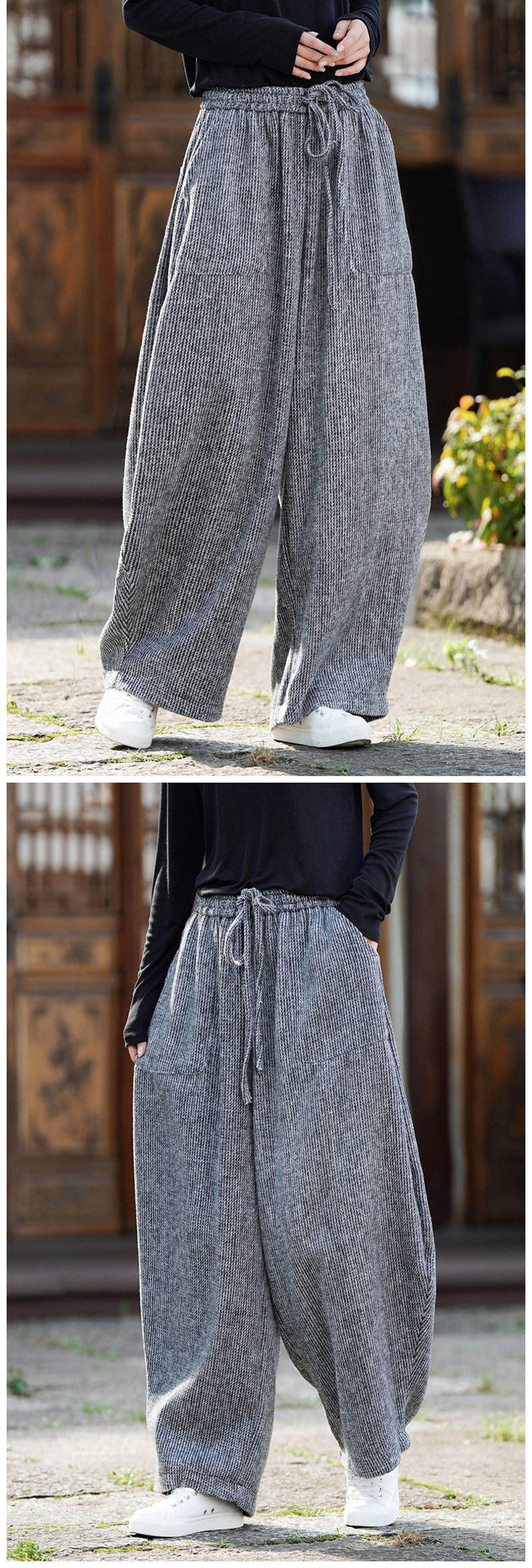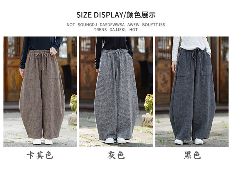 Chinesischer Stil Herren Herbst und Winter Wollmaterial gerade Hose Retro lose Hose mit weitem Bein große Pumphose Freizeithose