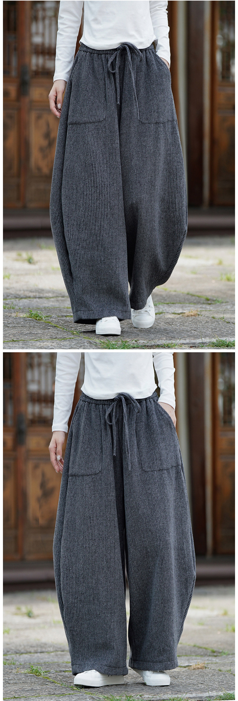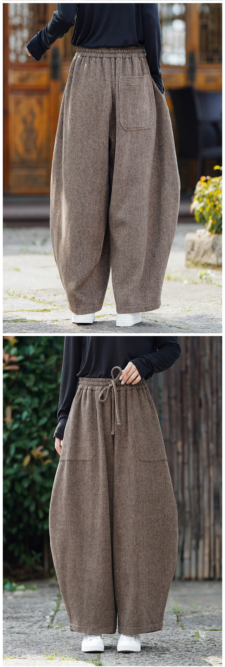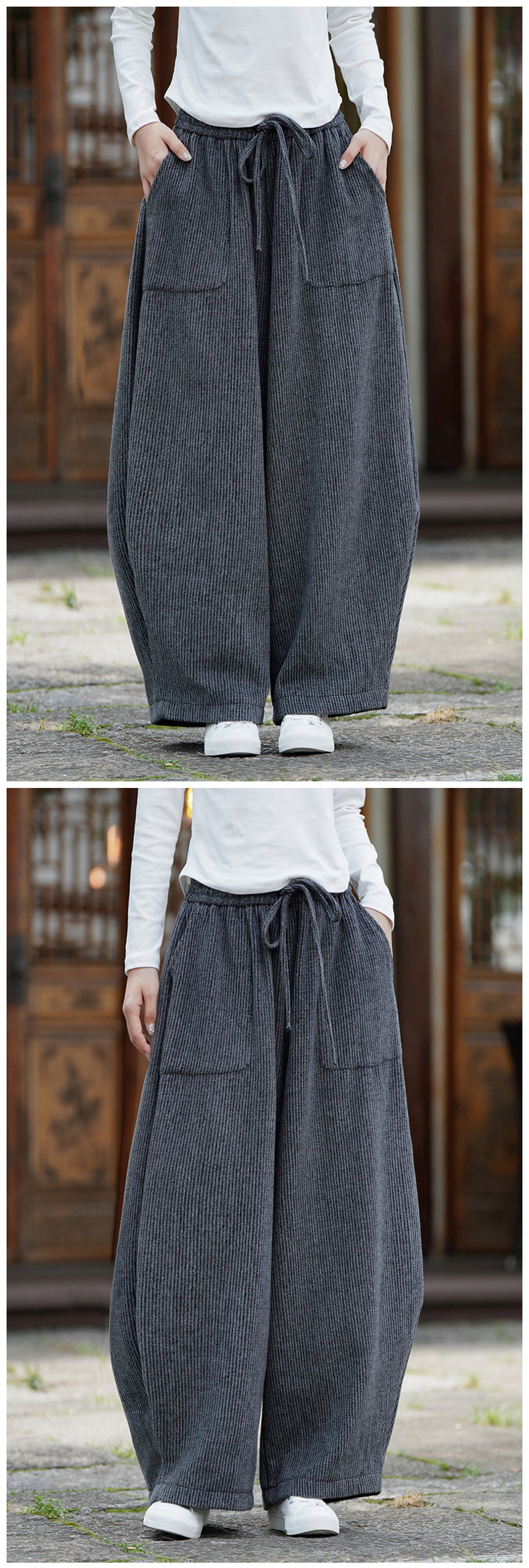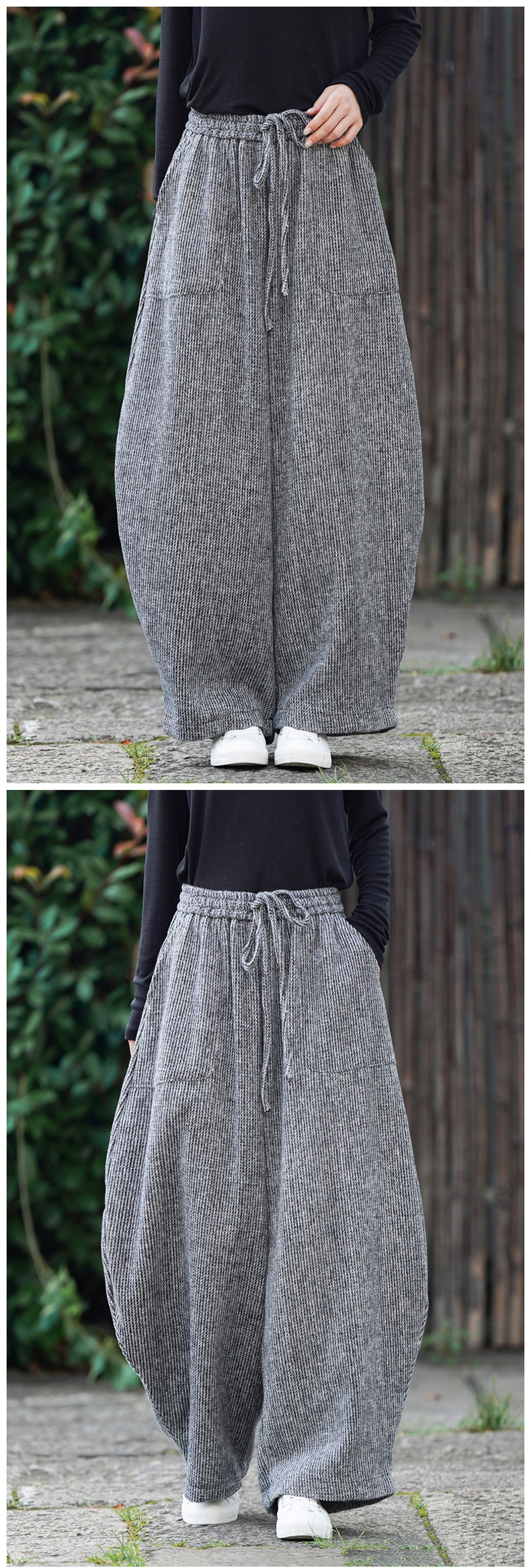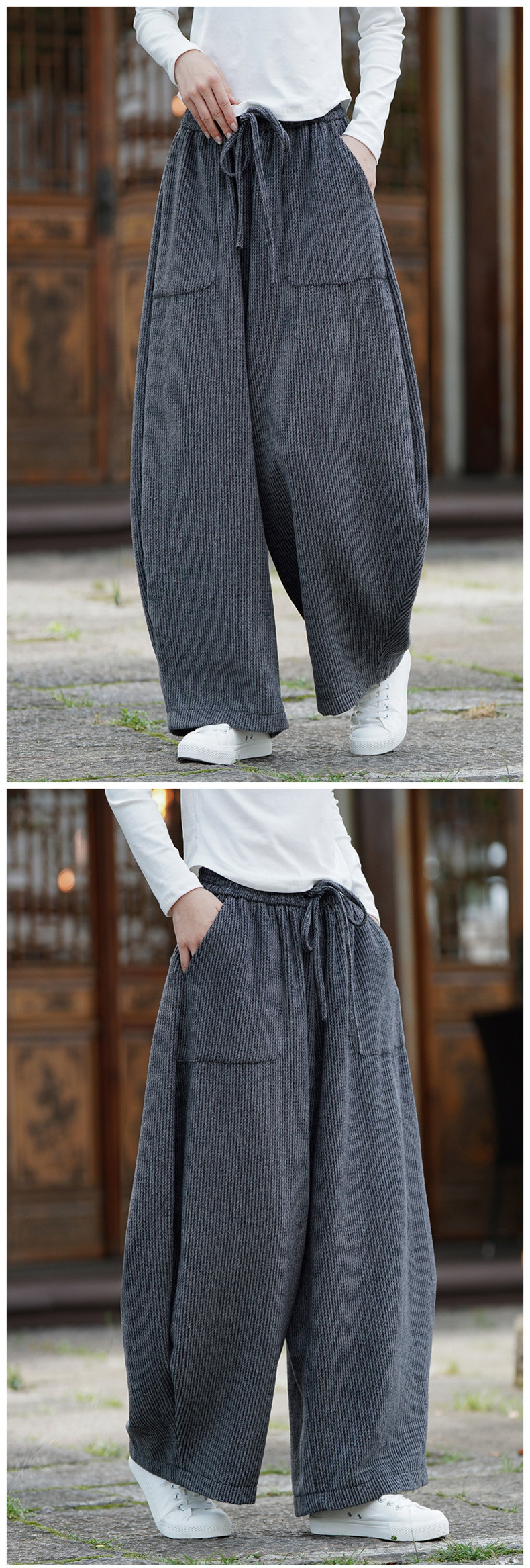 Chinesischer Stil Herren Herbst und Winter Wollmaterial gerade Hose Retro lose Hose mit weitem Bein große Pumphose Freizeithose
