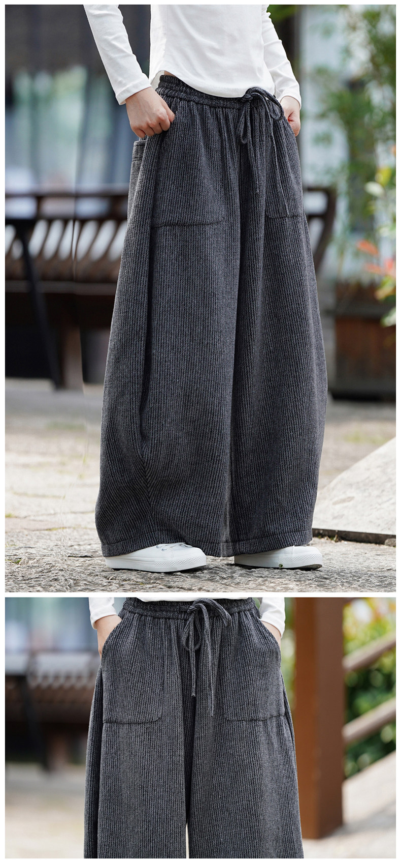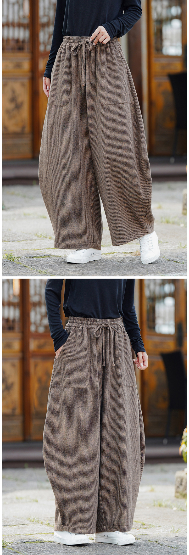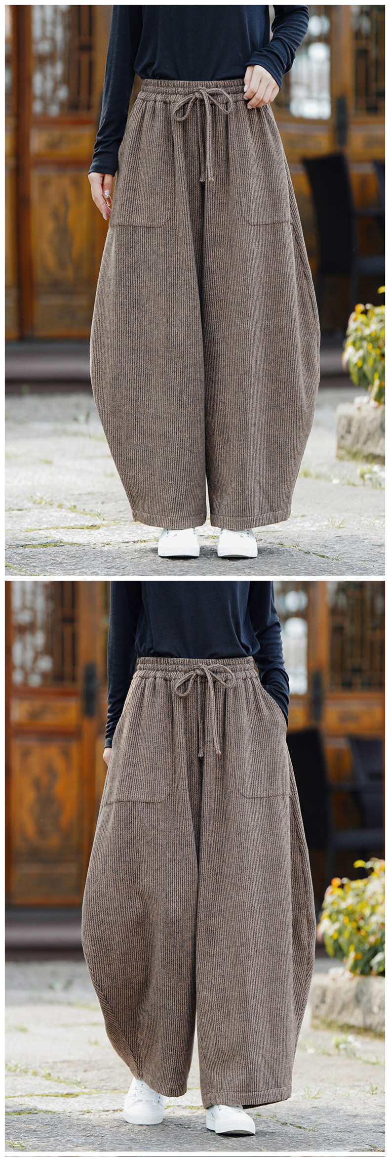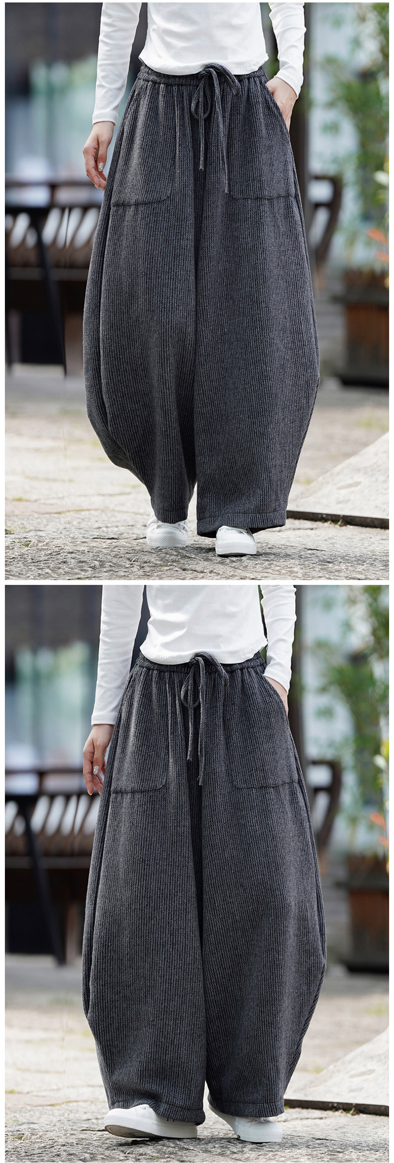 Chinesischer Stil Herren Herbst und Winter Wollmaterial gerade Hose Retro lose Hose mit weitem Bein große Pumphose Freizeithose