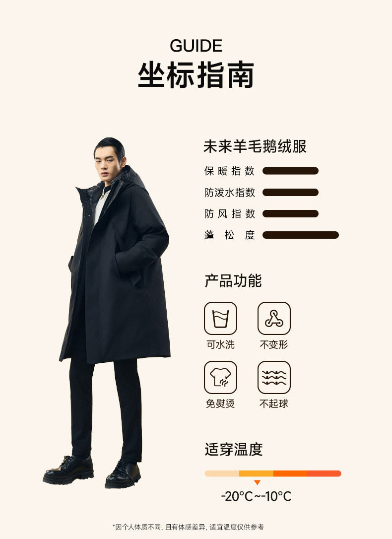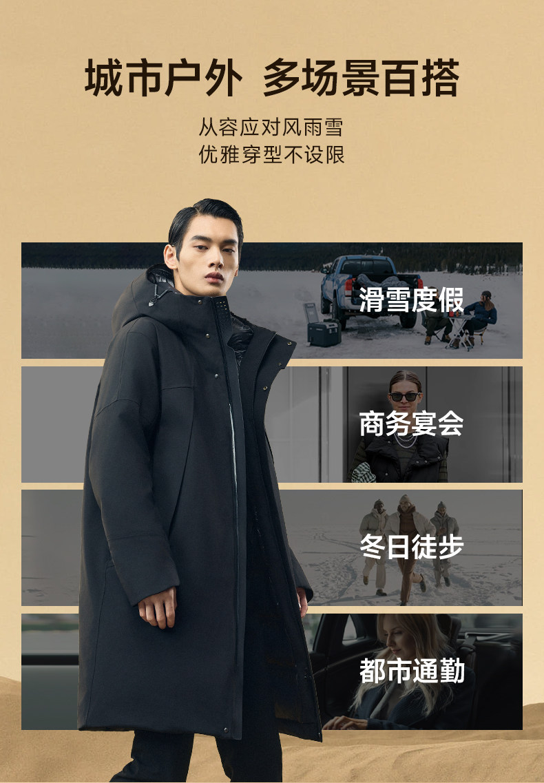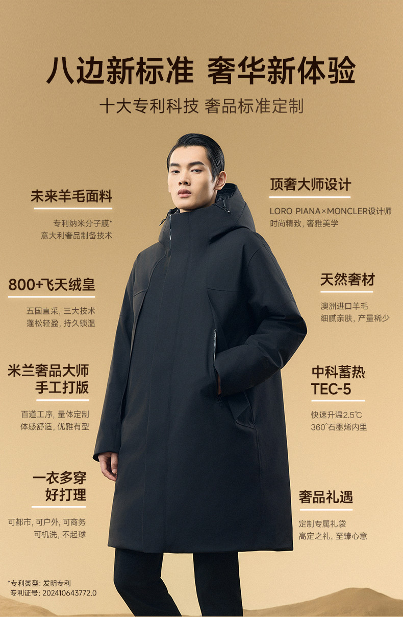Der erste lange Wintermantel der Future Wool 4.0 Dreipunkt-Daunenjacke für Herren