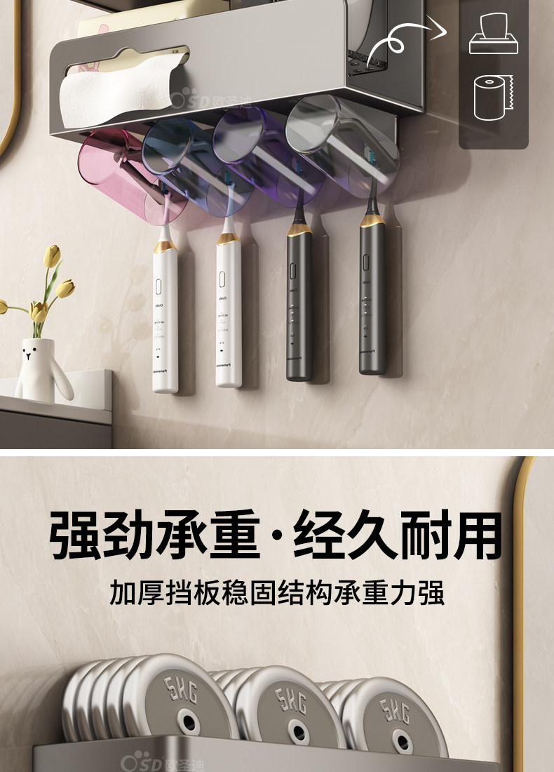 Color Classification Gunmetal Gray Double Toothbrush Holder + Tissue Dispenser + Storage Shelf,Gunmetal Gray Three-Person Toothbrush Holder + Tissue Dispenser + Storage Shelf + Single Storage Tube,Gunmetal Gray Four-Person Toothbrush Holder + Tissue Dispenser + Storage Shelf + Double Storage Bin,Gunmetal Gray Five-Person Toothbrush Holder + Tissue Holder + Storage Shelf + Single Storage Tube + Facial Tissue Compartment,Gun Ash❤Double Toothbrush Holder + Paper Towel Holder + Storage Rack[With Colorful Cup],Gun Ash❤Three-Person Toothbrush Holder + Paper Towel Holder + Storage Rack + Storage Tube[With Colorful Cup],Gun Ash❤Four-Person Toothbrush Holder + Paper Towel Holder + Storage Rack + Storage Bin[With Colorful Cup],Gun Ash ❤ Five-Person Toothbrush Holder + Paper Towel Holder + Storage Rack + Storage Tube + Face Towel Compartment[With Colorful Cup]