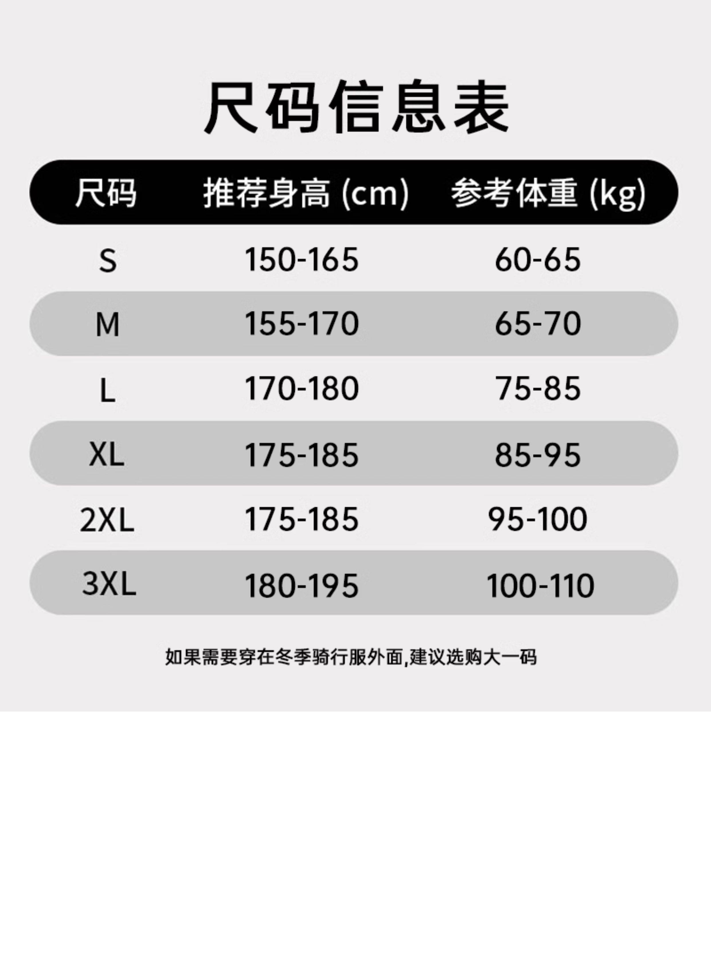 China (cm) 165 / 88-90 170 / 96-98 175 / 108-110 180 / 118-122 185 / 126-130