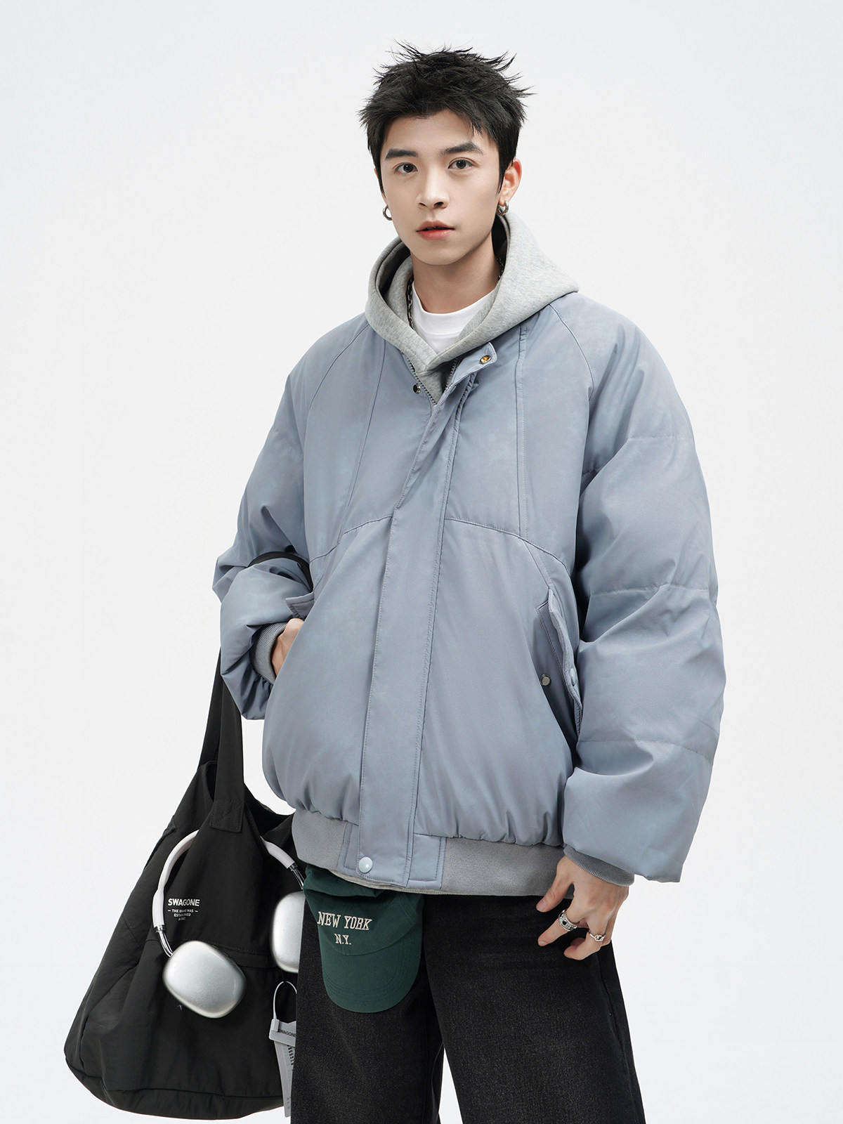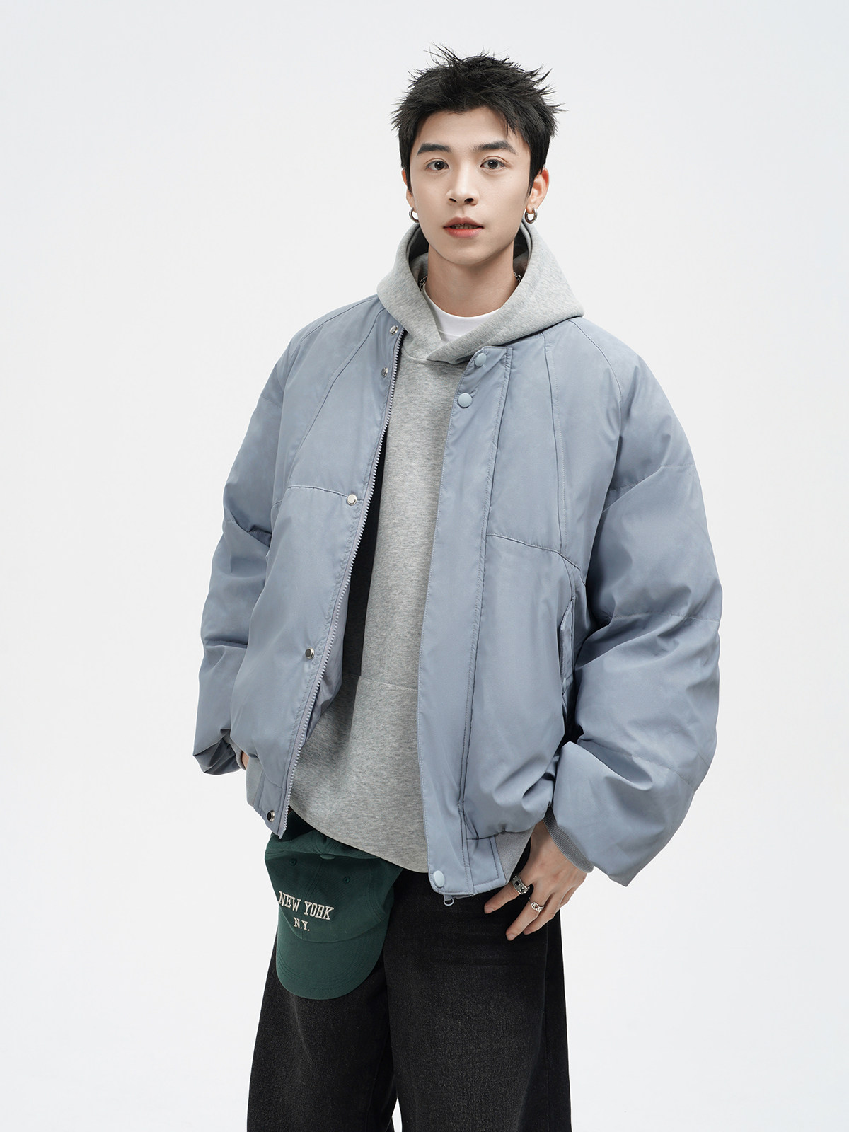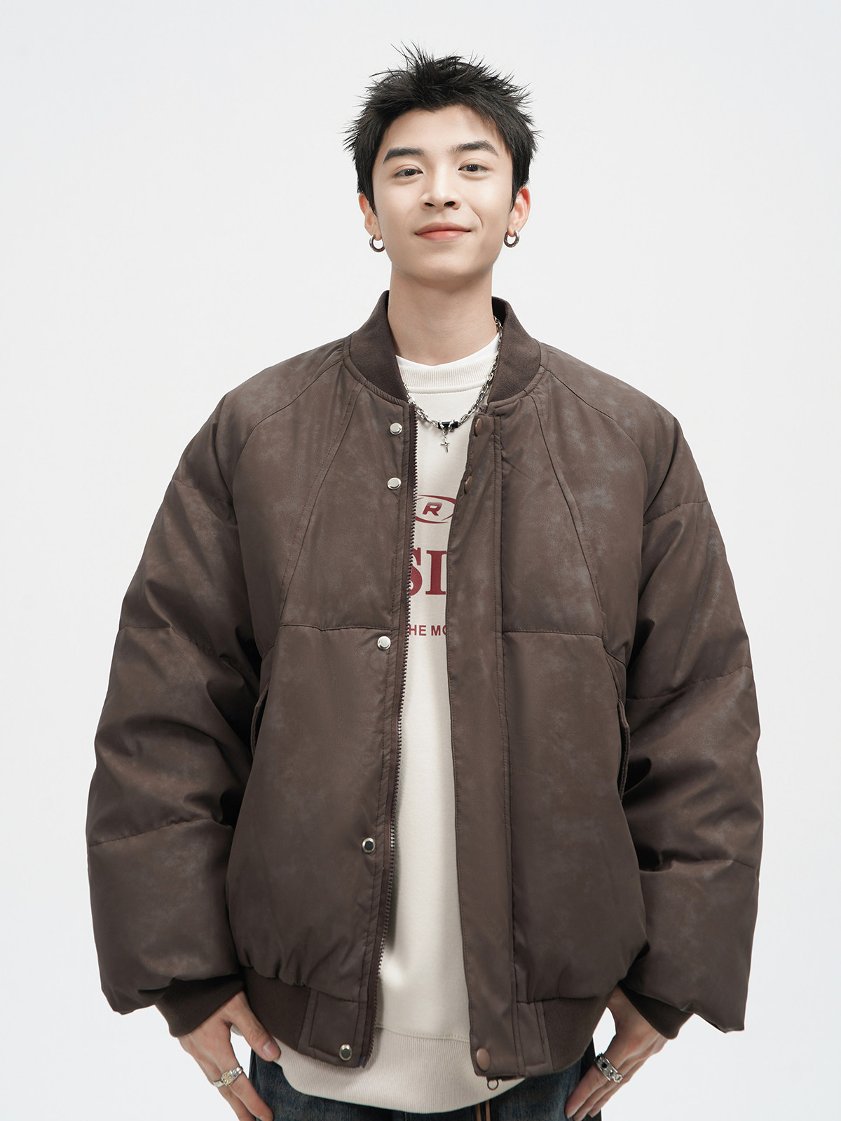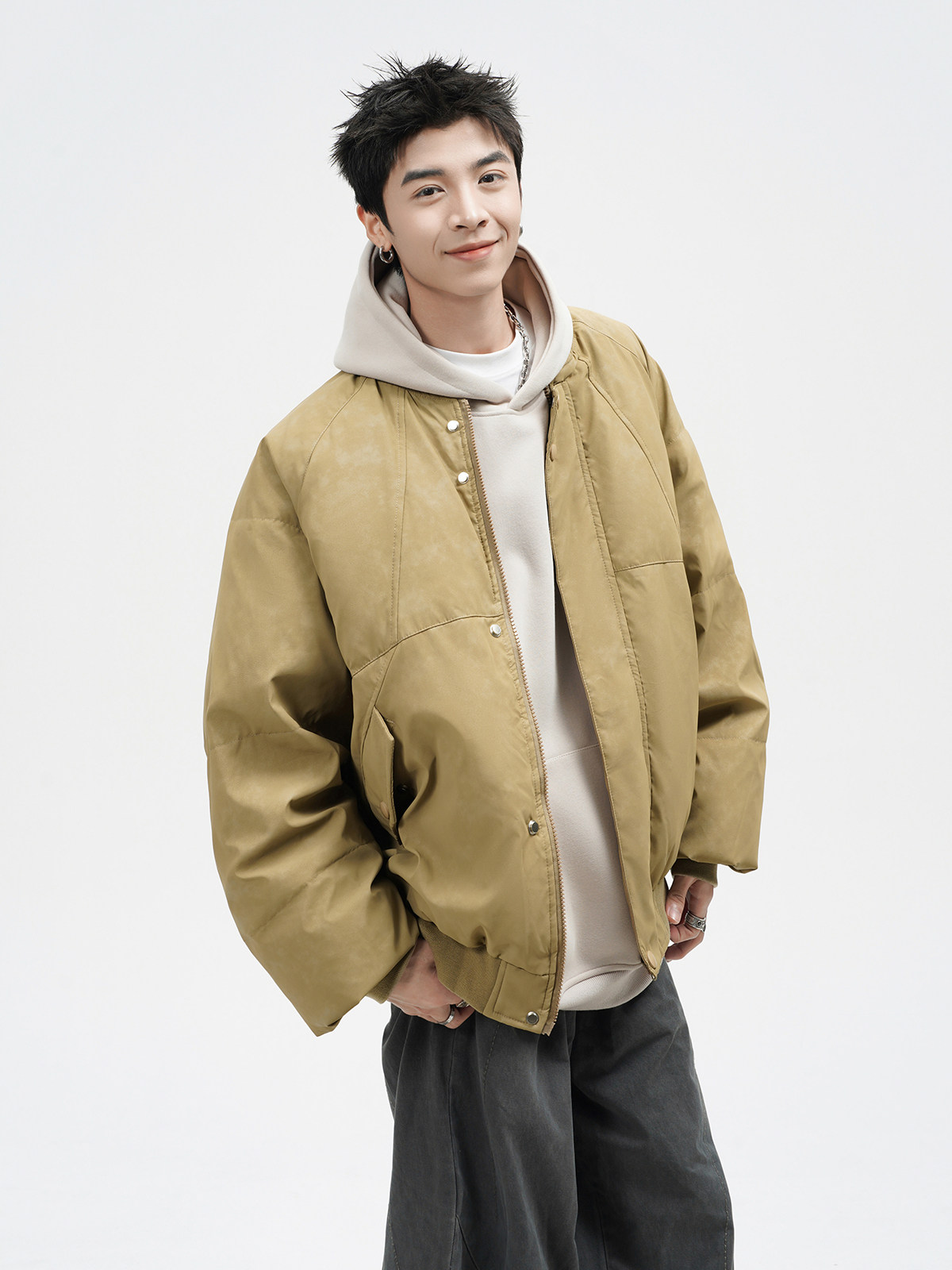 Men's Winter American High Street Baseball Jacket with White Duck down Filling, Trendy Brand Couple Style Versatile Jacket