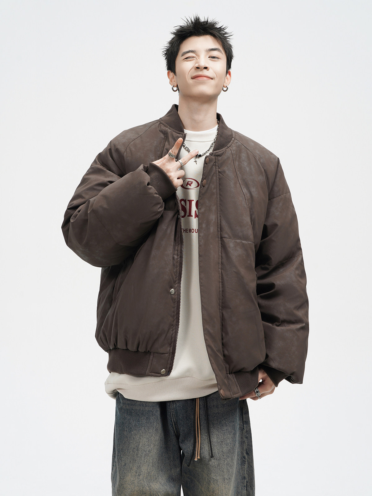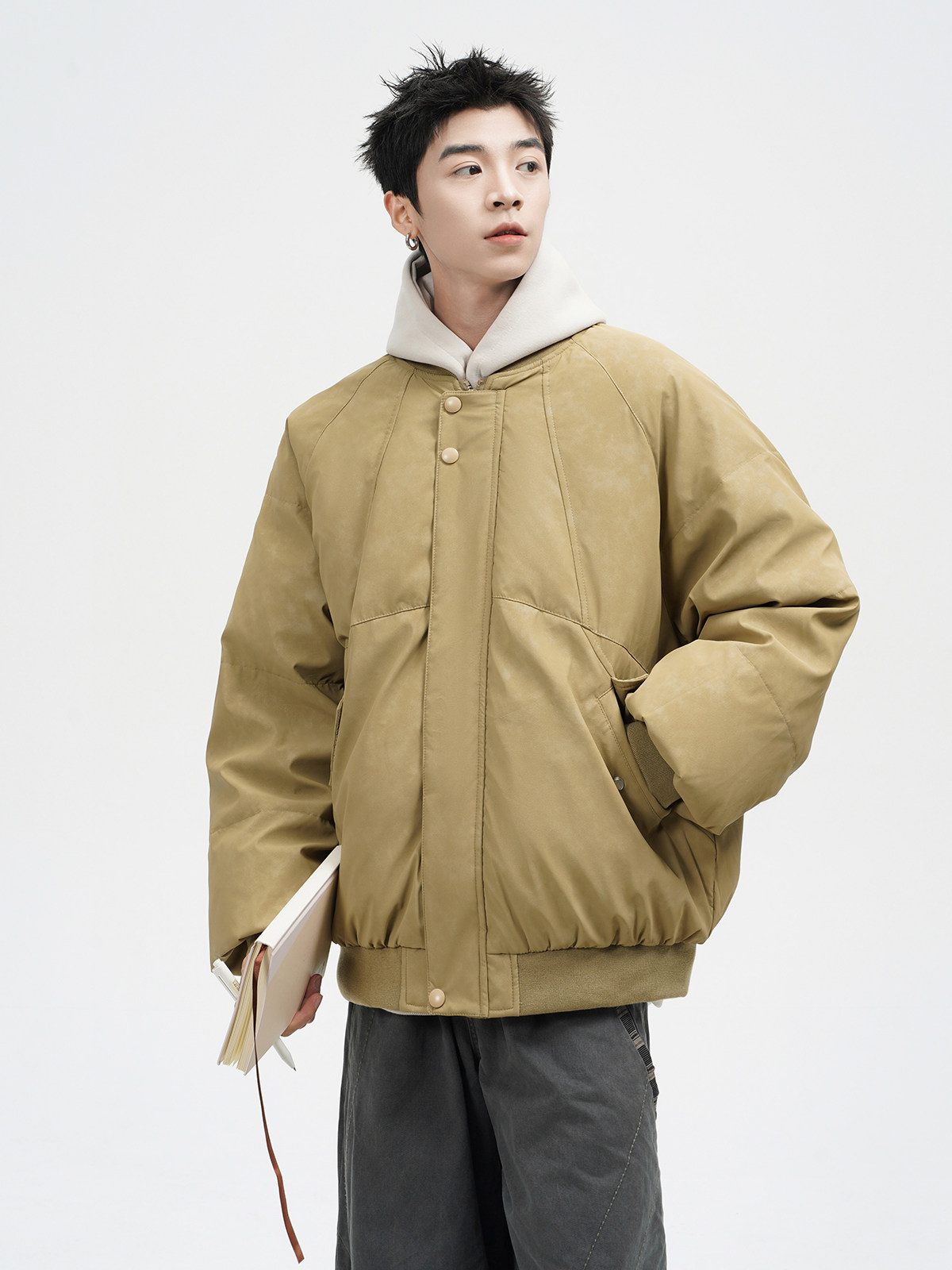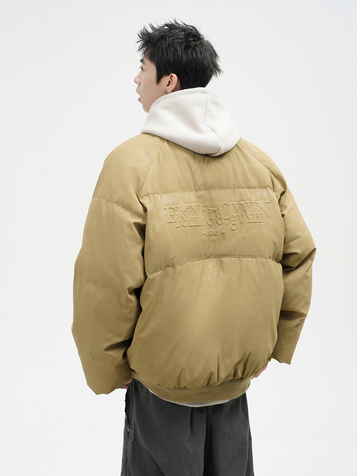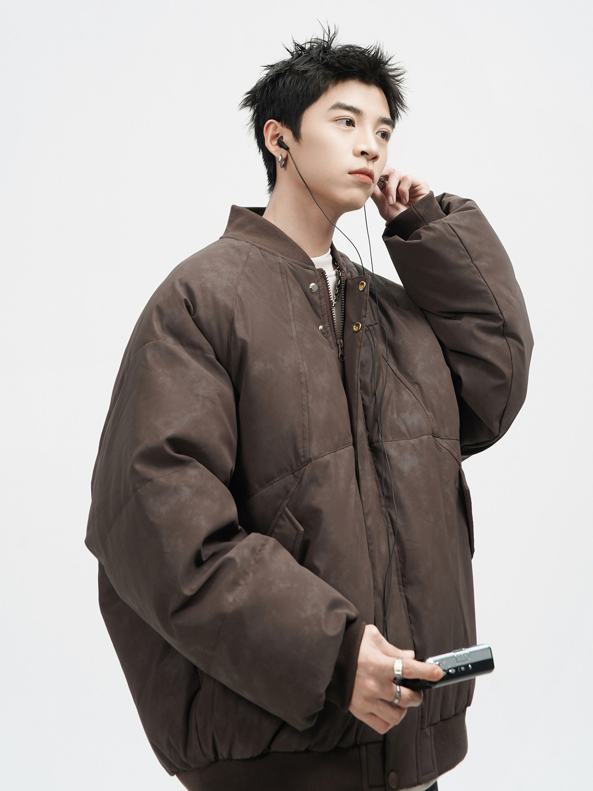 Men's Winter American High Street Baseball Jacket with White Duck down Filling, Trendy Brand Couple Style Versatile Jacket