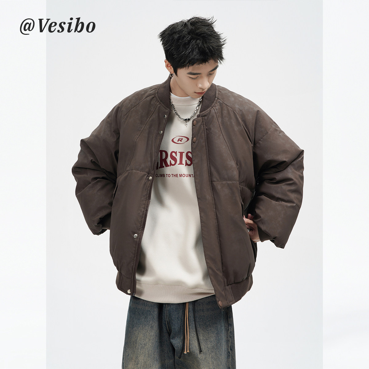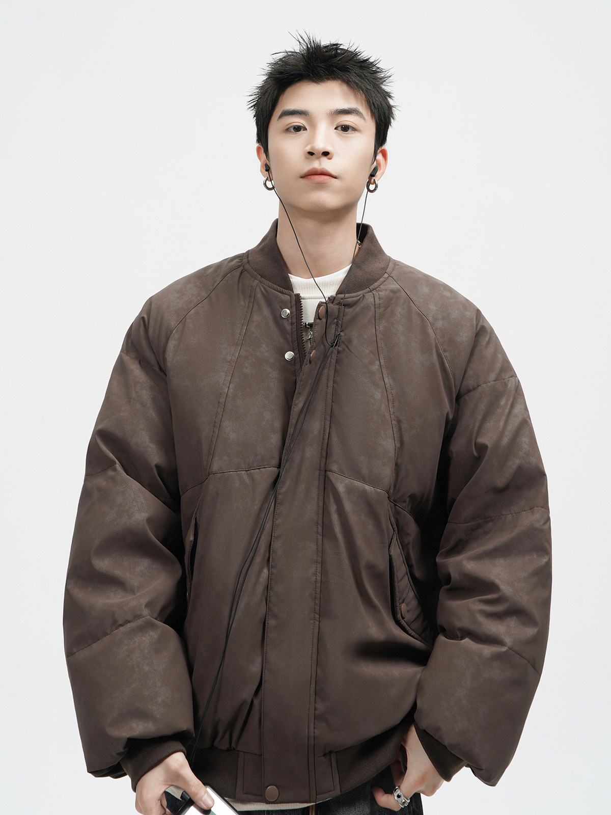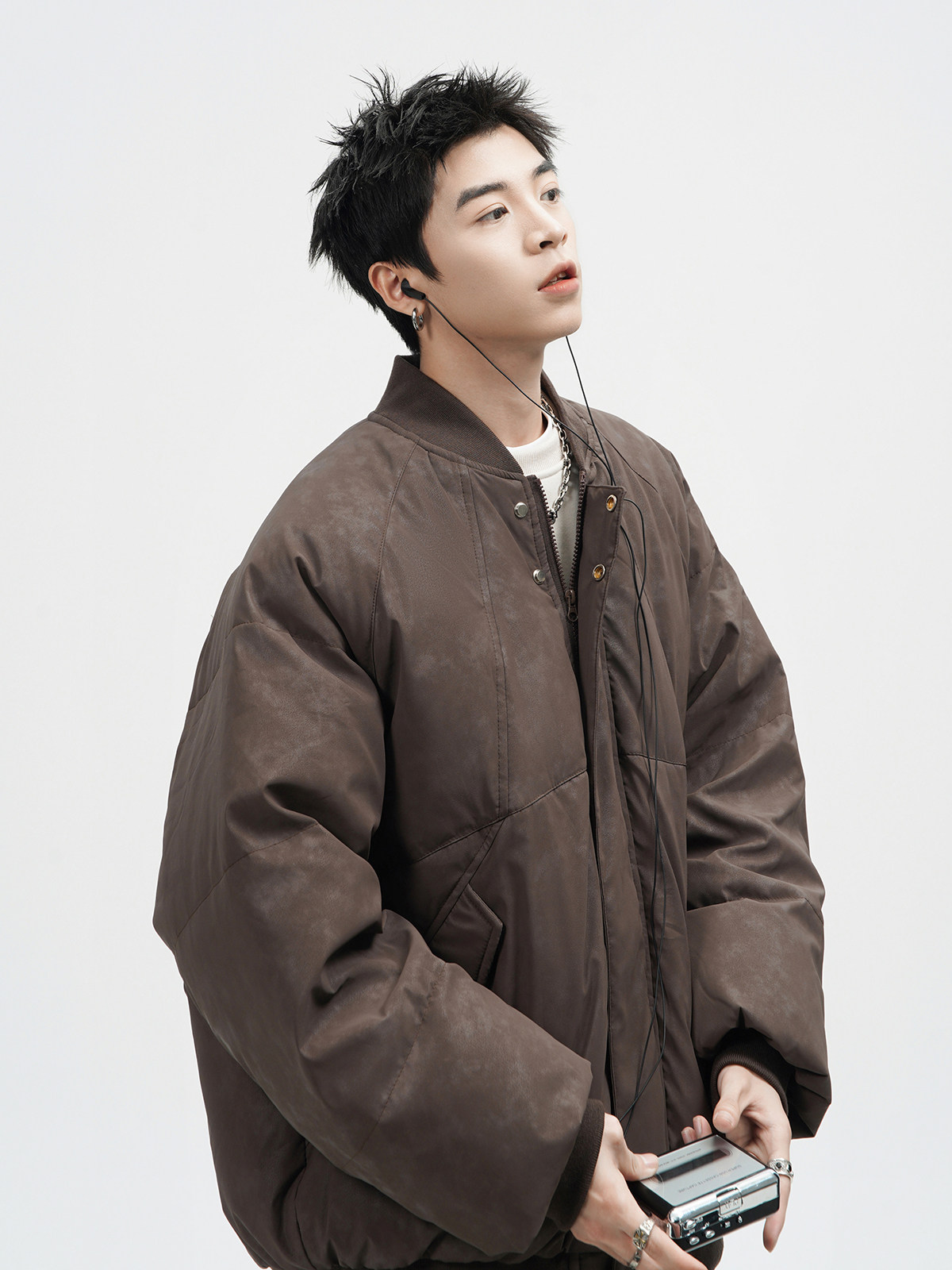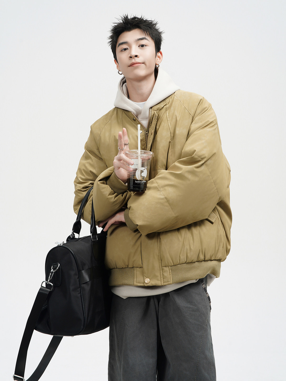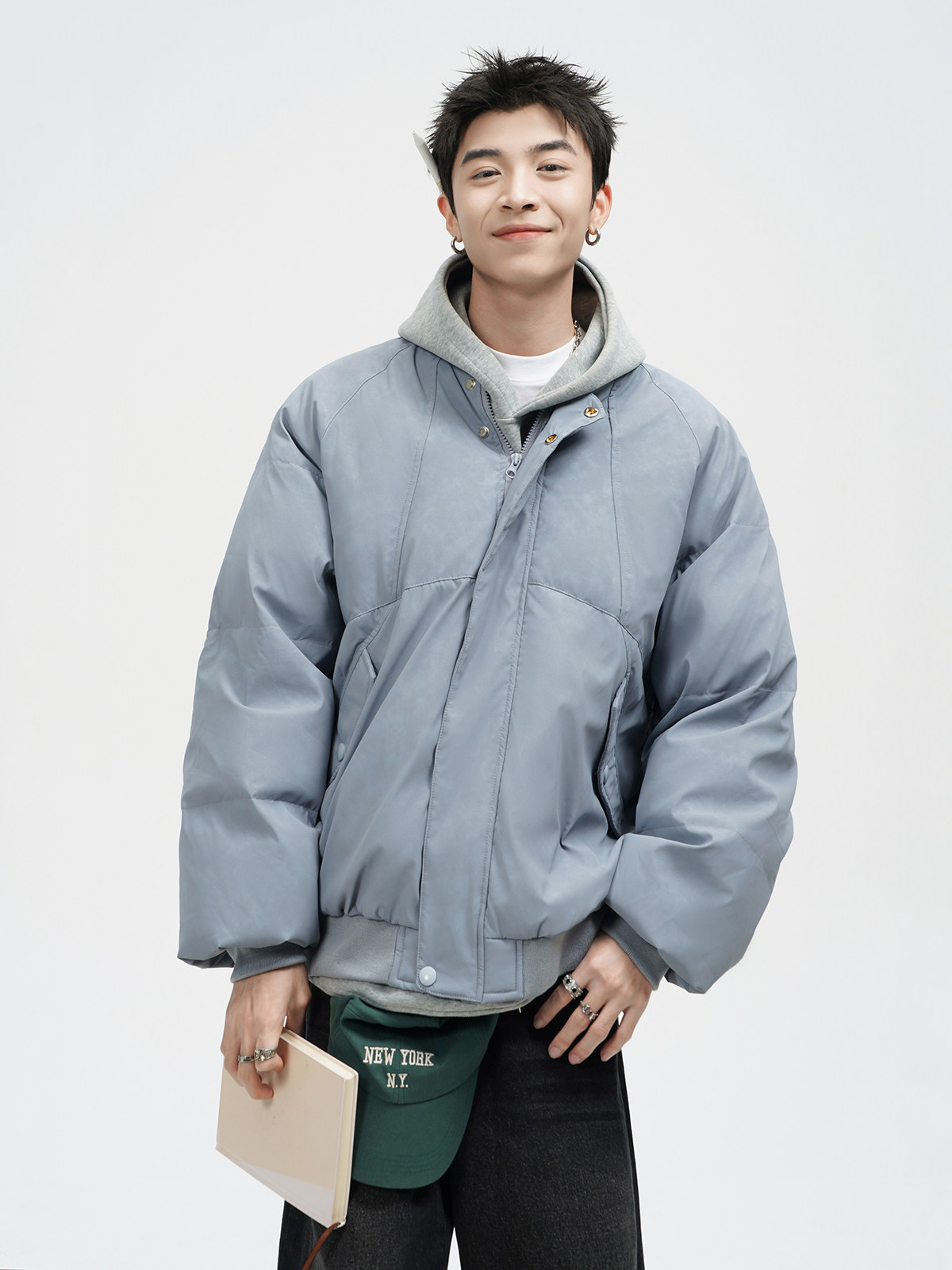 Men's Winter American High Street Baseball Jacket with White Duck down Filling, Trendy Brand Couple Style Versatile Jacket