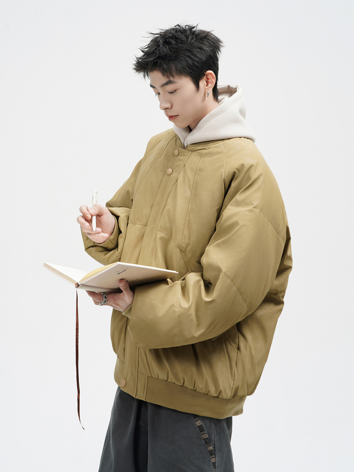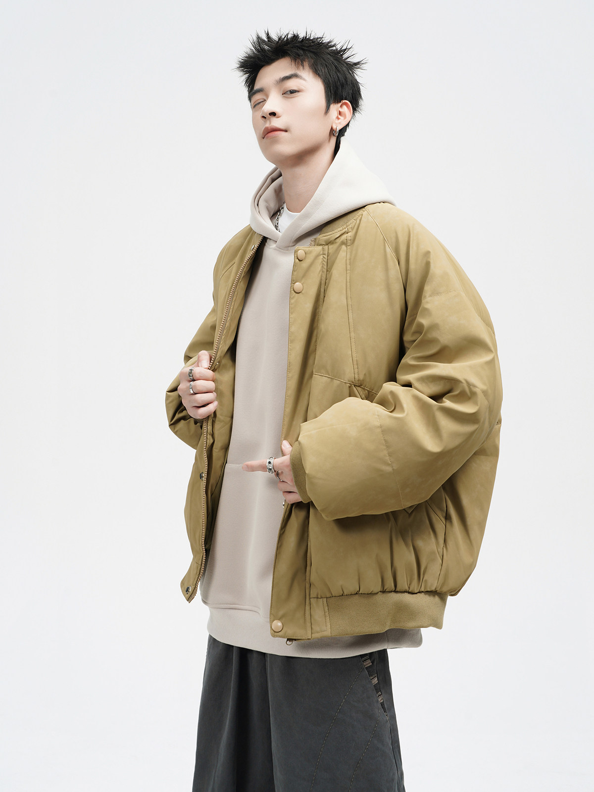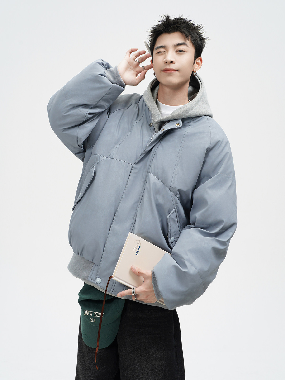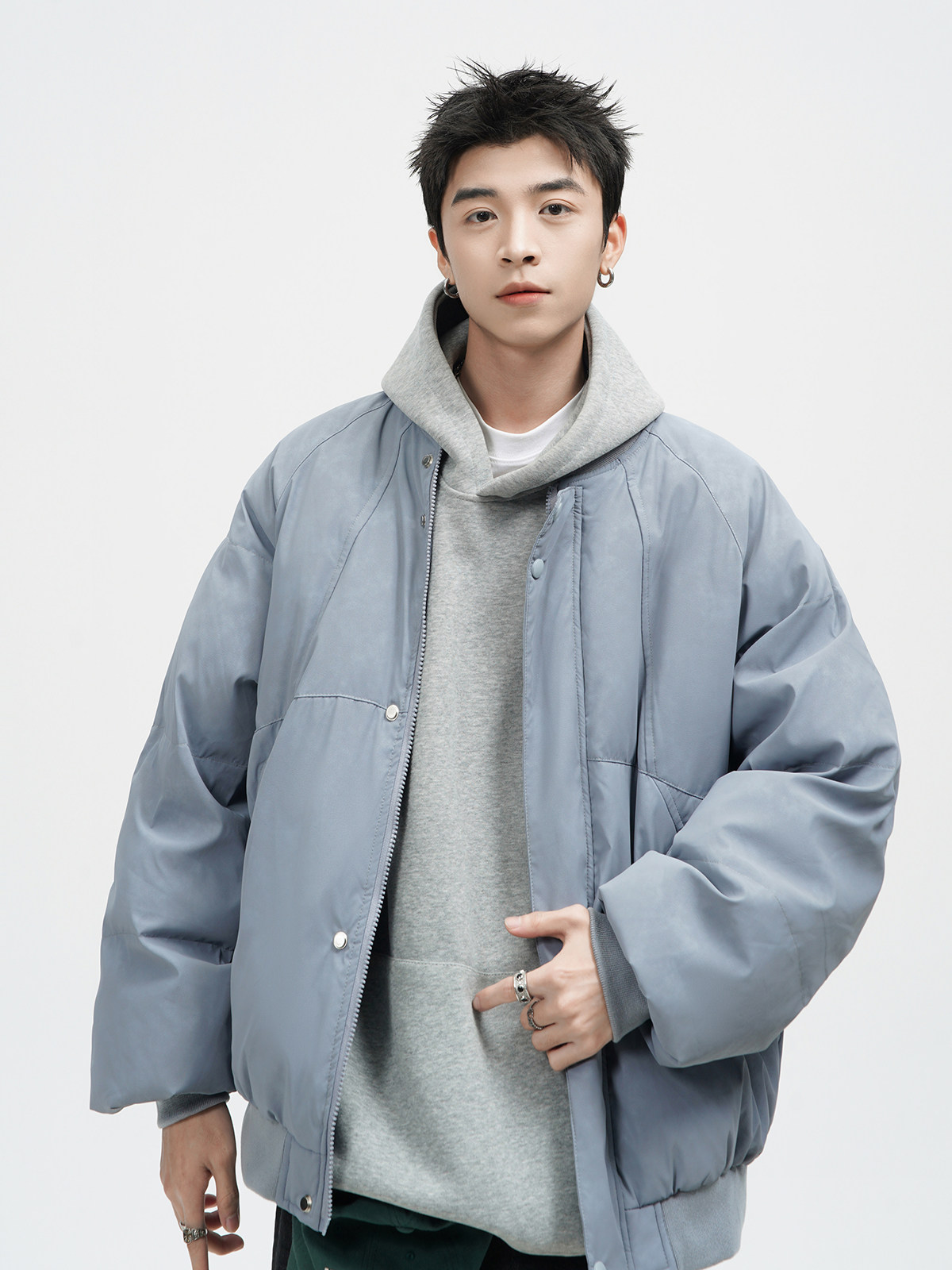 Men's Winter American High Street Baseball Jacket with White Duck down Filling, Trendy Brand Couple Style Versatile Jacket