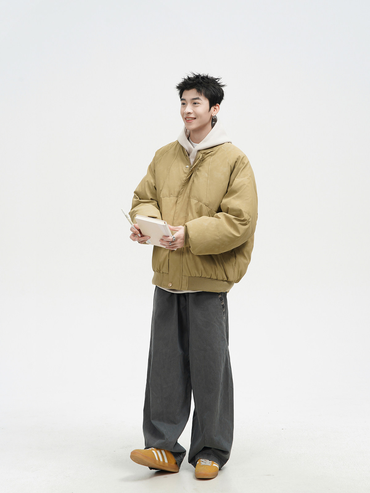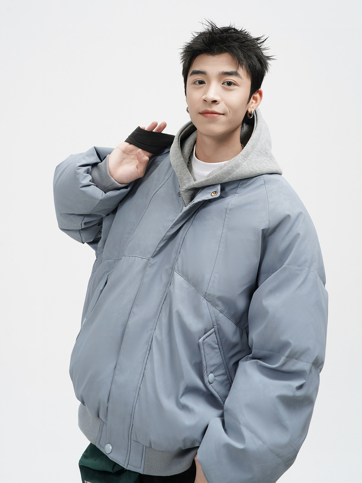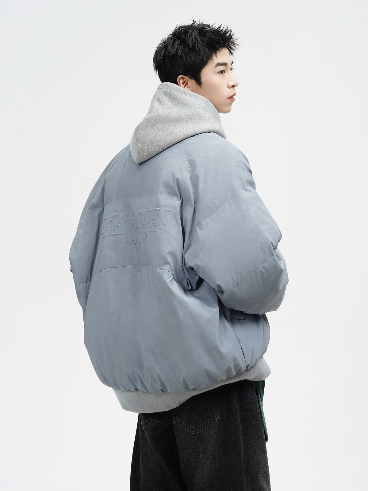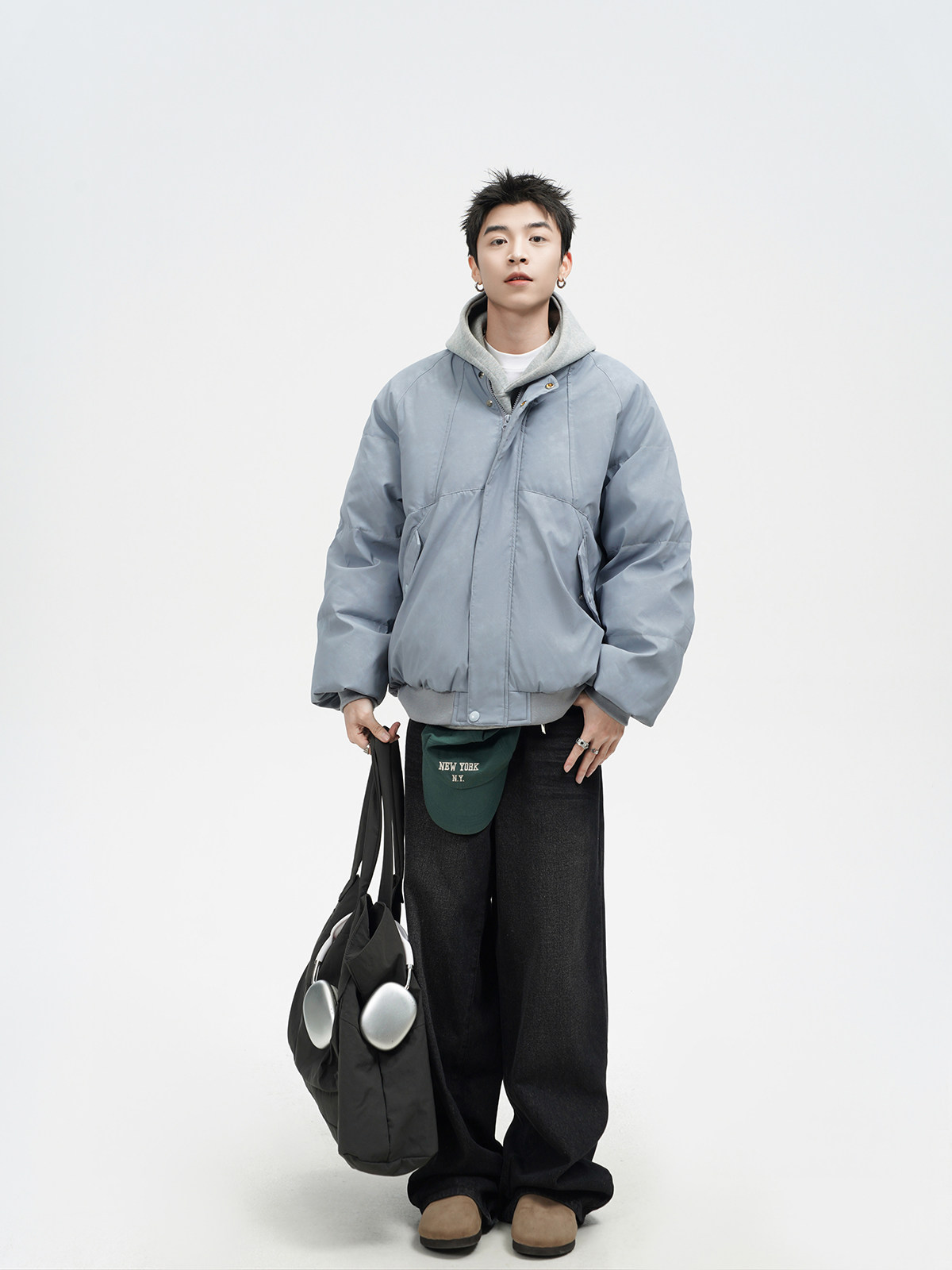Men's Winter American High Street Baseball Jacket with White Duck down Filling, Trendy Brand Couple Style Versatile Jacket