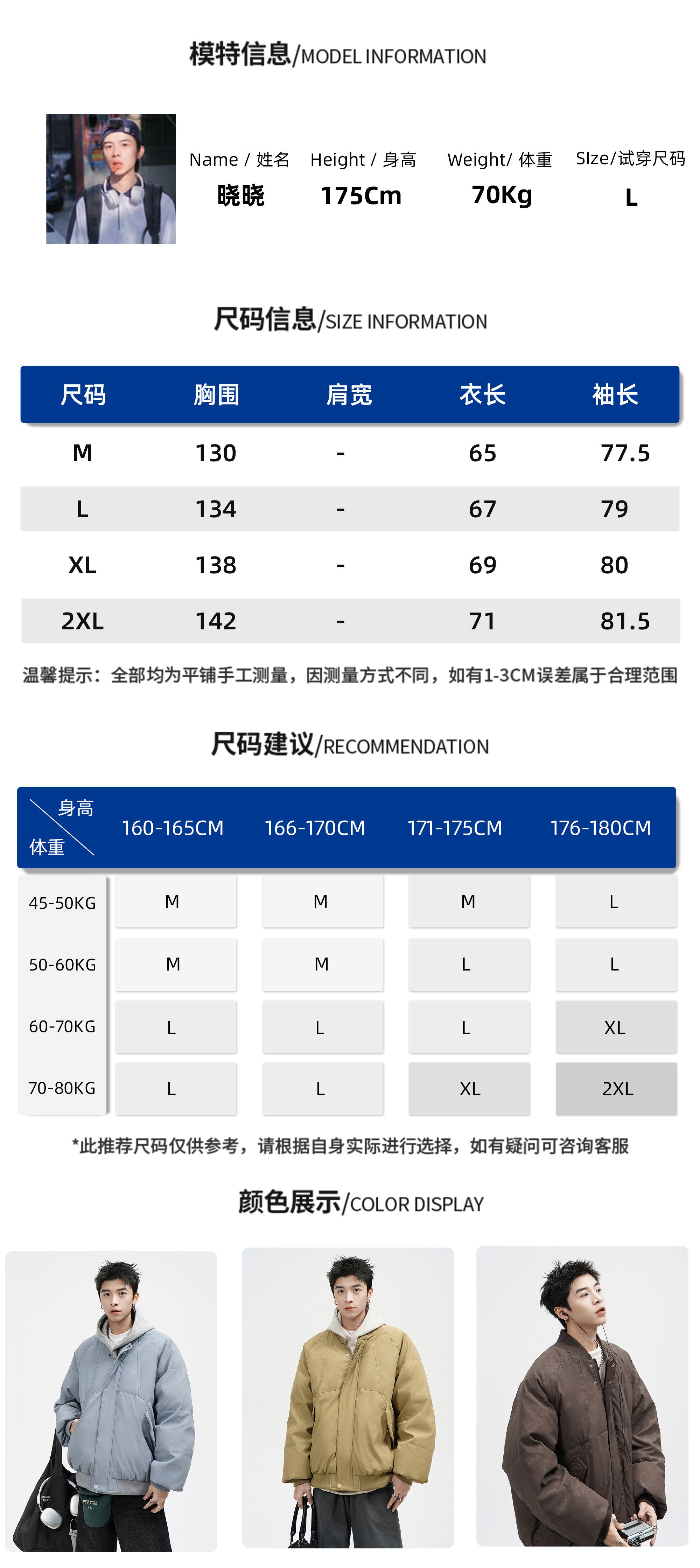 China (cm) 165 / 88-90 170 / 96-98 175 / 108-110 180 / 118-122 185 / 126-130