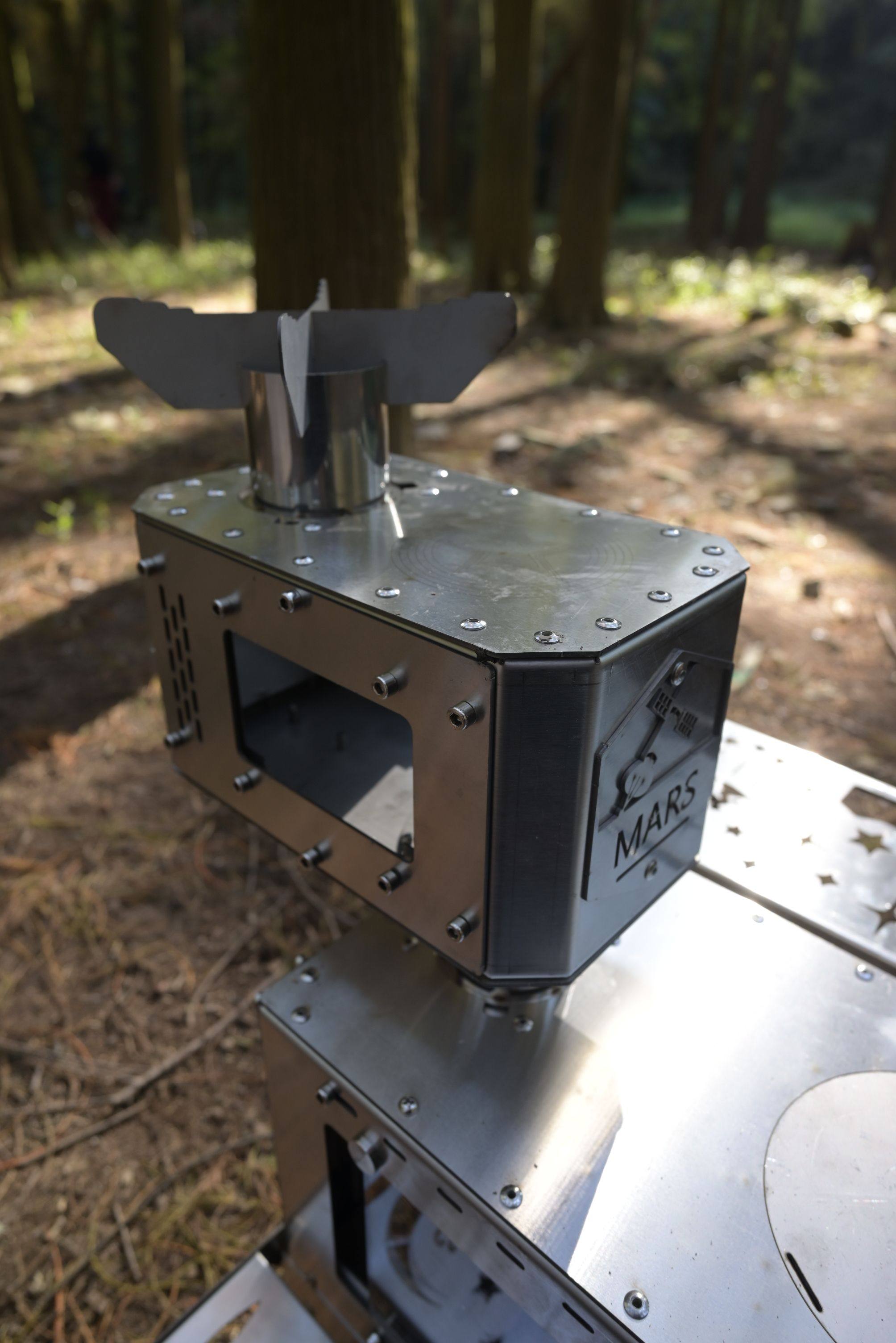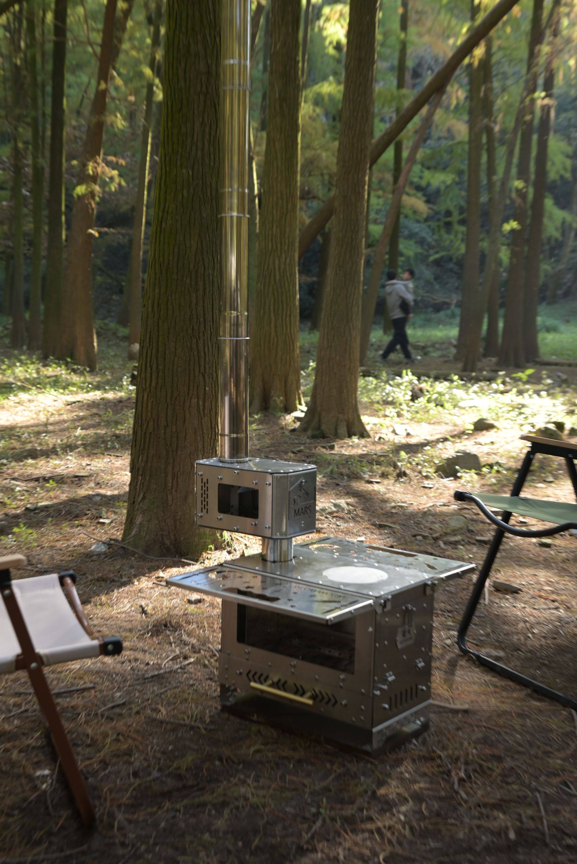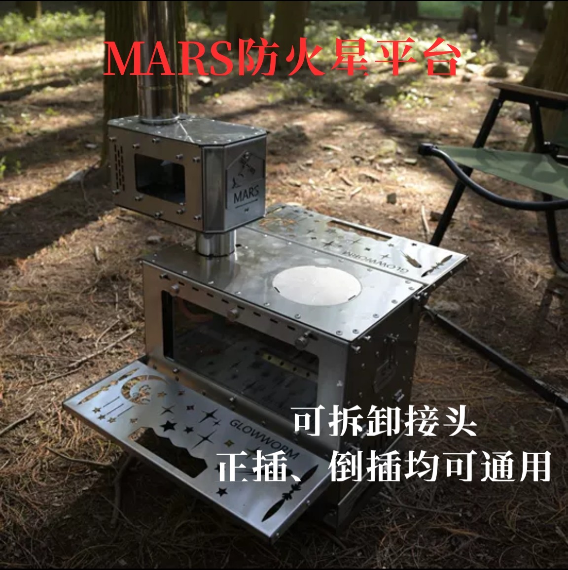 Mars Project Firewood Stove Cube Fireproof 2-Sided Fire Observation Secondary Air Intake Heating Chimney Adapter Expansion Platform