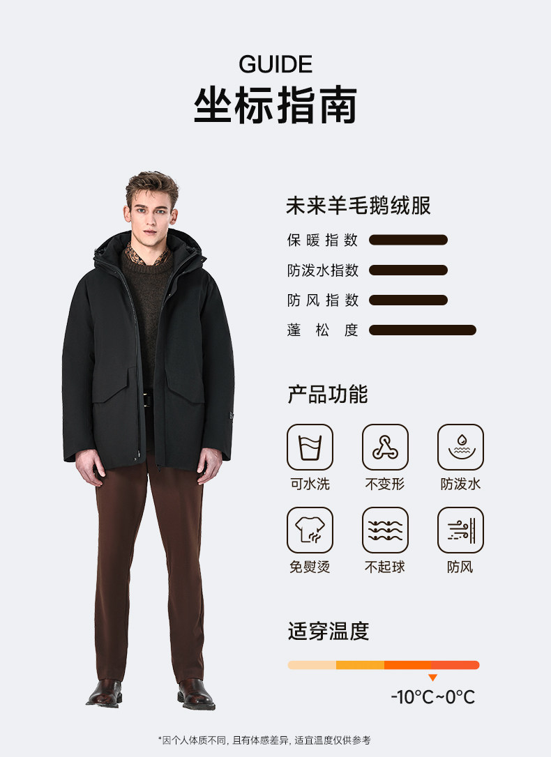 [Пуховик Gaofan Black Gold]Мужской укороченный зимний пуховик Future Wool 4.0 для активного отдыха, утепленный.