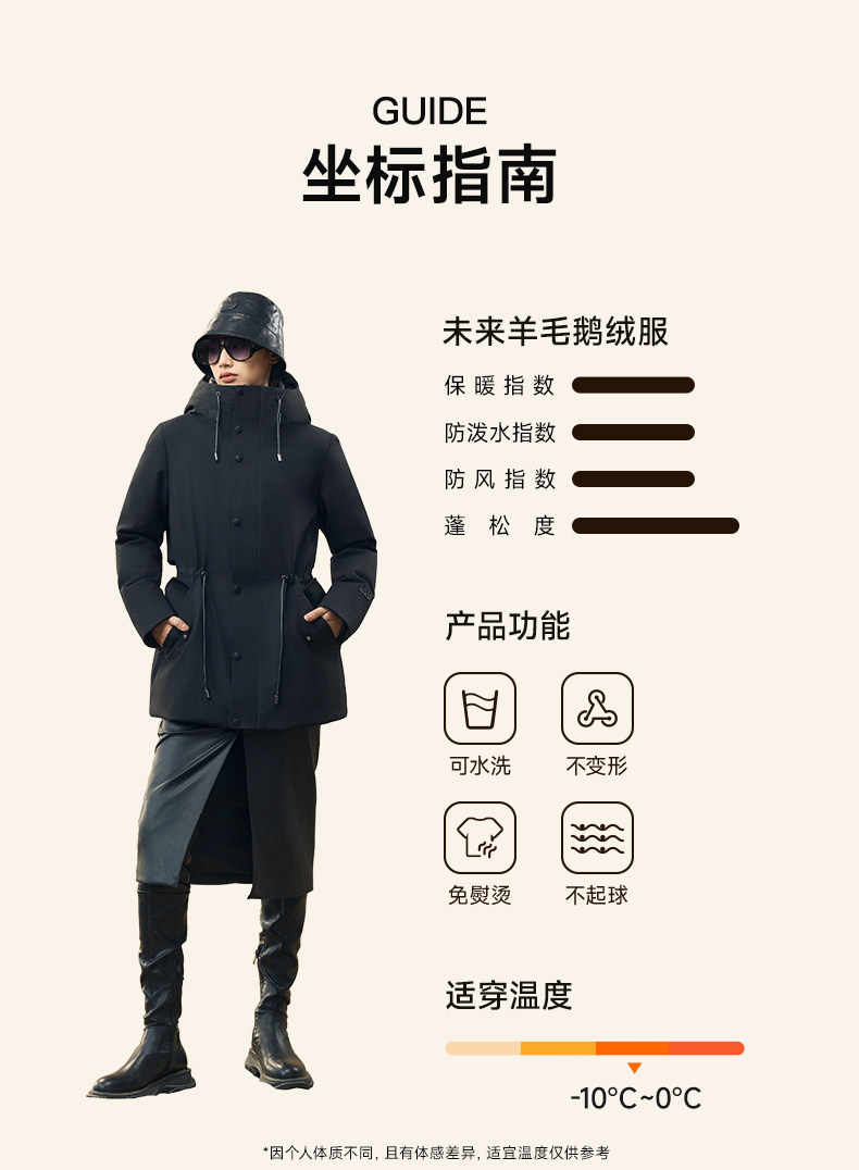 【杨幂同款】高梵黑金鹅绒服未来羊毛4.0五分户外羽绒服女冬外套