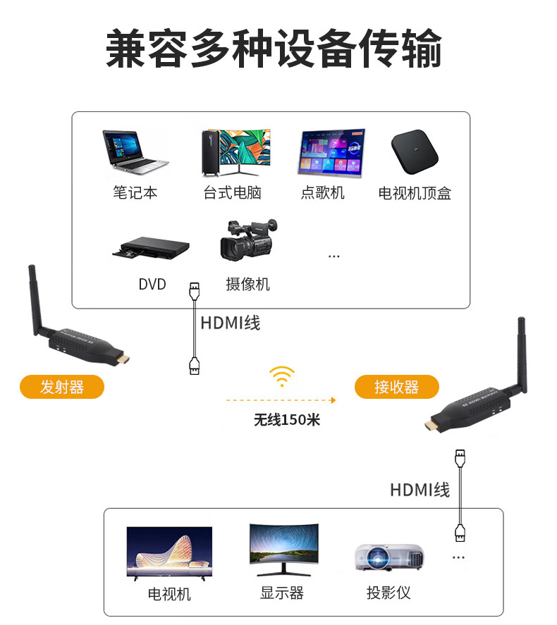 Émetteur HDMI sans fil recevant un projecteur d'écran avec dispositif d'écran conversion point à point connexion à un ordinateur affichage de projection TV