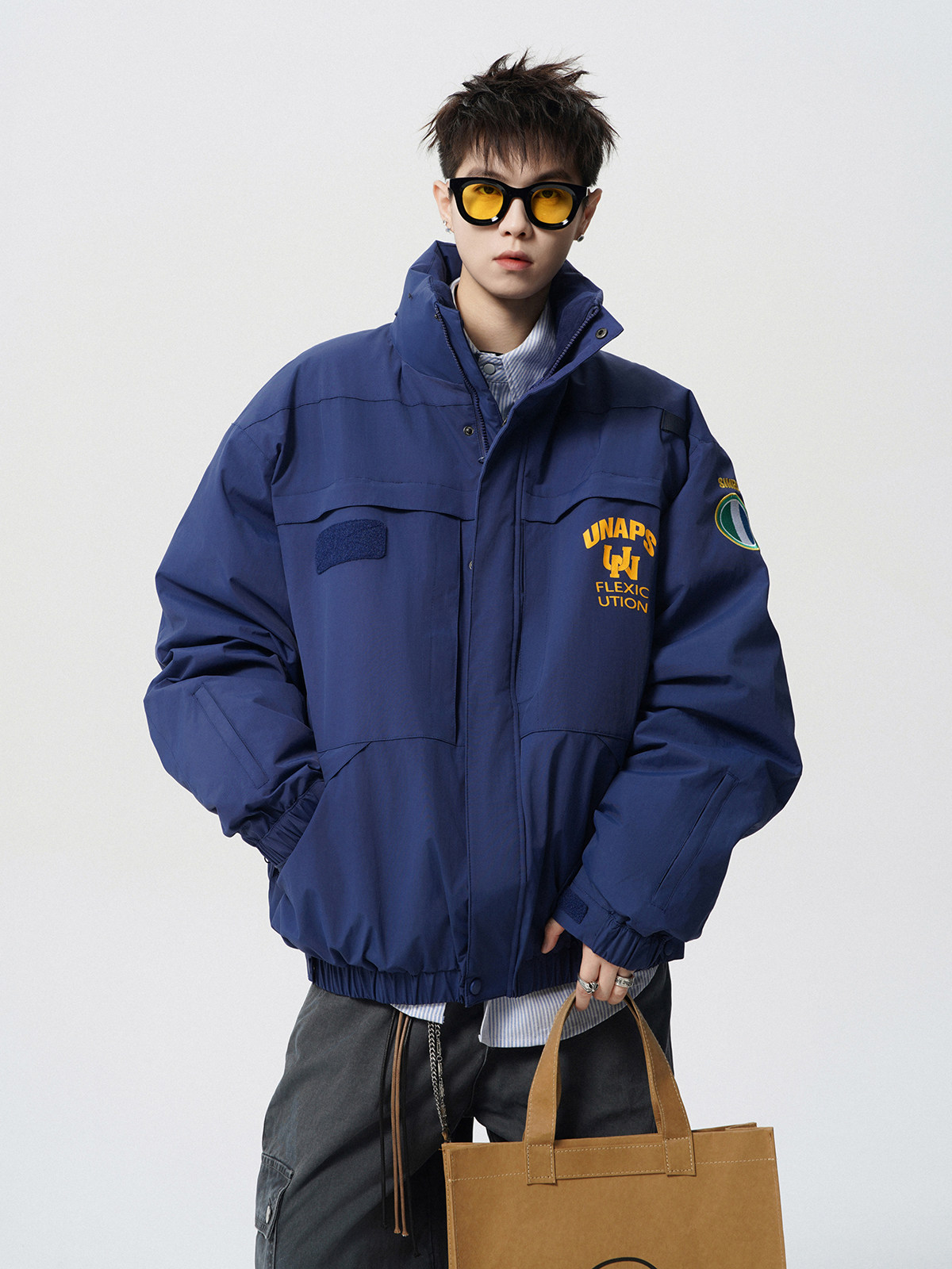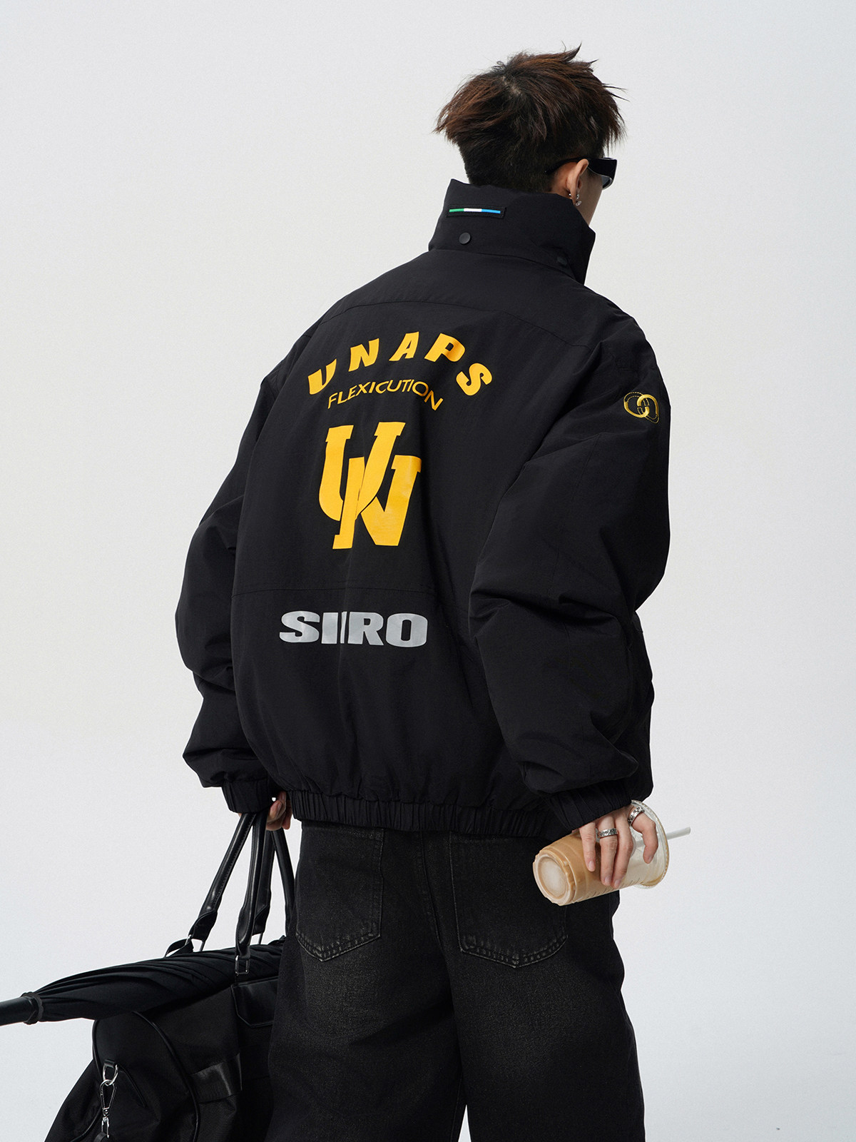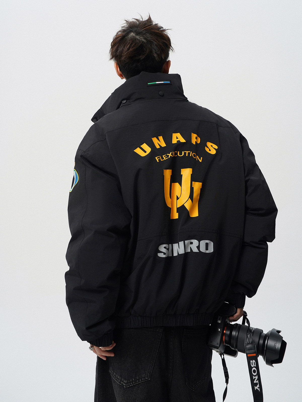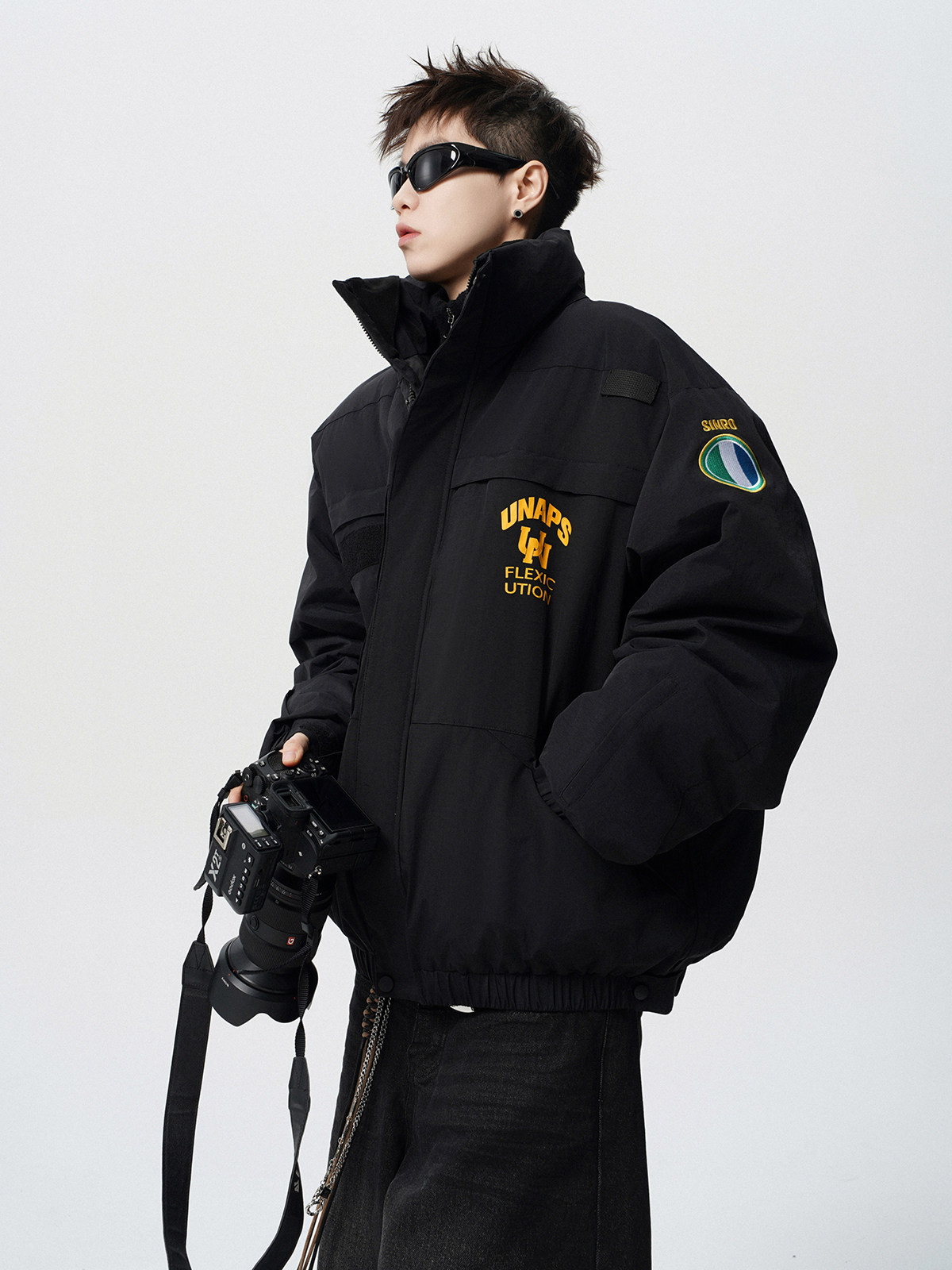 美式高街立领羽绒服男冬季潮牌印花情侣面包服高级感廓形飞行夹克