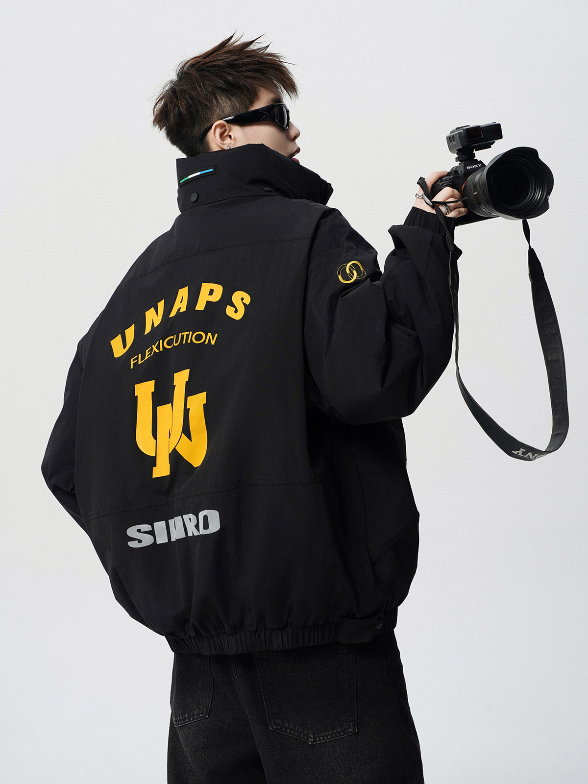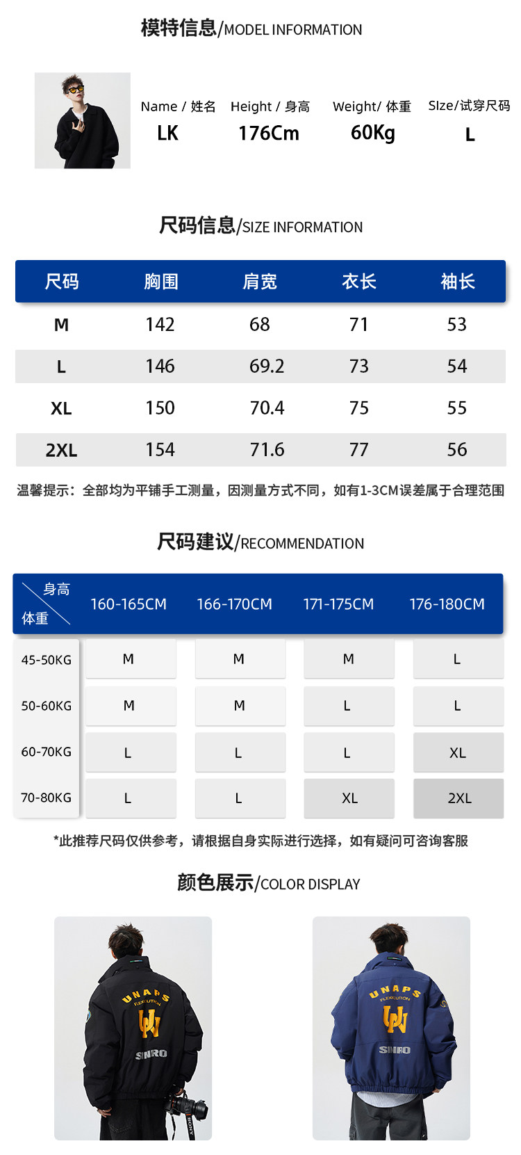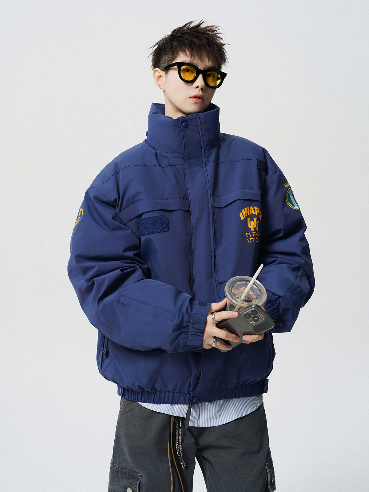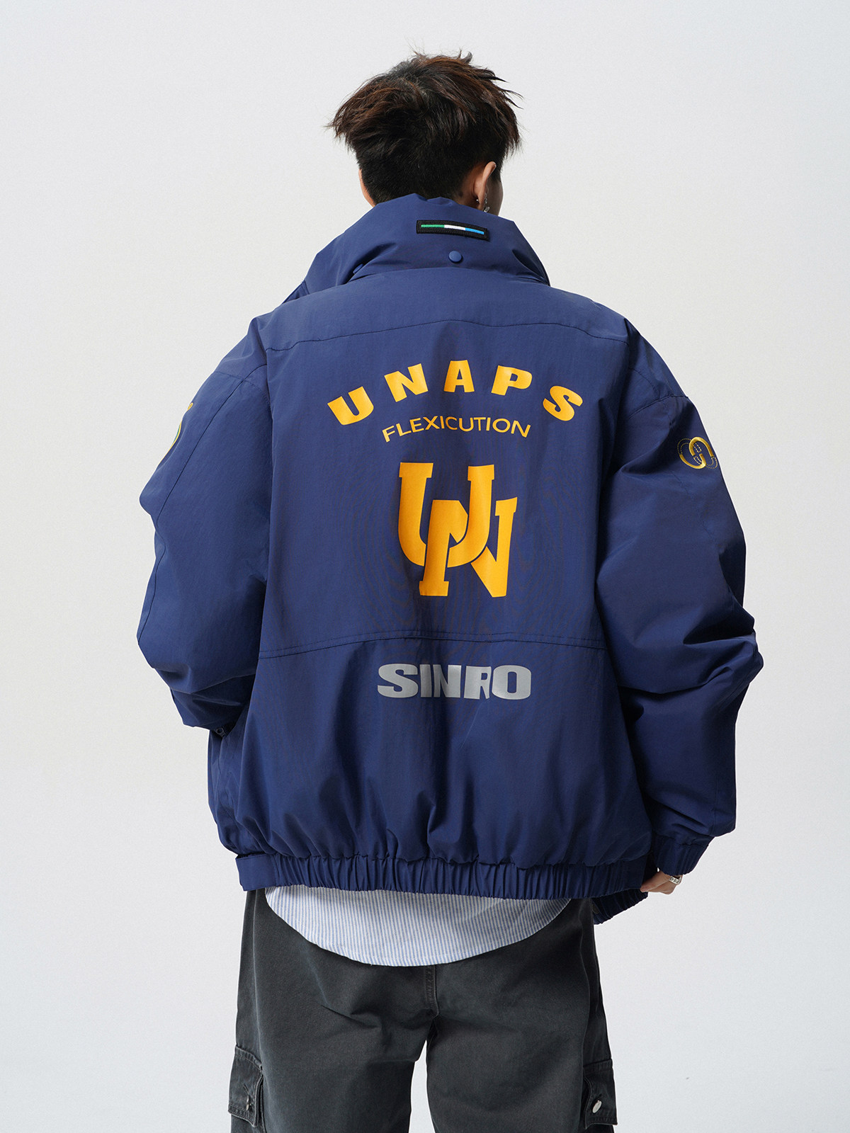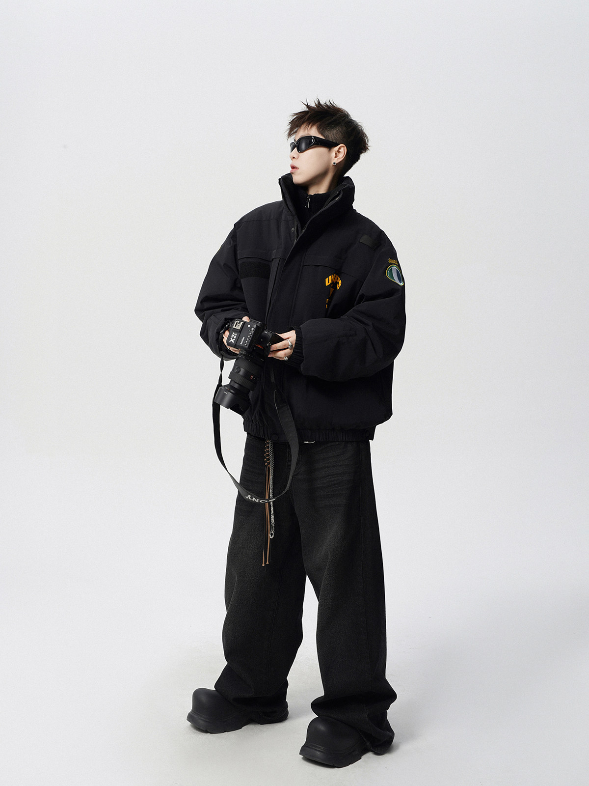 美式高街立领羽绒服男冬季潮牌印花情侣面包服高级感廓形飞行夹克