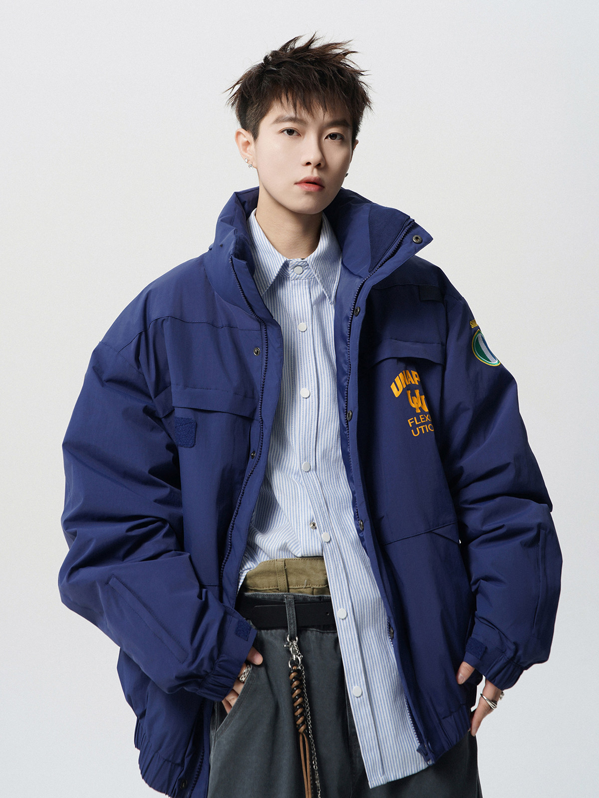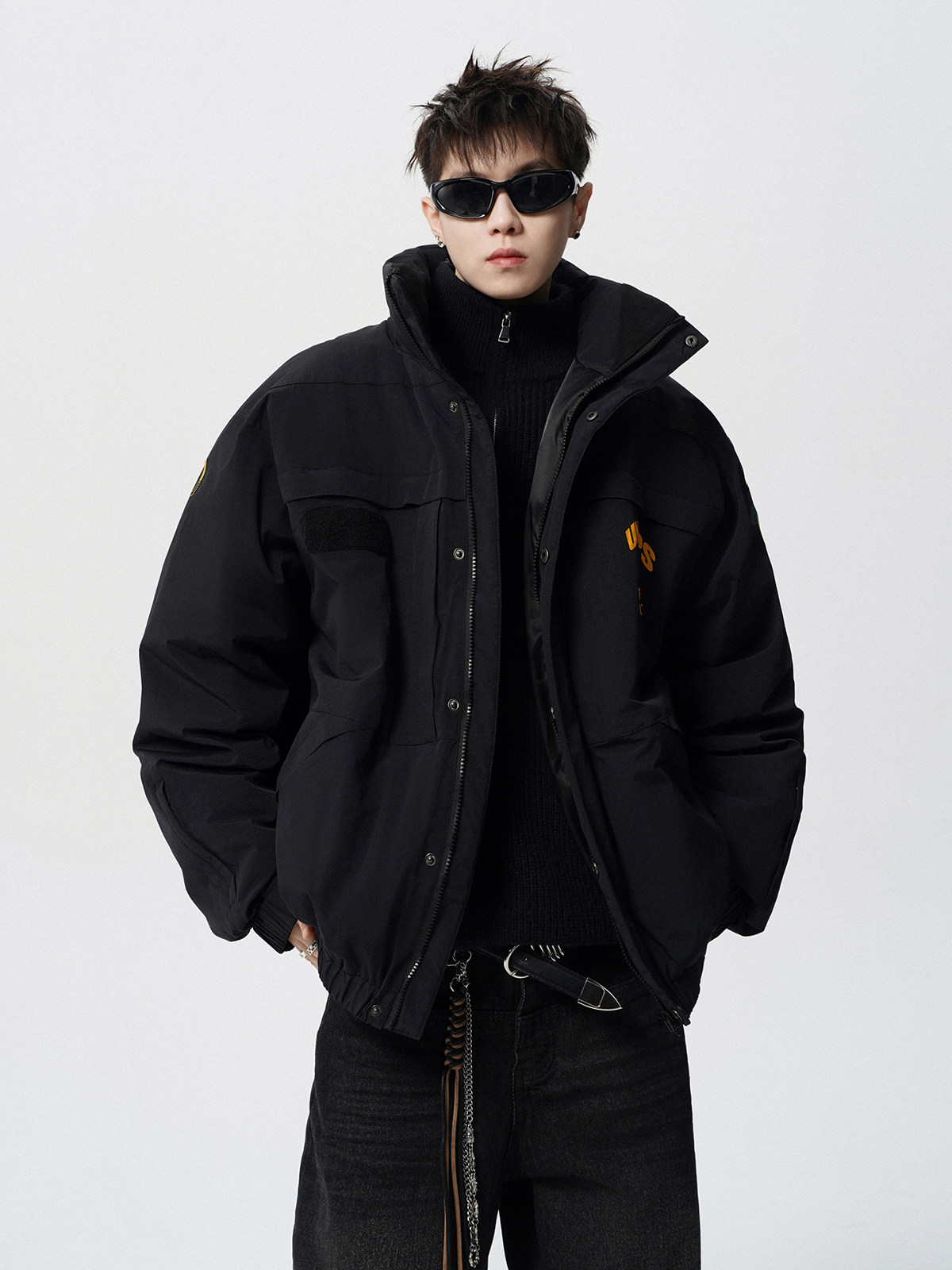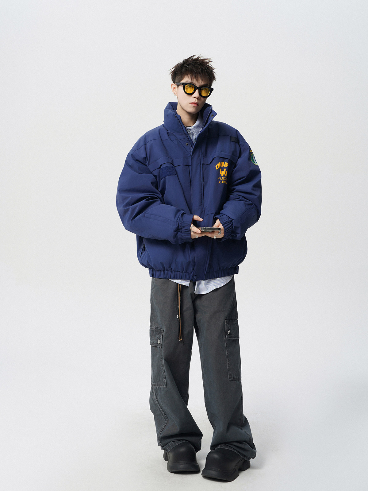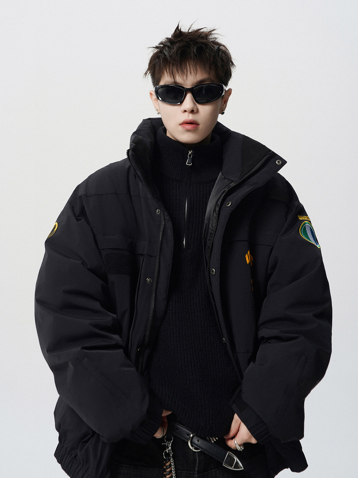 美式高街立领羽绒服男冬季潮牌印花情侣面包服高级感廓形飞行夹克