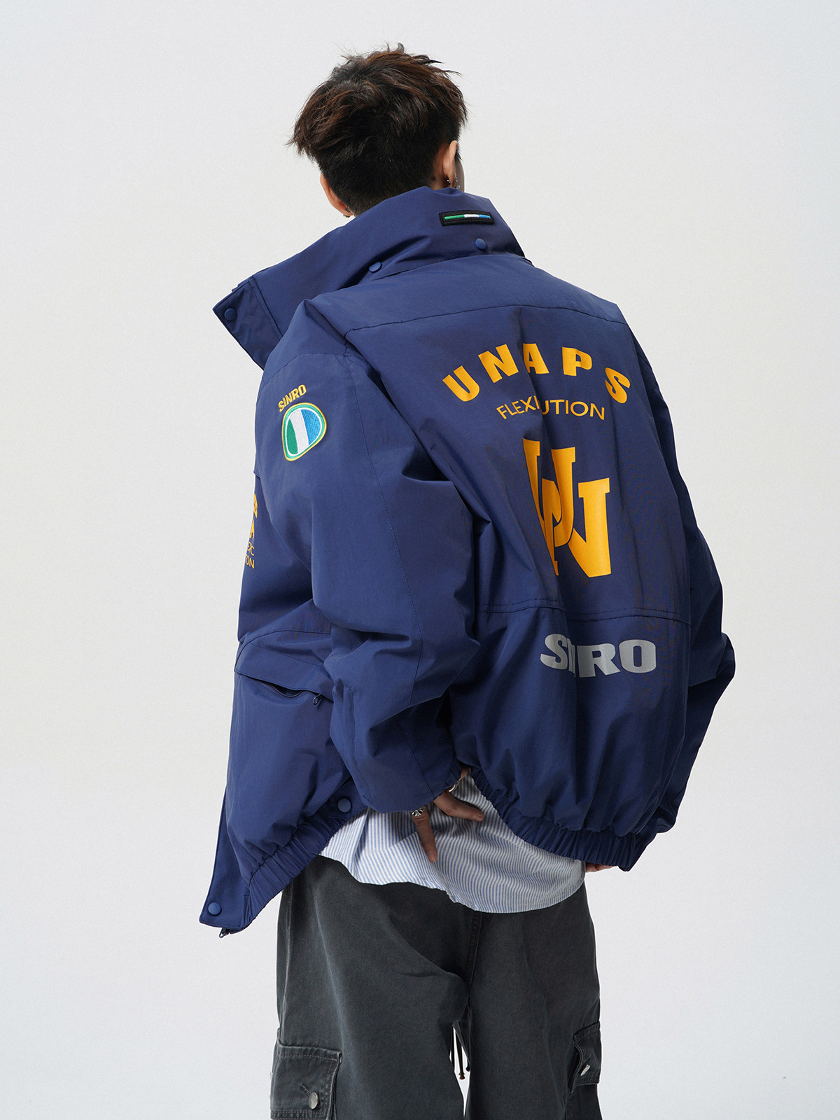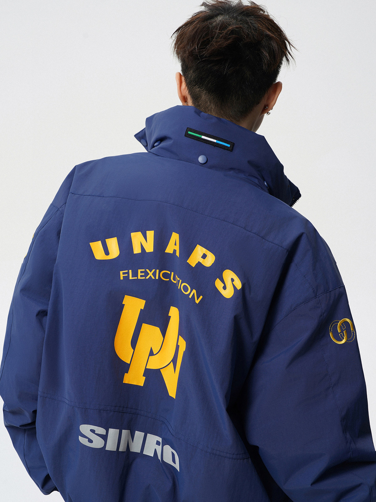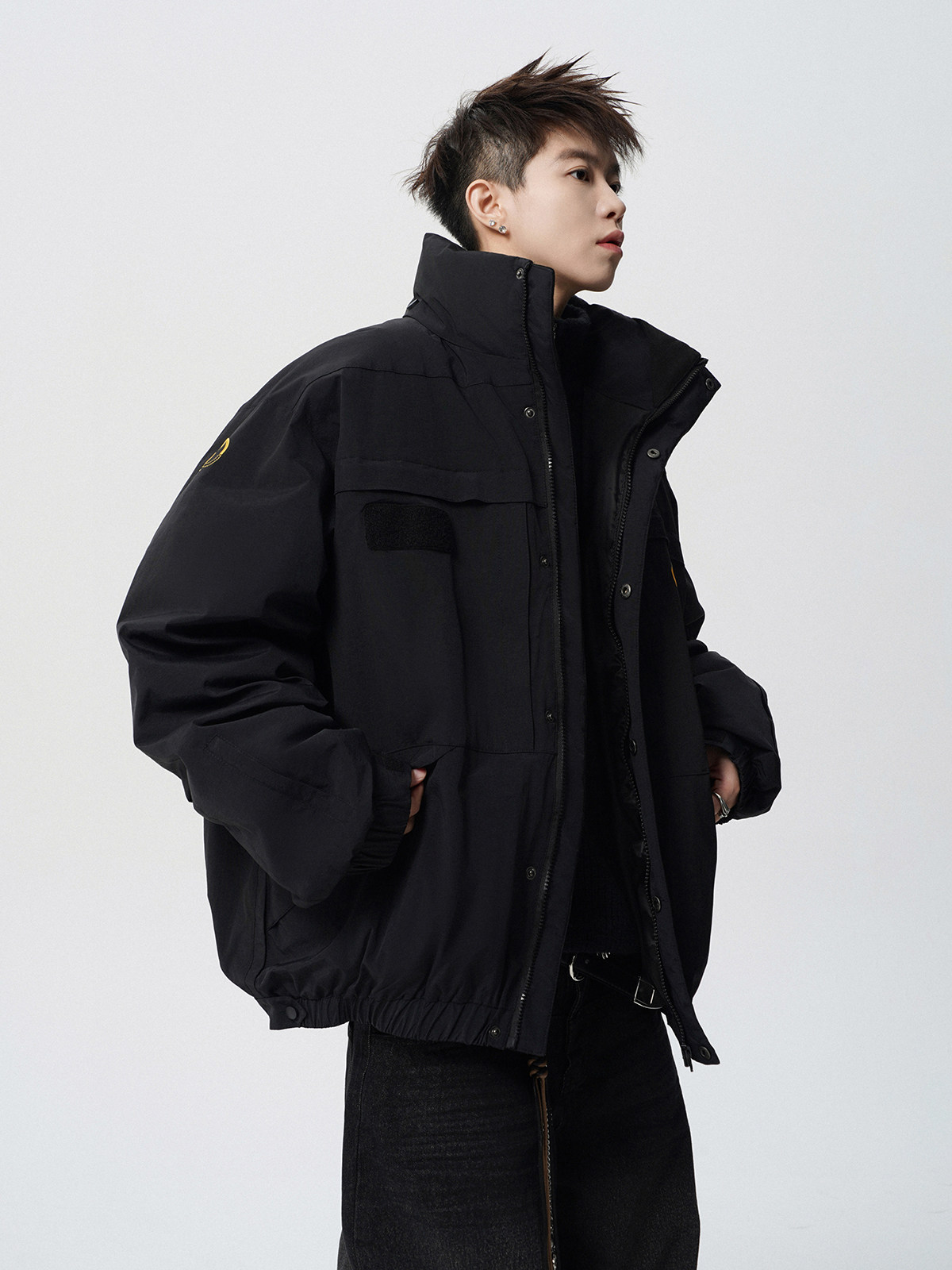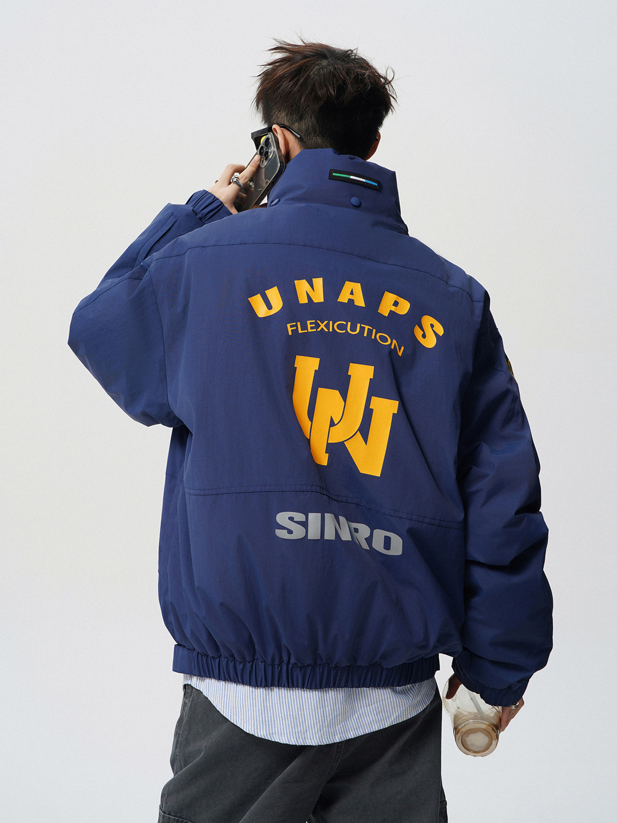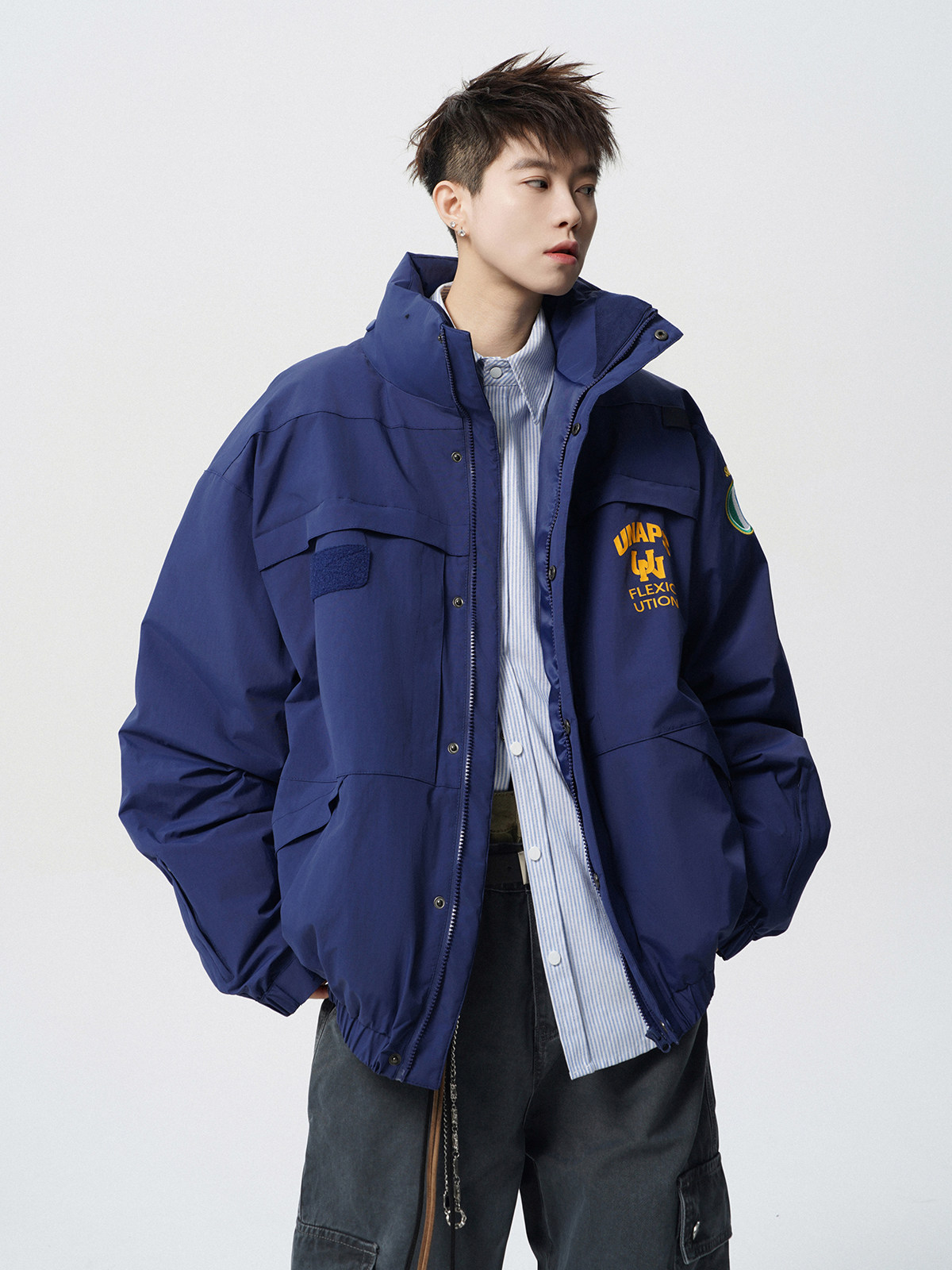 美式高街立领羽绒服男冬季潮牌印花情侣面包服高级感廓形飞行夹克