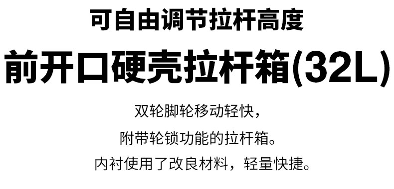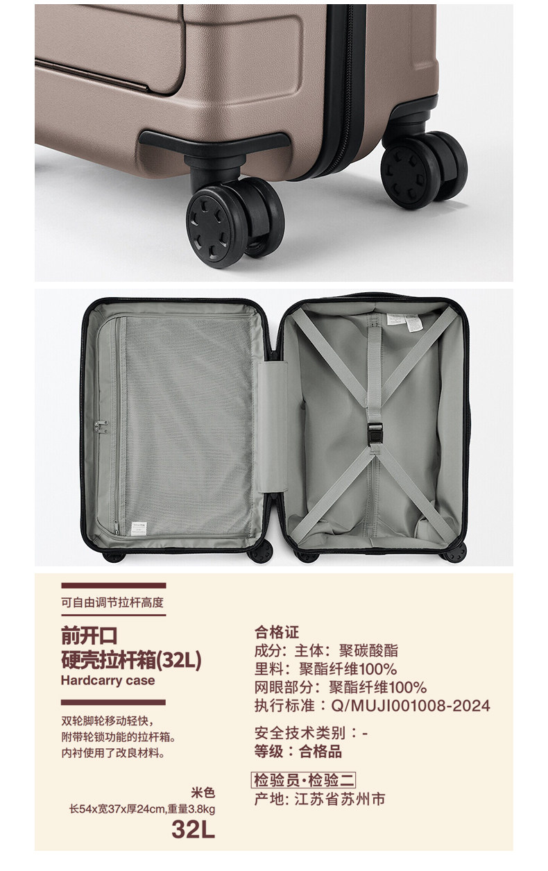 Maleta MUJI con ruedas ajustables en altura y apertura frontal, maleta con ruedas rígidas (32L)