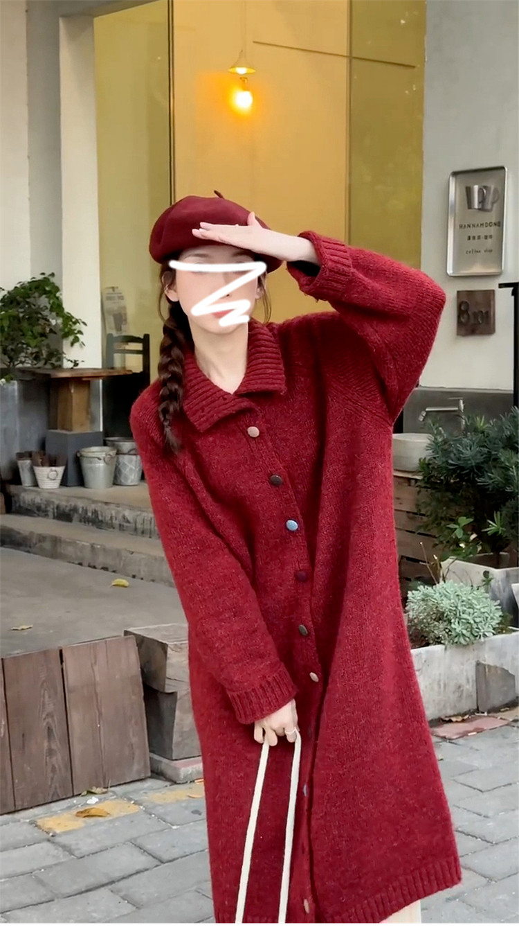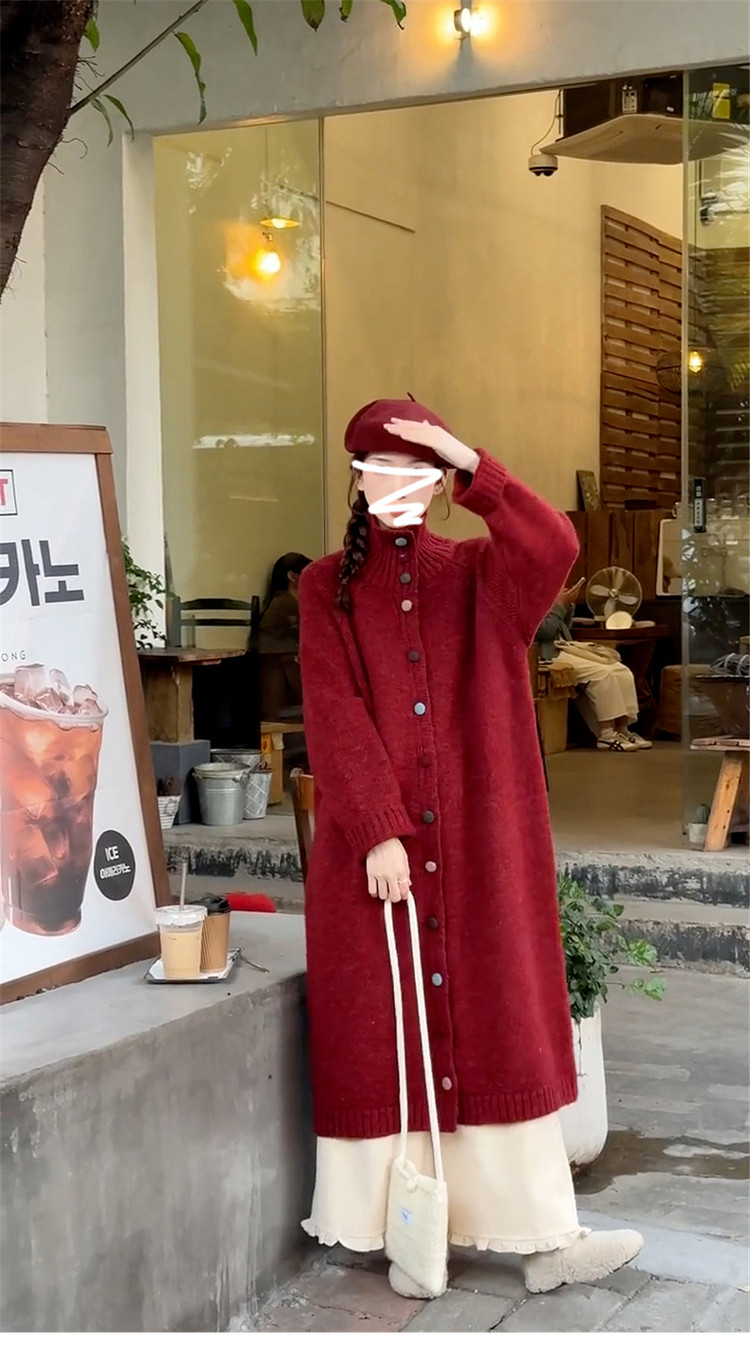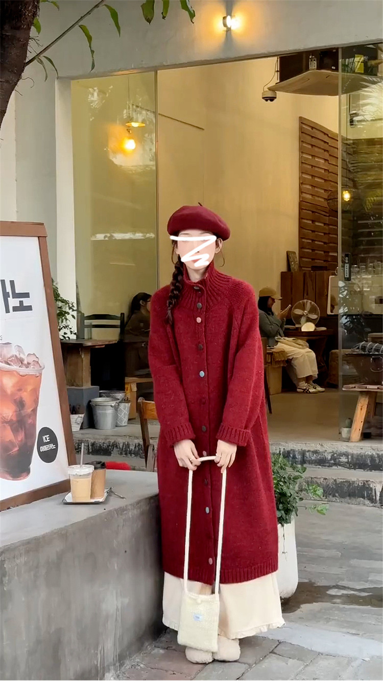 高级感复古红色高领毛衣外套女秋冬季2026新款加厚中长款针织开衫