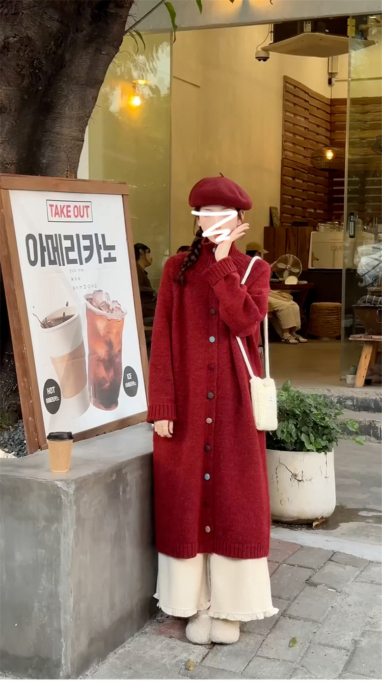 颜色分类 【红色】高级感慵懒风红色高领毛衣/本命年/跨年穿搭/新年战袍/配大衣内搭/叠穿上衣/单排扣毛衣/中长款上衣女遮屁股洋气】,【紫色】高级感慵懒风紫色高领毛衣/大衣内搭/叠穿上衣/单排扣毛衣/中长款上衣女遮屁股洋气/今年流行漂亮毛衣/针织开衫毛衣外套】