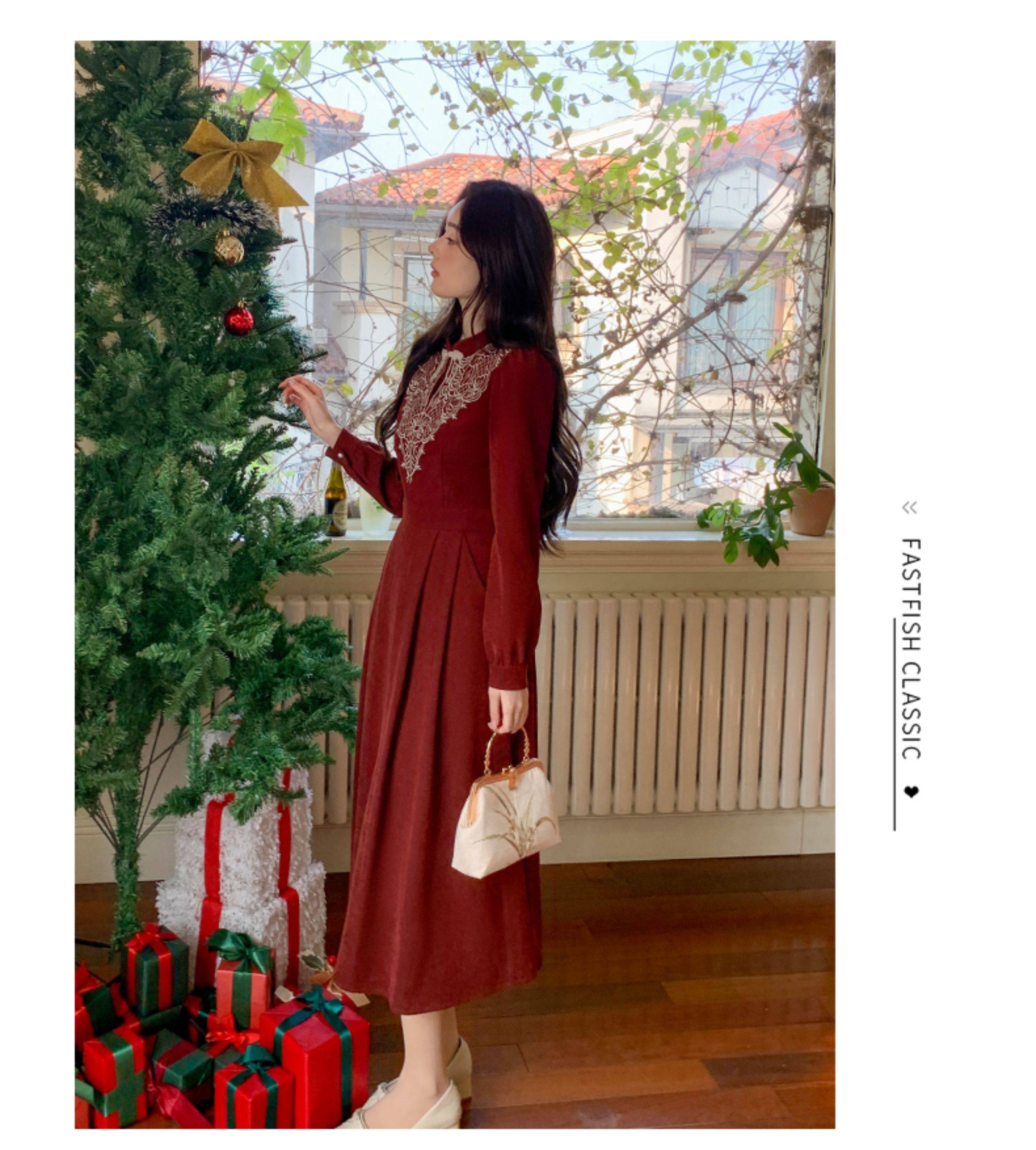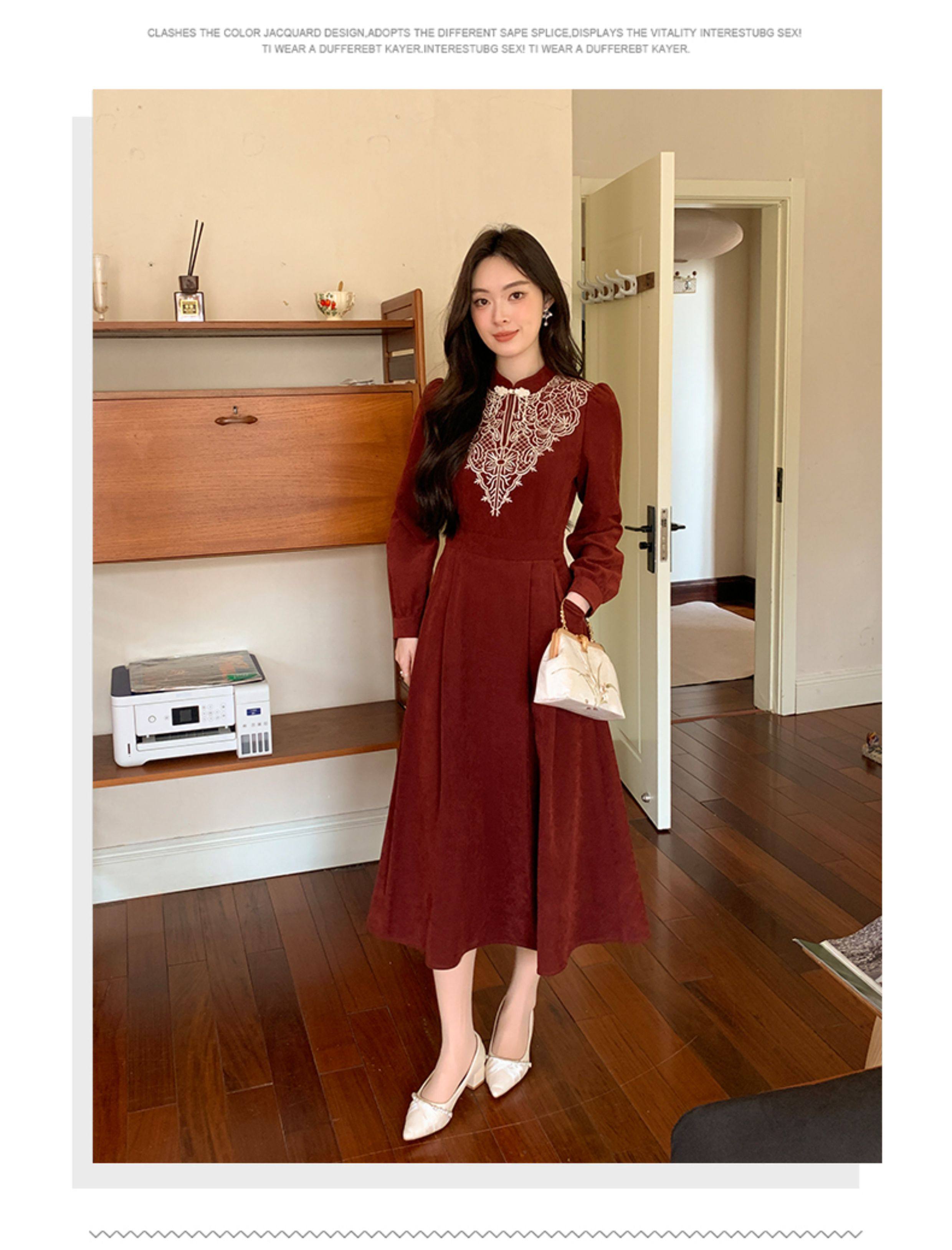 Новое зимнее платье GERTCOREL2025, оригинальное, износостойкое, приталенное, длинное, бархатное, кирпично-красного цвета, для женщин.