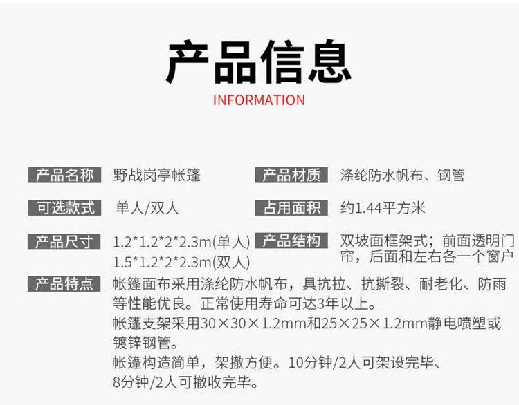 Outdoor Steel Painted Single-Person Guard Booth Tent, Frame Tent, 1.35m Double-Person Duty Post Complete Set