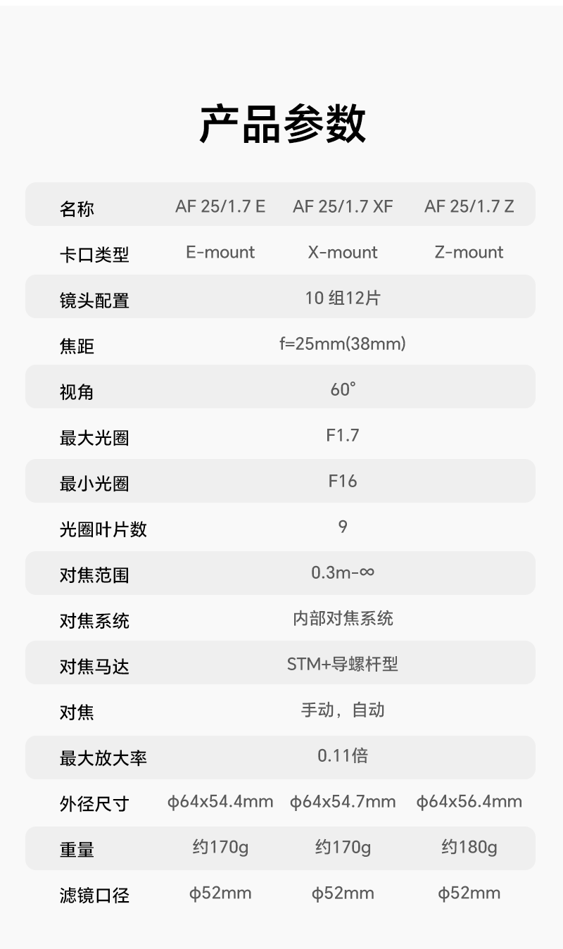 Номер товара AF 25mm F1.7 Air АФ 25mm F1.7 Air
