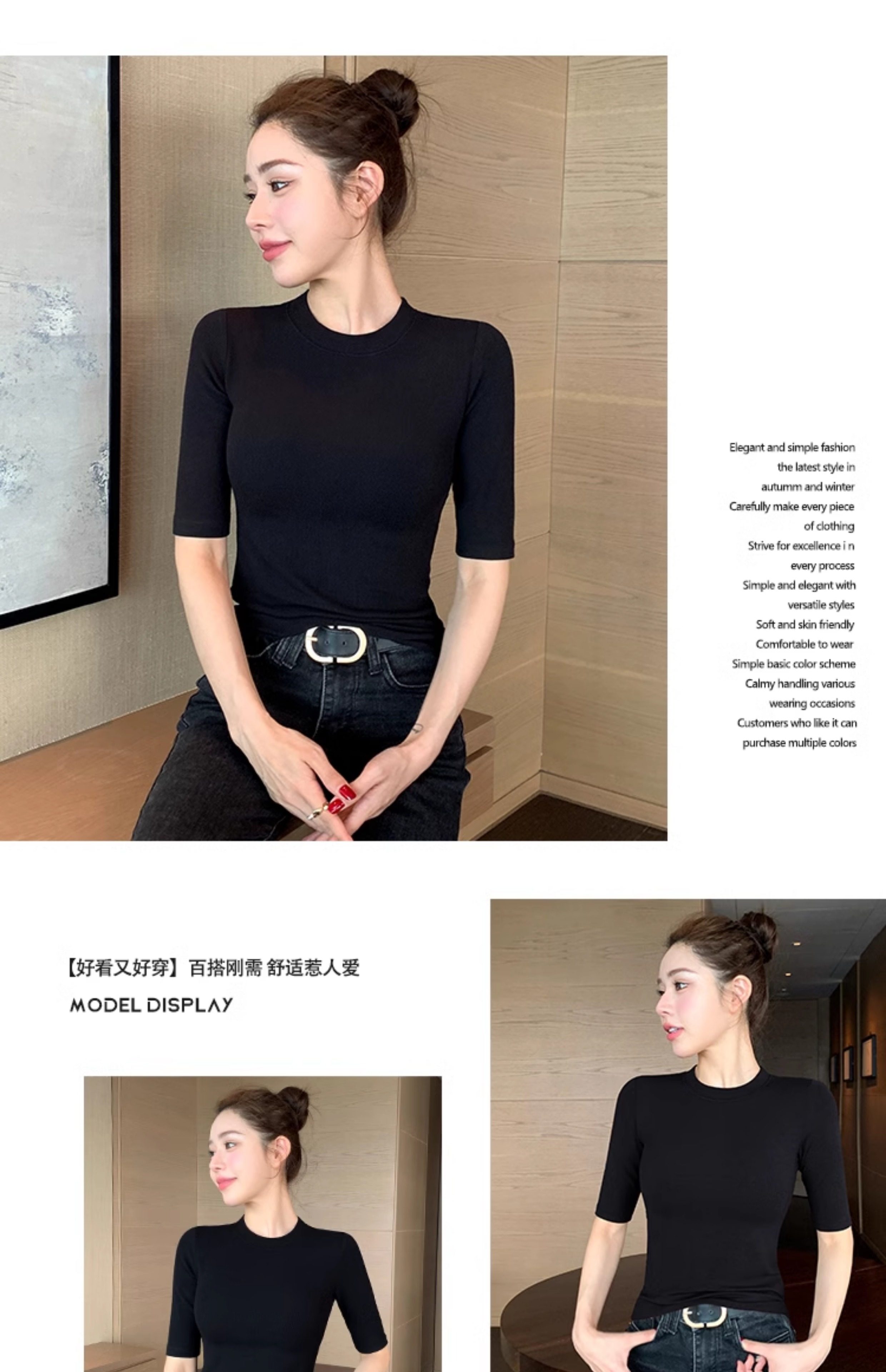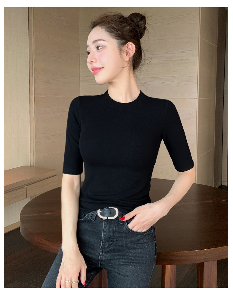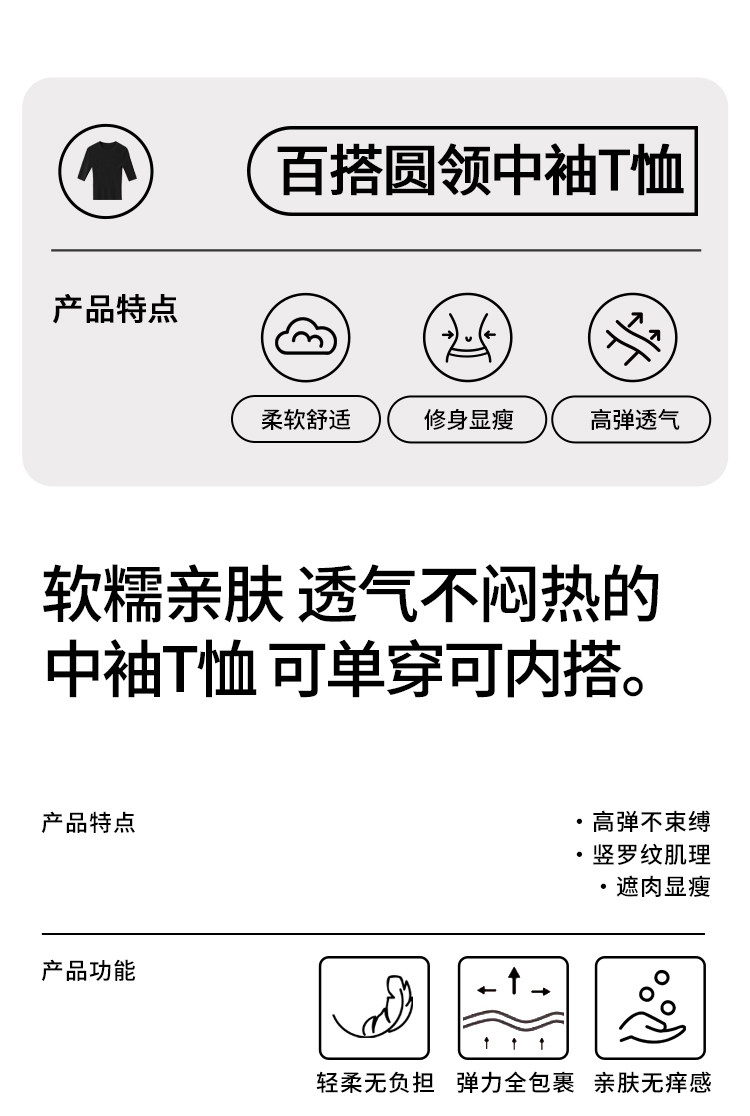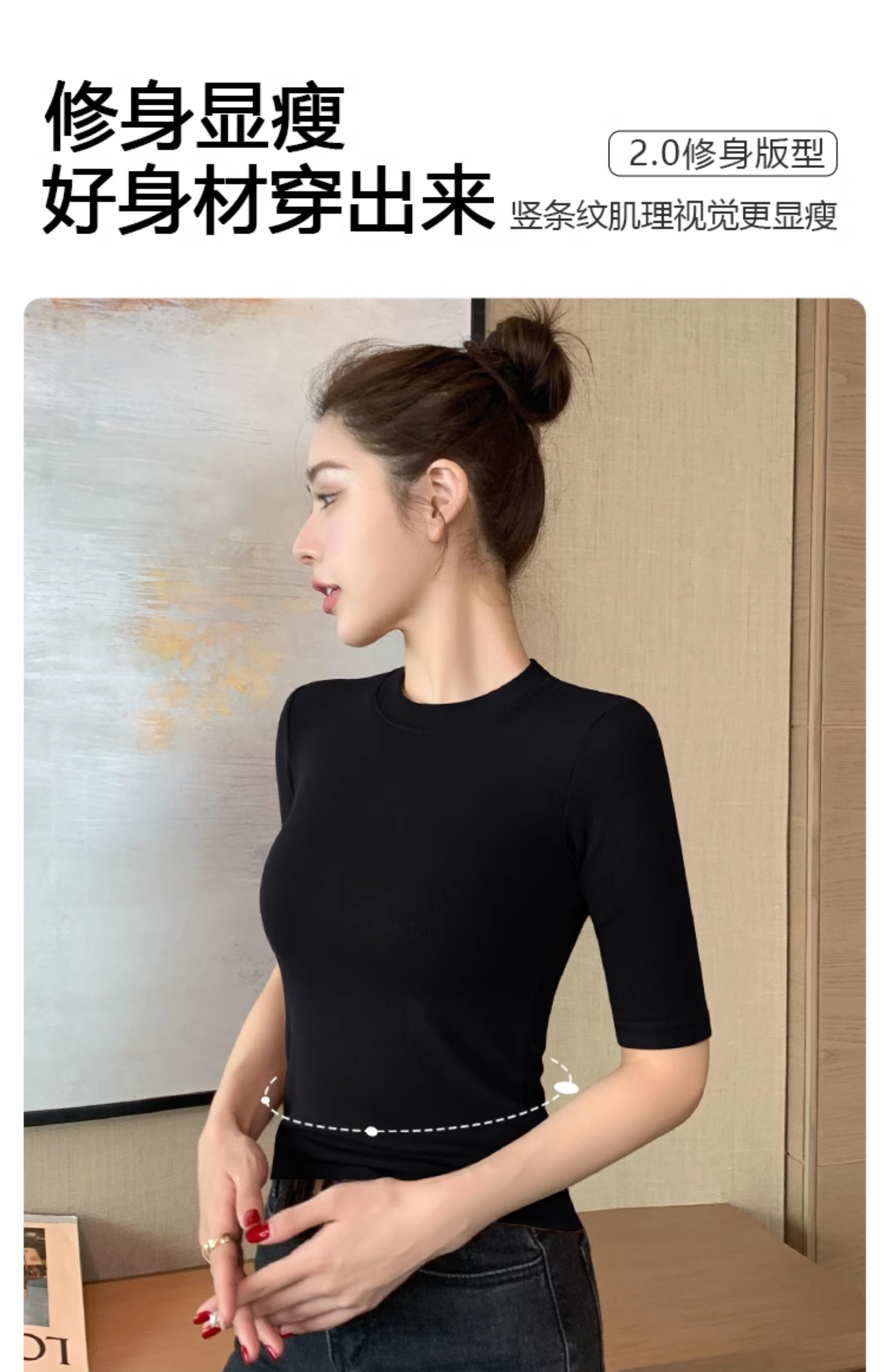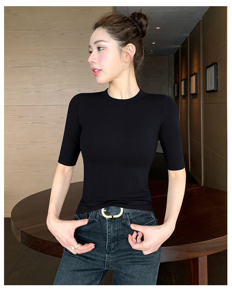 Black Mid-Sleeve Base Shirt for Women, 2026 Spring and Autumn New Style, Round Neck T-Shirt, Inner Layer with a High-End Feel, Five-Quarter Sleeve Tight-Fitting Top