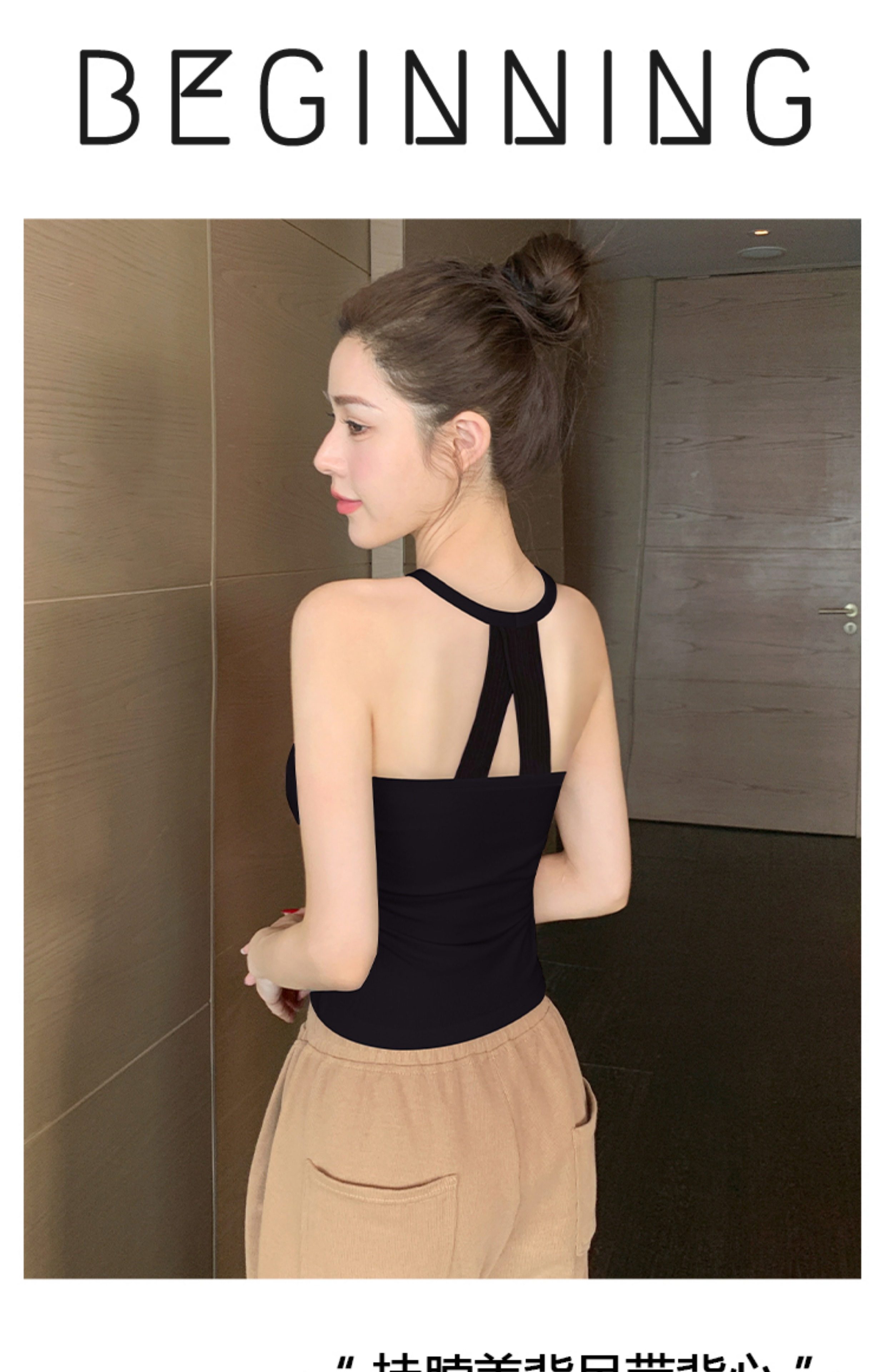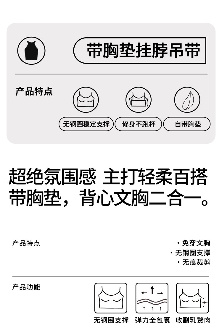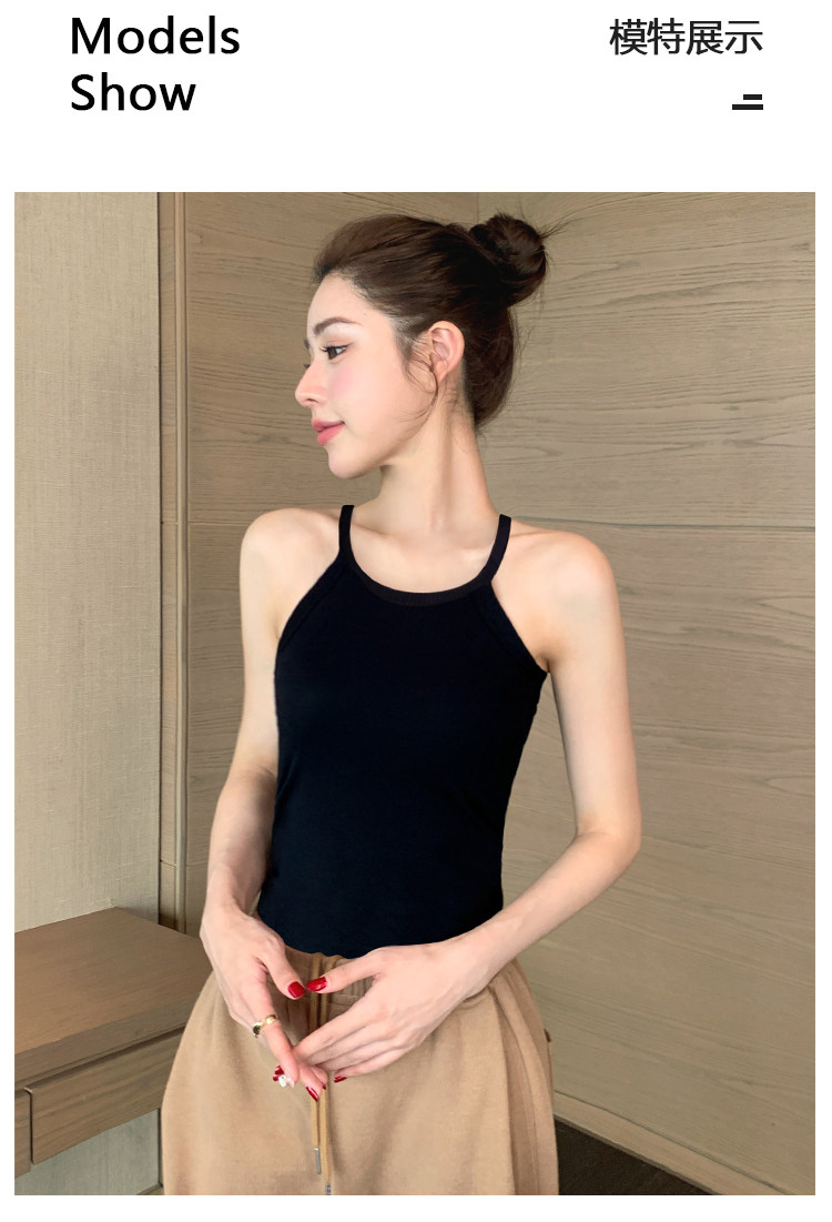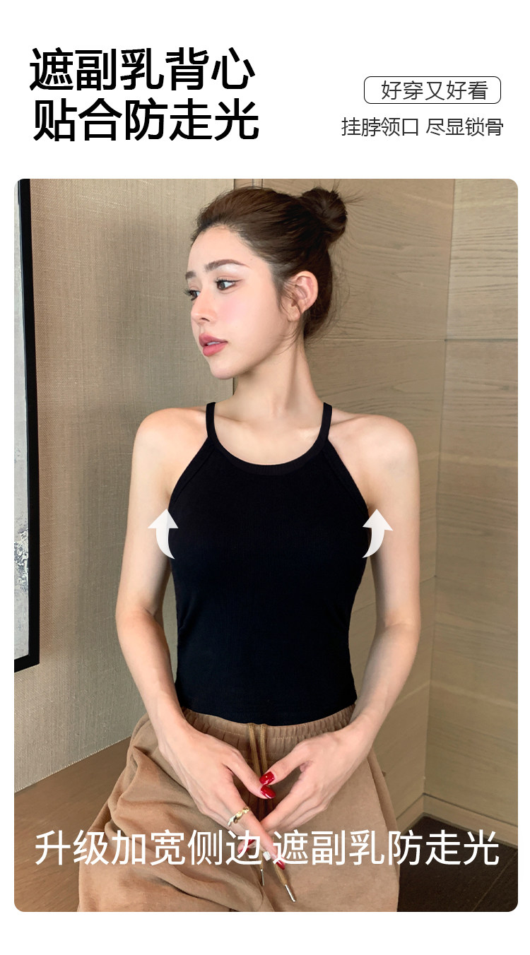黑色吊带带胸垫背心女内搭2026新款夏季外穿美背一体无袖挂脖上衣