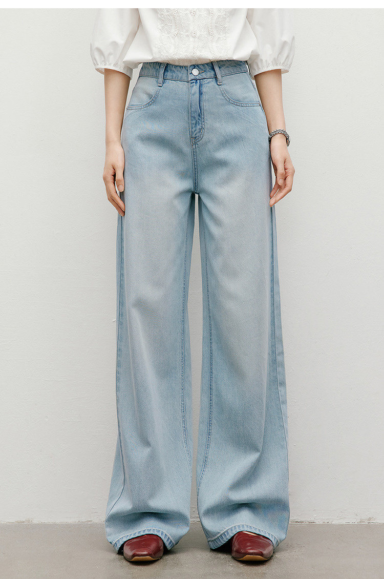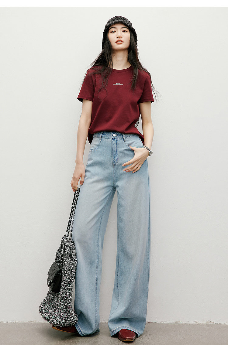 Красные свободные драпированные джинсы-палаццо из лиоцелла, лето 2025, новинка, женские, со средней посадкой, утягивающие, широкие штанины