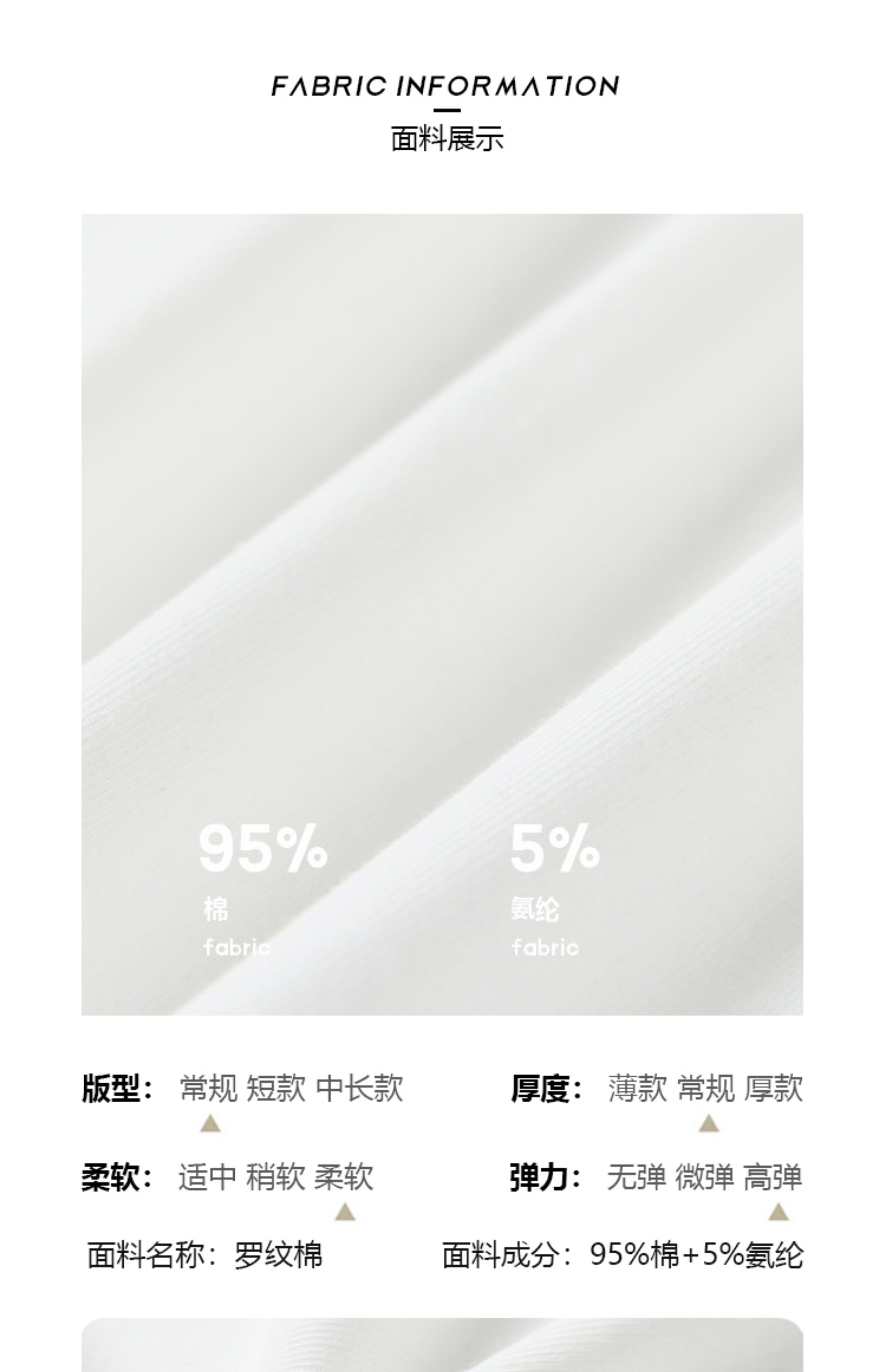 Material Composition 95% Cotton, 5% Polyurethane Elastic Fiber (Spandex)
