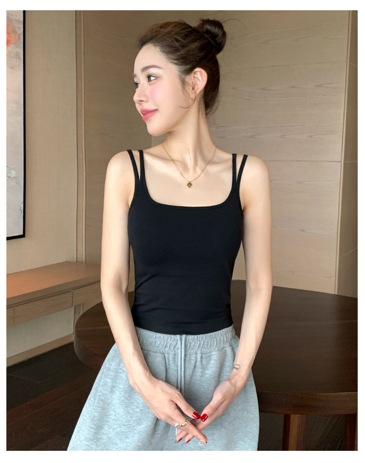Black Camisole for Women, 2026 New Style, Pure Cotton, Square Neck, Beautiful Back, Sleeveless Top for Summer Wear
