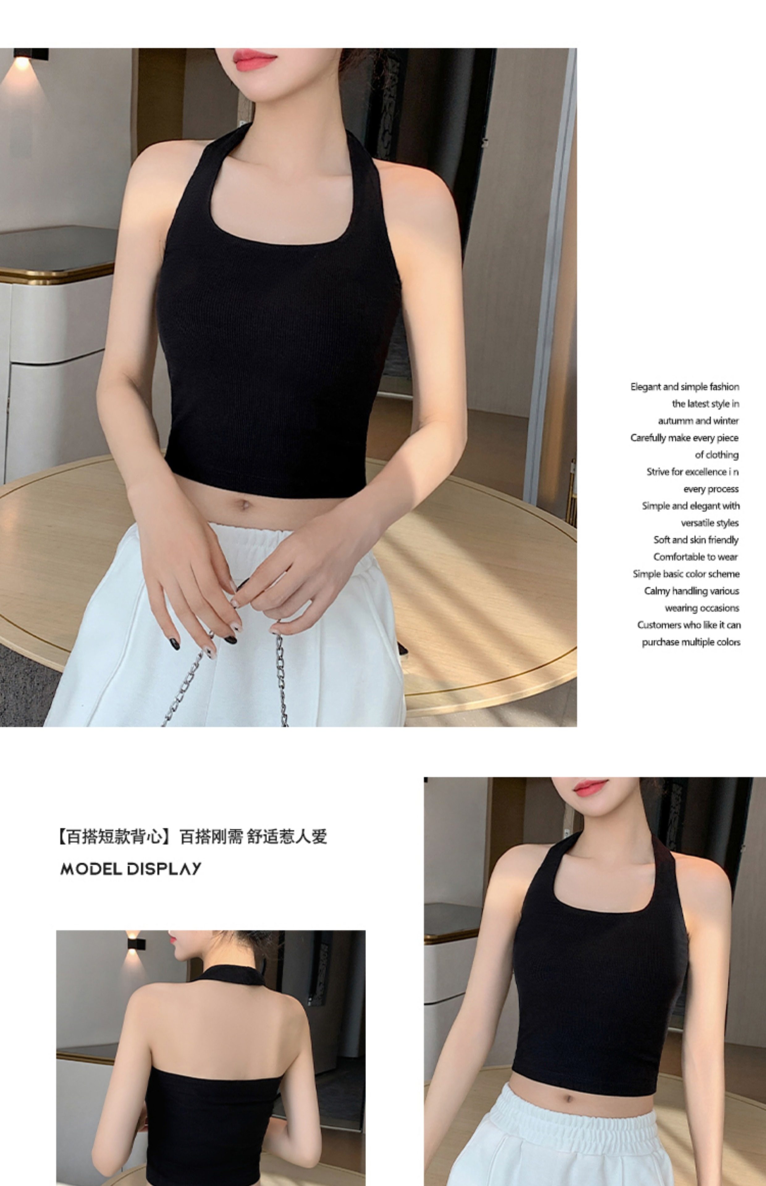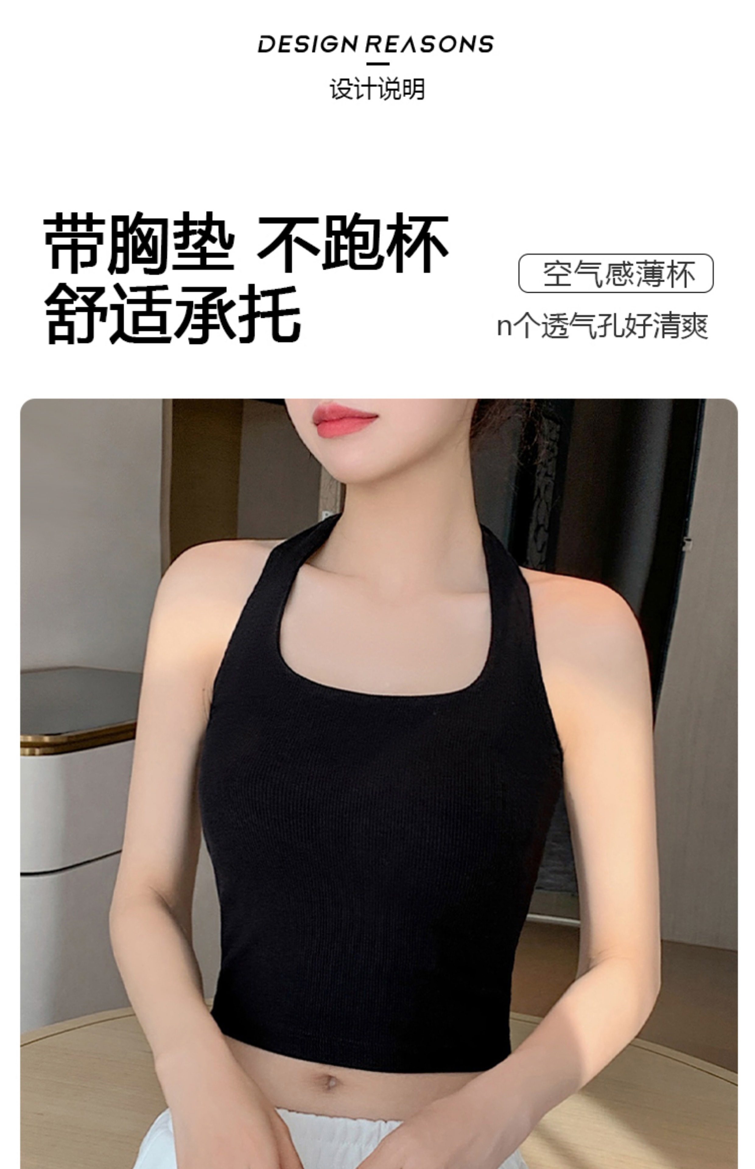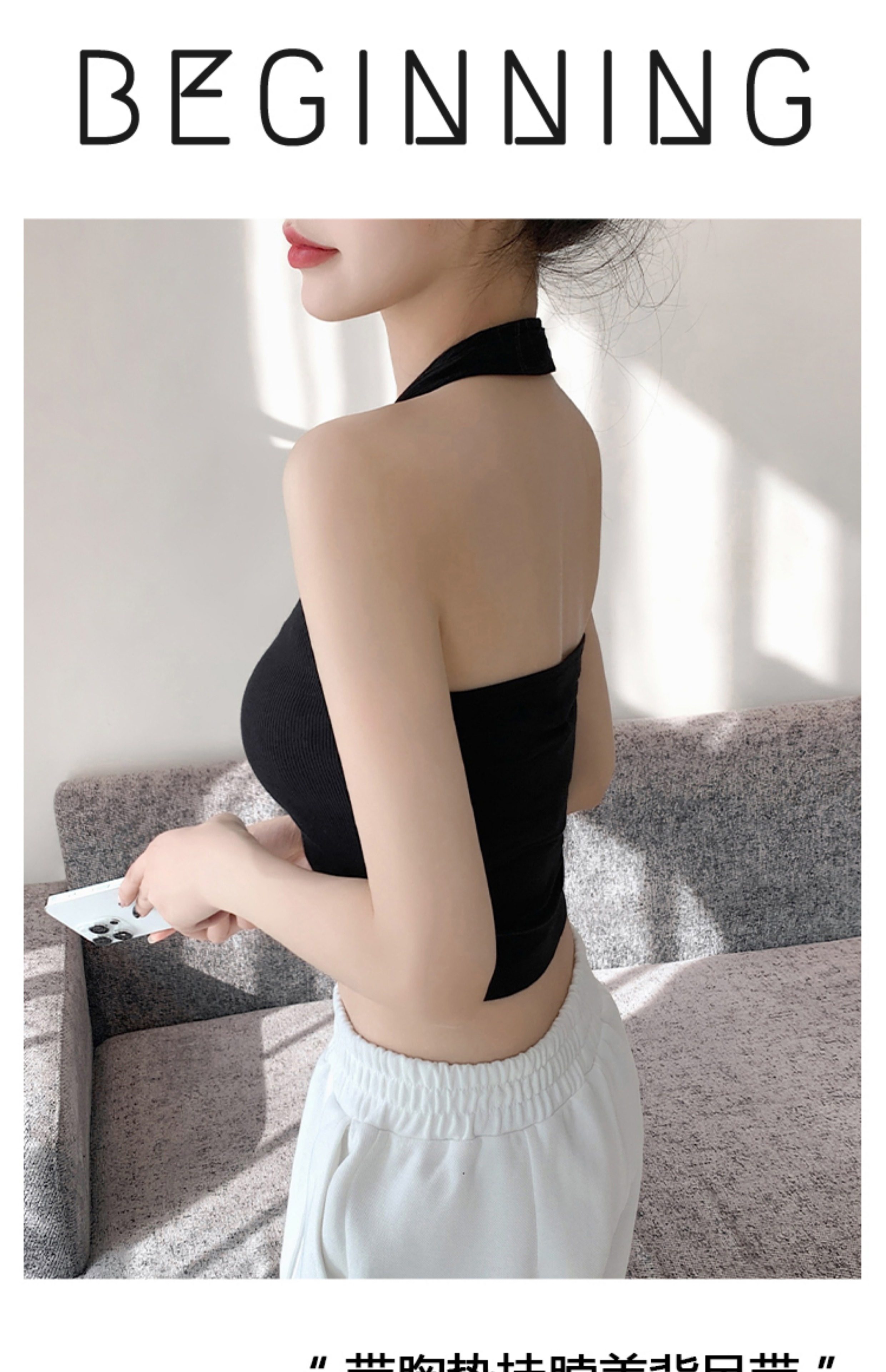 Camisola negra con cuello halter, ropa interior para mujer, ropa exterior de verano 2026, nueva blusa sin mangas con almohadillas para el pecho y espalda hermosa