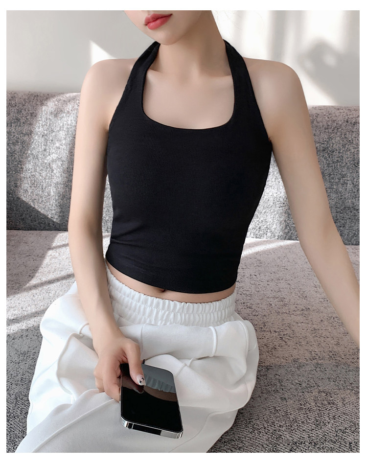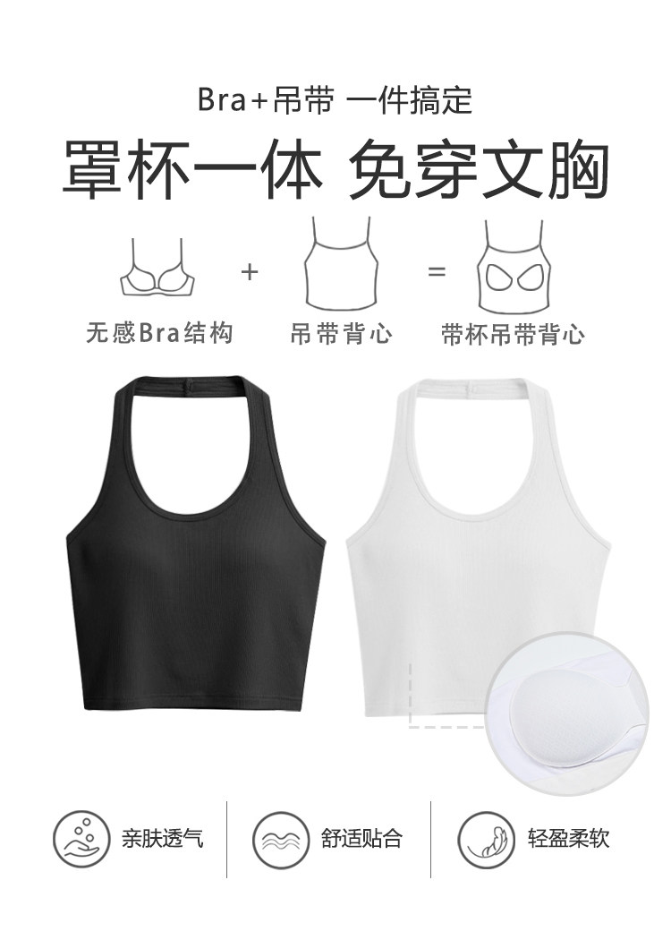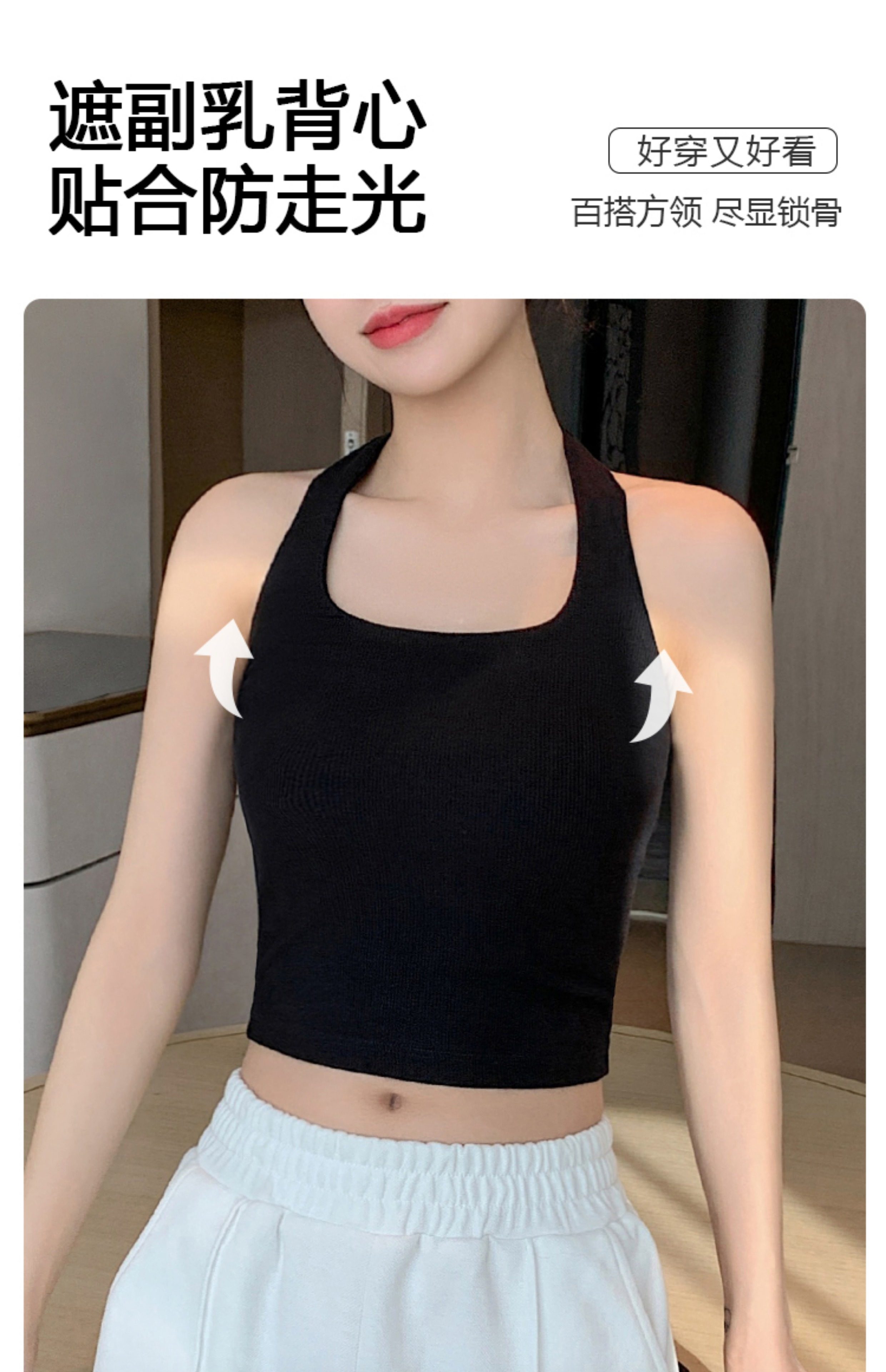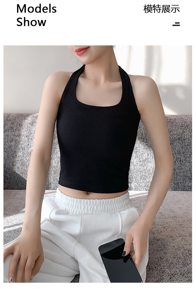 Camisola negra con cuello halter, ropa interior para mujer, ropa exterior de verano 2026, nueva blusa sin mangas con almohadillas para el pecho y espalda hermosa