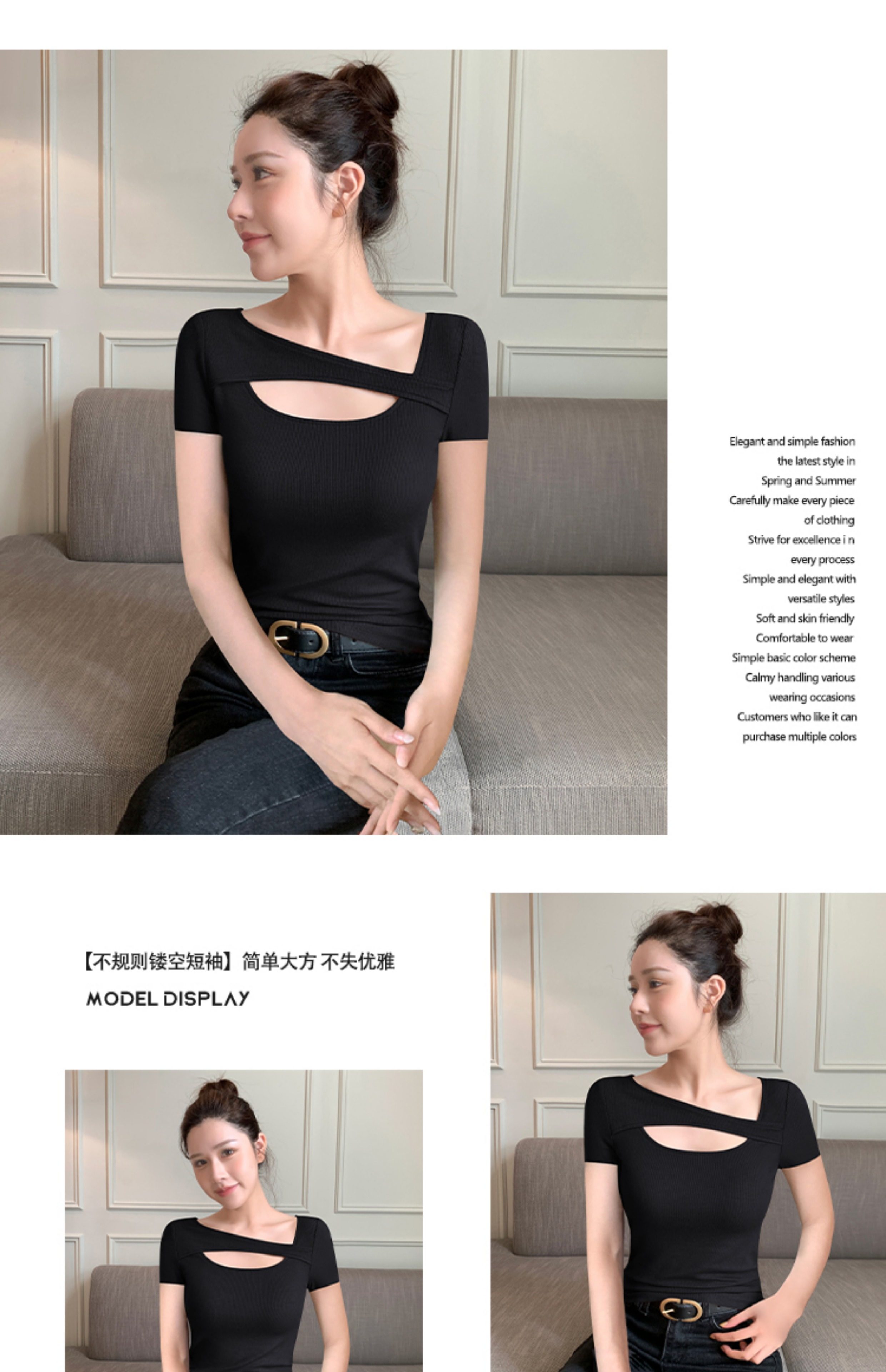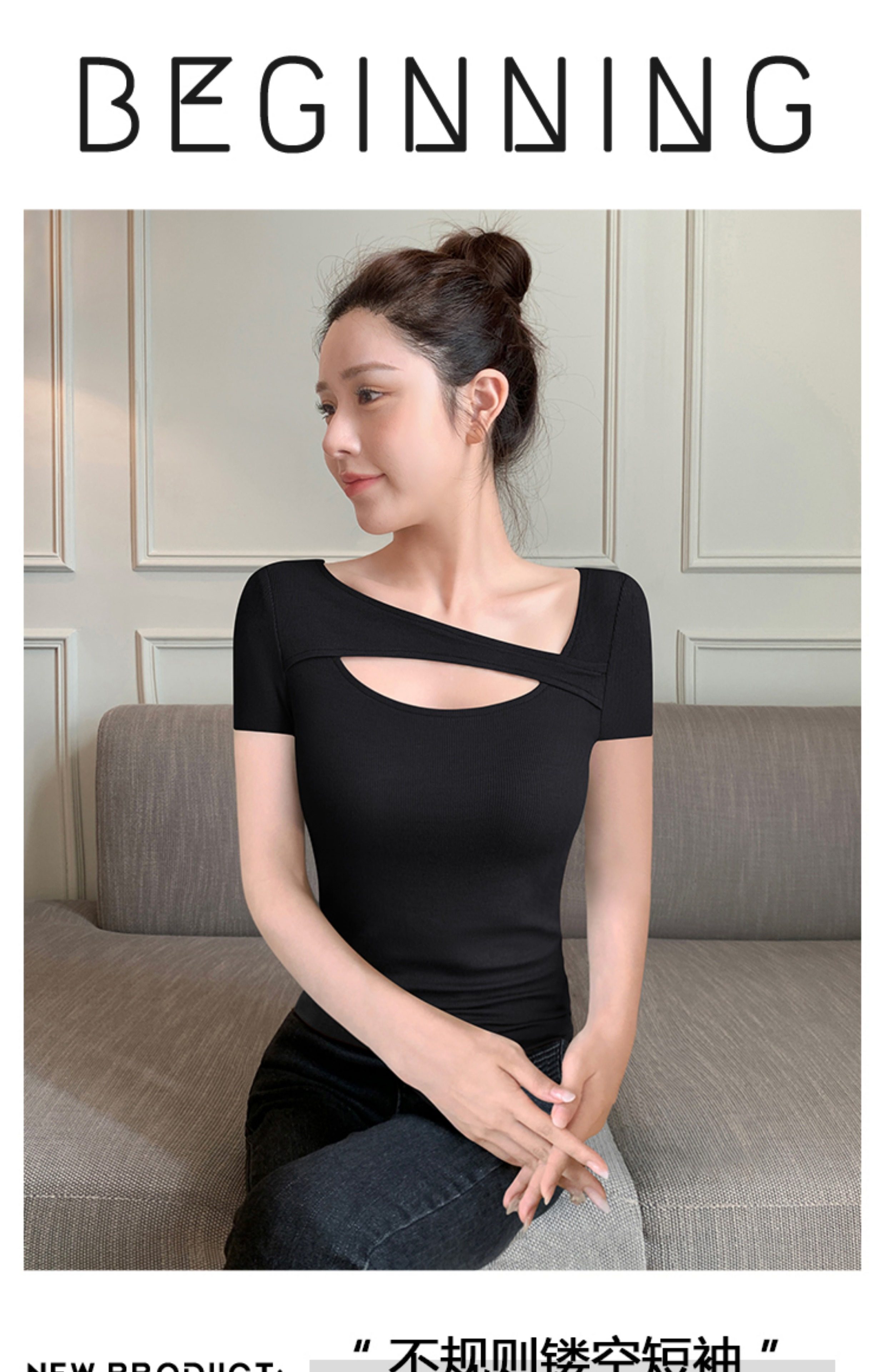 Женская черная футболка с вырезами и коротким рукавом, новинка лета 2026, с утягивающим эффектом на талии, стандартным кроем плеч, облегающий внутренний топ.